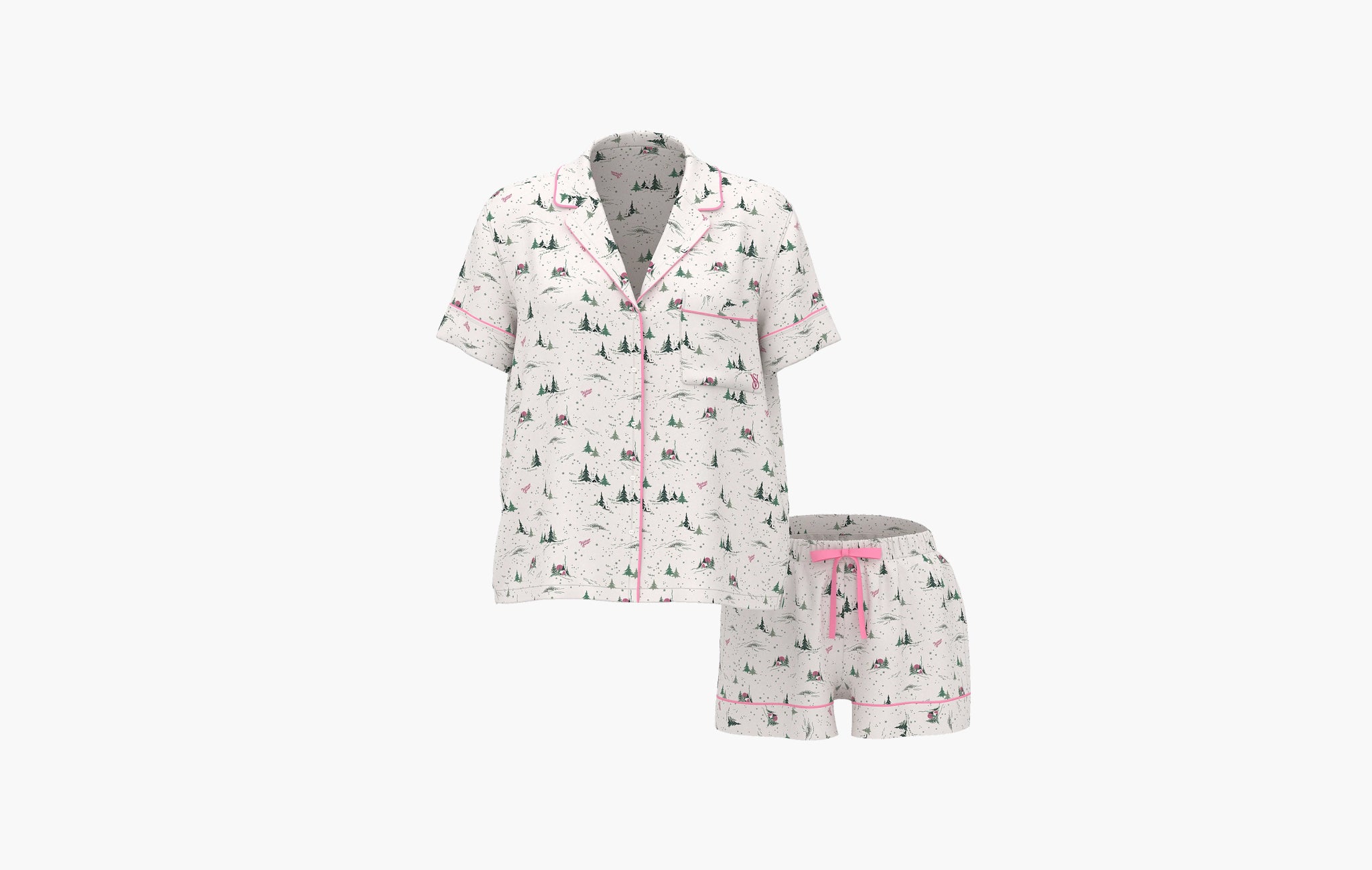 100% Cotton Shine Long-Sleeve Short Pajama Set "Pink"