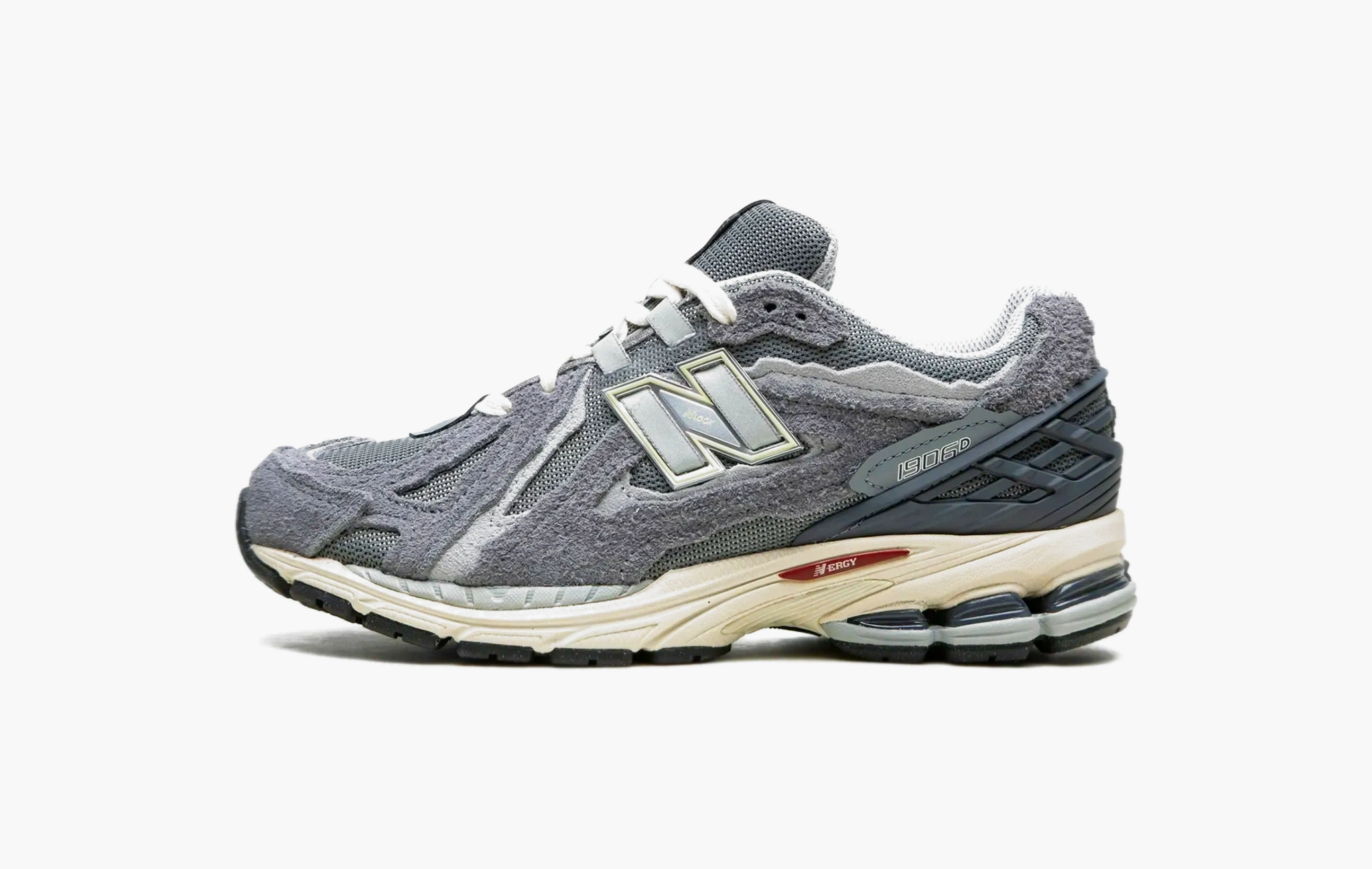 Многие считают, что именно модель 2002R “Protection Pack” вернула популярность бренду New Balance. А расцветка “Rain Cloud” в целом стала одними из самых продаваемых кроссовок за последнее время. Конечно же было бы глупо не создать подобный дизайн на другом актуальном силуэте 1906D. Верх выполнен из серой замши разных оттенков, бежевая подошва, не прошитый язычок, грубая обработка краёв, всё по правилам деструктивизма.