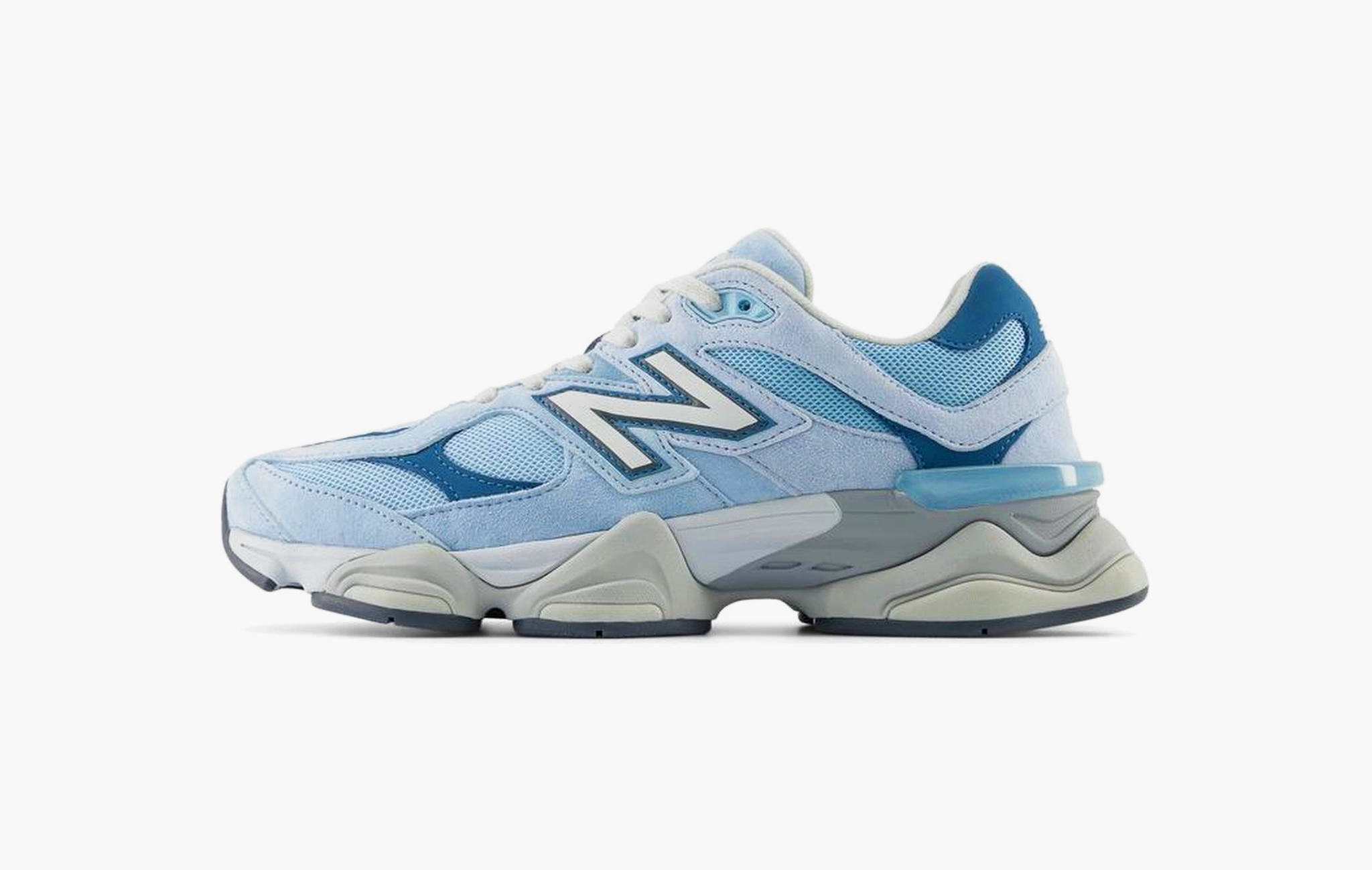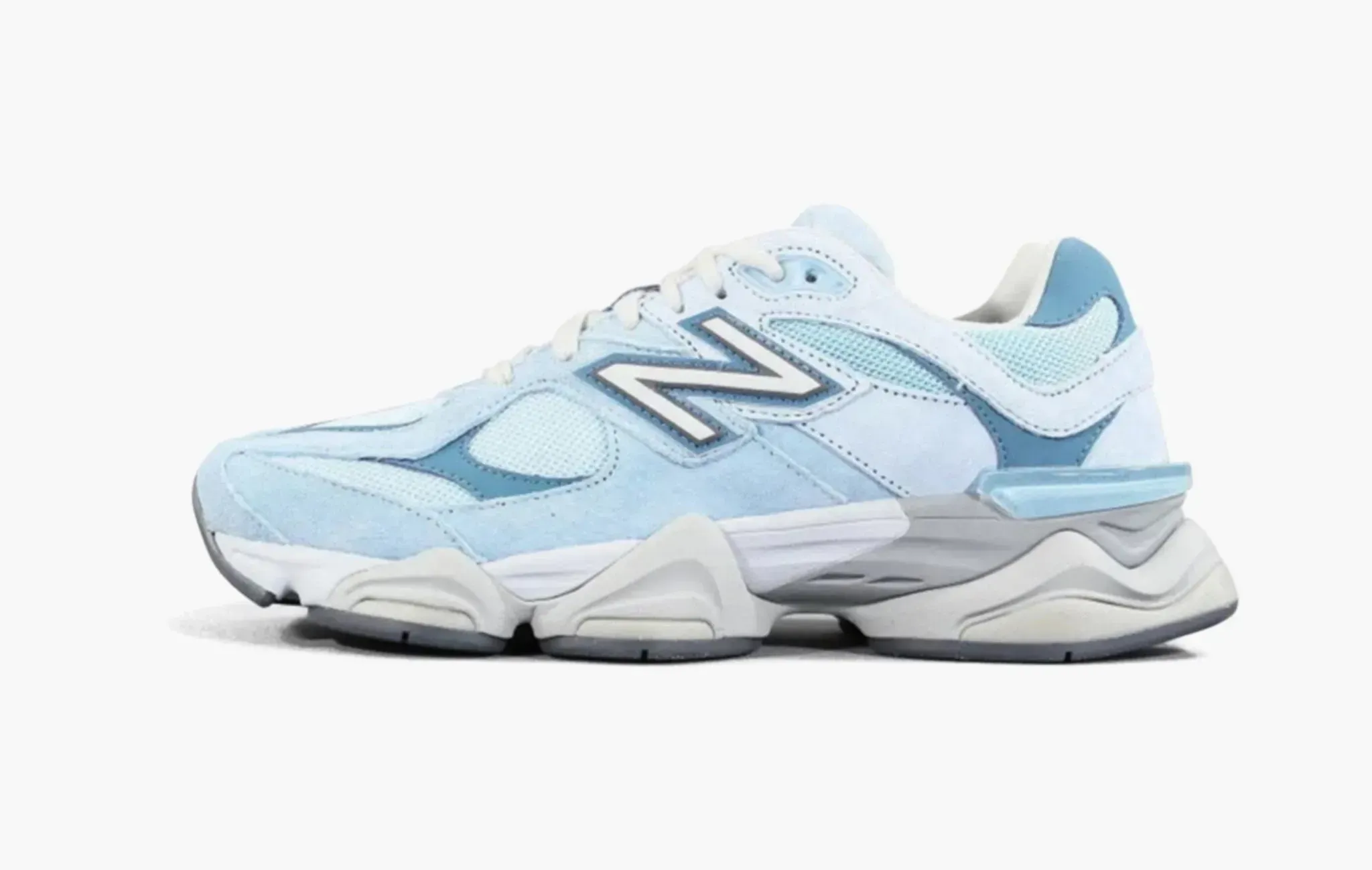 Массивный силуэт New Balance 9060 был создан дизайнерами James Lee и Yue Wu в 2022 году. Модель сильно выделяется на фоне того, что обычно выпускает американский спортивный бренд. Теперь на основе 9060 выходят новые расцветки и коллаборации. Голубая цветовая гамма нанесена на детали из замши и текстиля, подошва с технологией ABZORB обеспечит комфорт, да и в целом создаётся весеннее настроение при взгляде на них.