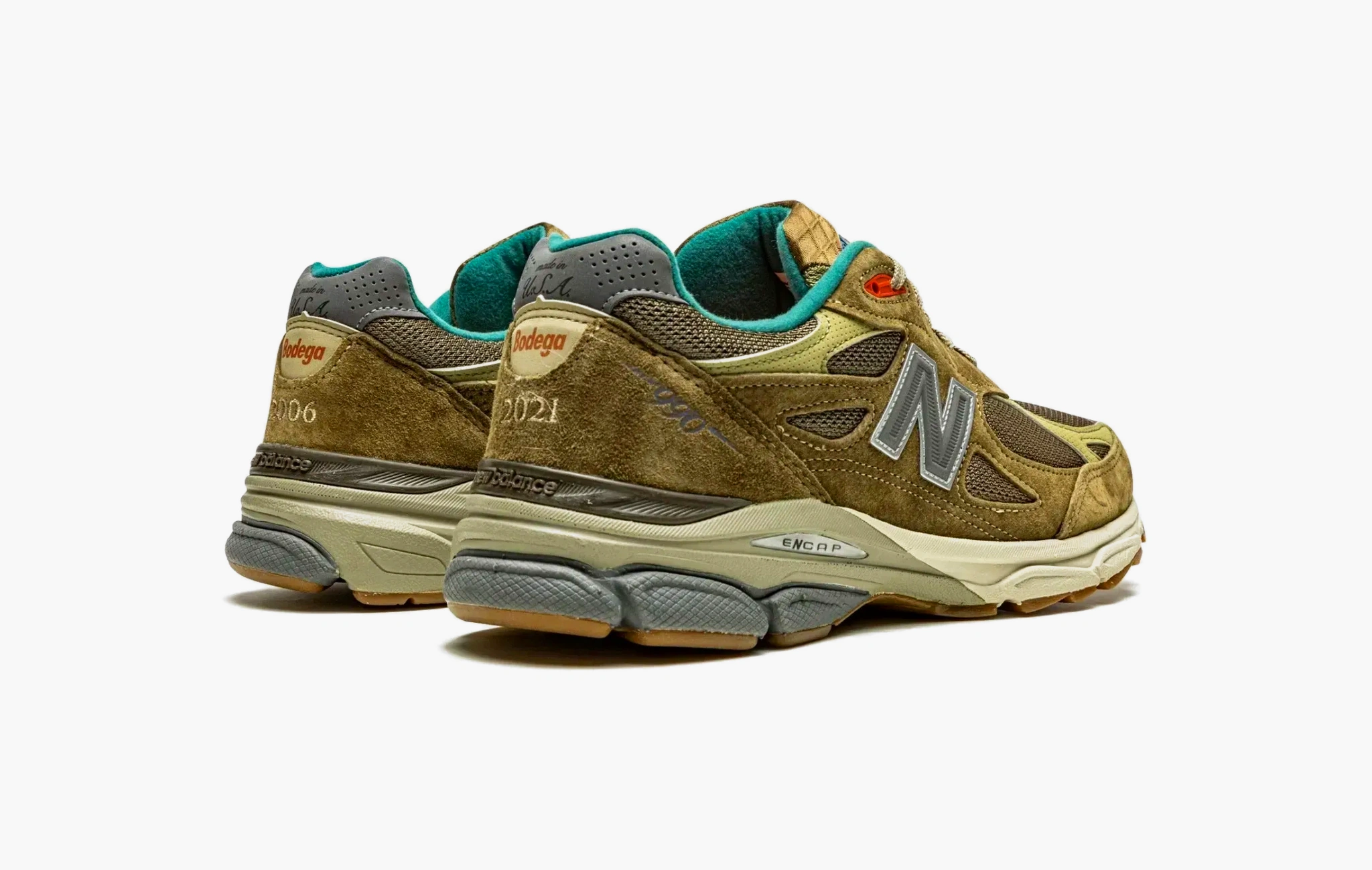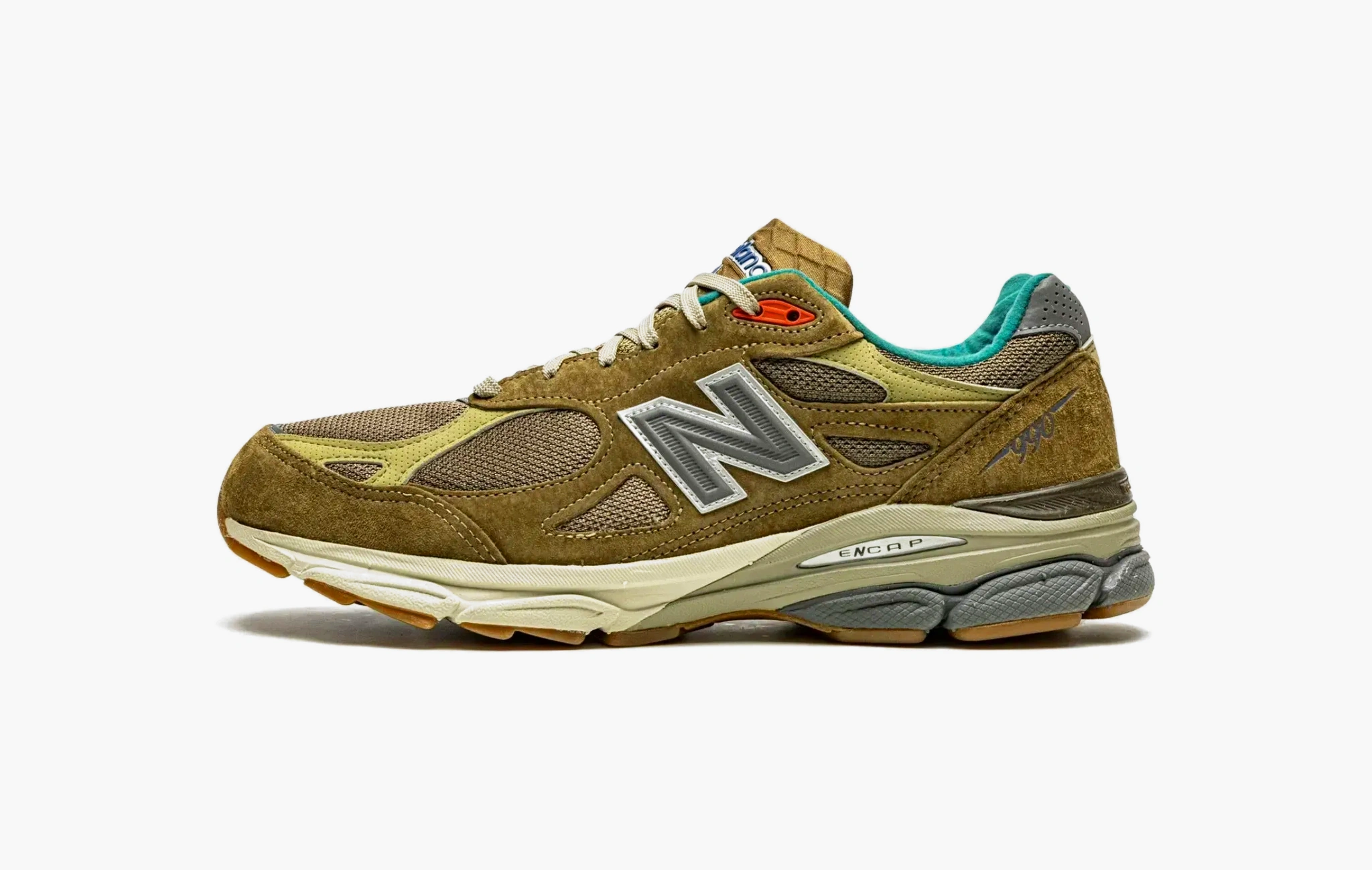 Бостонский магазин кроссовок в 2021 году отметил своё 15-летие очередной коллаборацией с New Balance. Дизайн 990v3 является вызовом всем трендам, было желание создать что-то неподвластное времени. Классические сочетание сетки и замши оливкового оттенка дополняется яркими оранжевыми и голубыми деталями, что очень напоминает подразделение Nike ACG.
