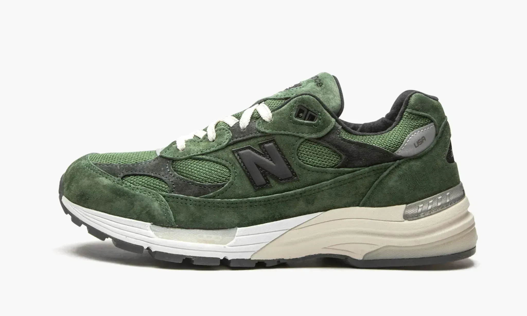 Бренд JJJJound начался с цифрового мудборда, а теперь за их кроссовками стоят очереди и гоняются реселлеры. Релиз JJJJound x New Balance 992 “Mossy Green” — это традиционное сочетание дышащей сетки и премиальной замши. Элементы брендинга включают чёрный логотип «N» на боковой панели, надпись «USA» на незаметной светоотражающей накладке и логотип JJJJound на пятке. Благородный зелёный оттенок выглядит просто идеально на этой модели.