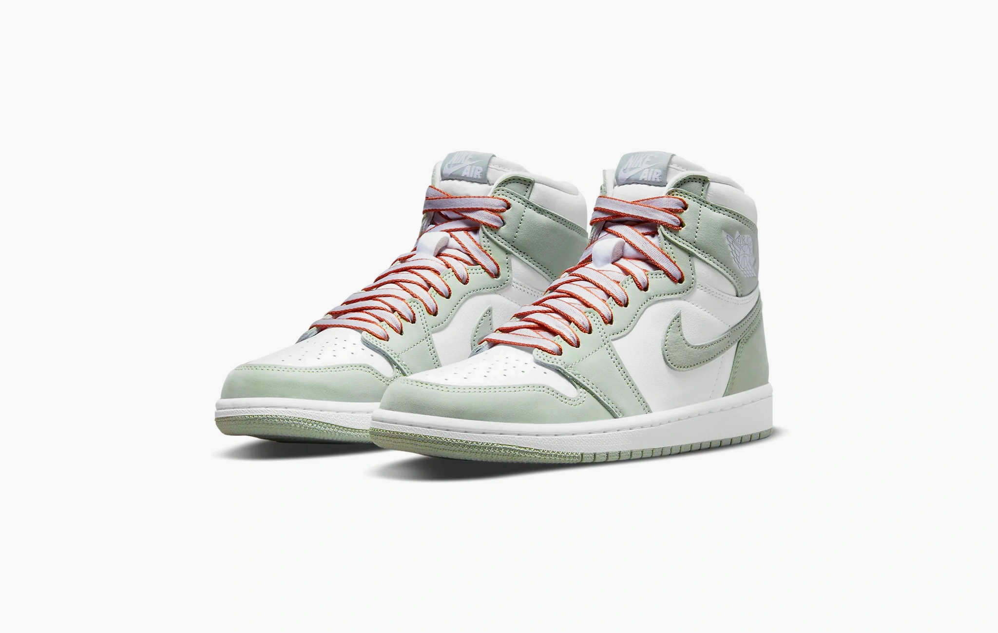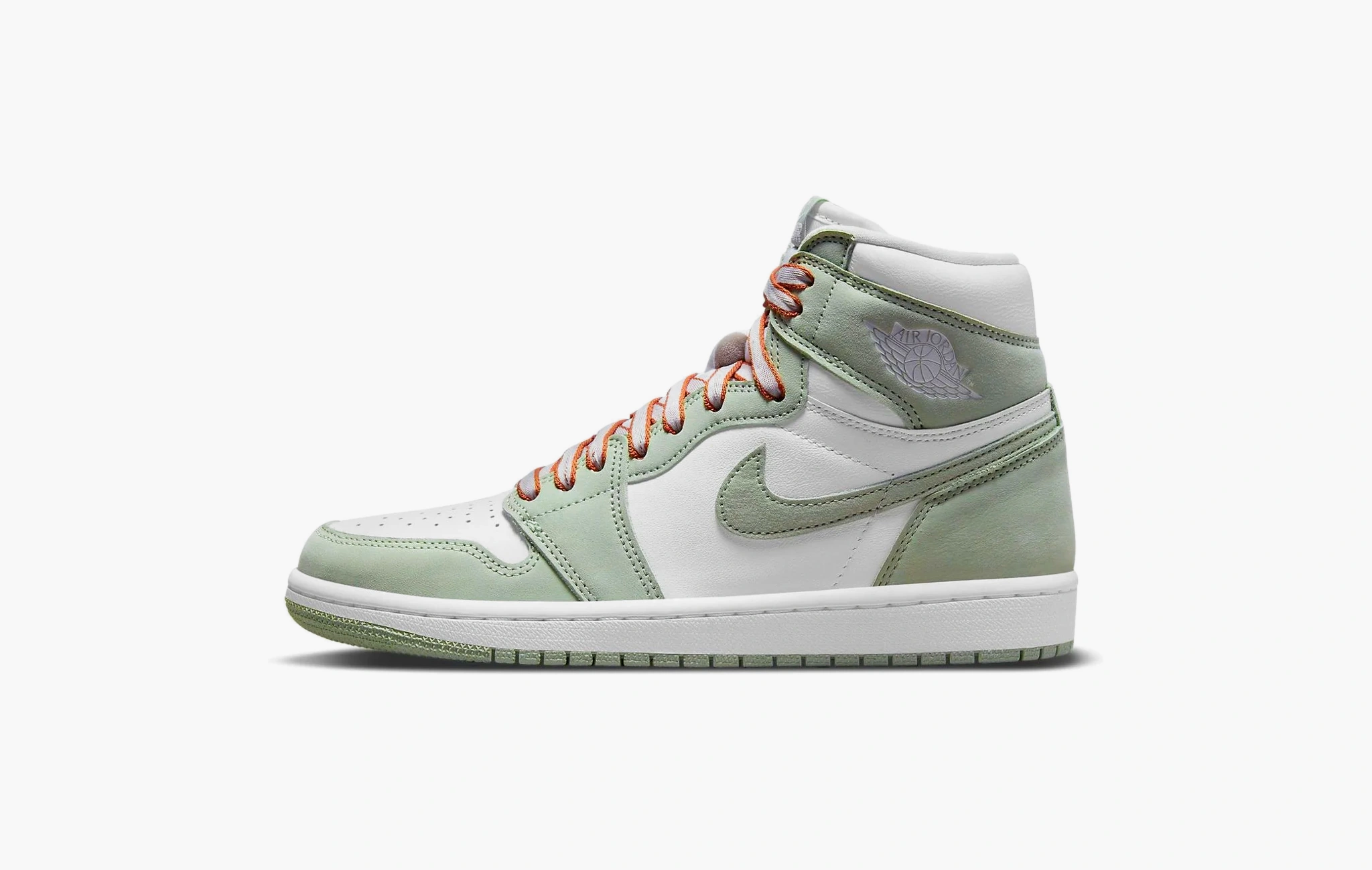 Кроссовки Air Jordan 1 High OG WMNS "Seafoam", созданные всемирно известной компанией Nike, были вдохновлены океанскими горизонтами и страстью к баскетболу. Пара символизирует свободу выражения, а также вечную связь спорта и стиля. Гладкая белая кожа, выступающая в качестве основы для этого силуэта, была дополнена зеленовато-серыми элементами, изготовленными из того же материала. Ярким акцентом стали шнурки, выполненные в нейтральном оттенке с красной окантовкой, создающей выразительный силуэт. Завершают дизайн знаковый логотип "Nike" на язычке и узнаваемая эмблема "Wings" на боковой поверхности кроссовок. Air Jordan 1 High OG WMNS "Seafoam" впервые появились в продаже в конце лета 2021 года.