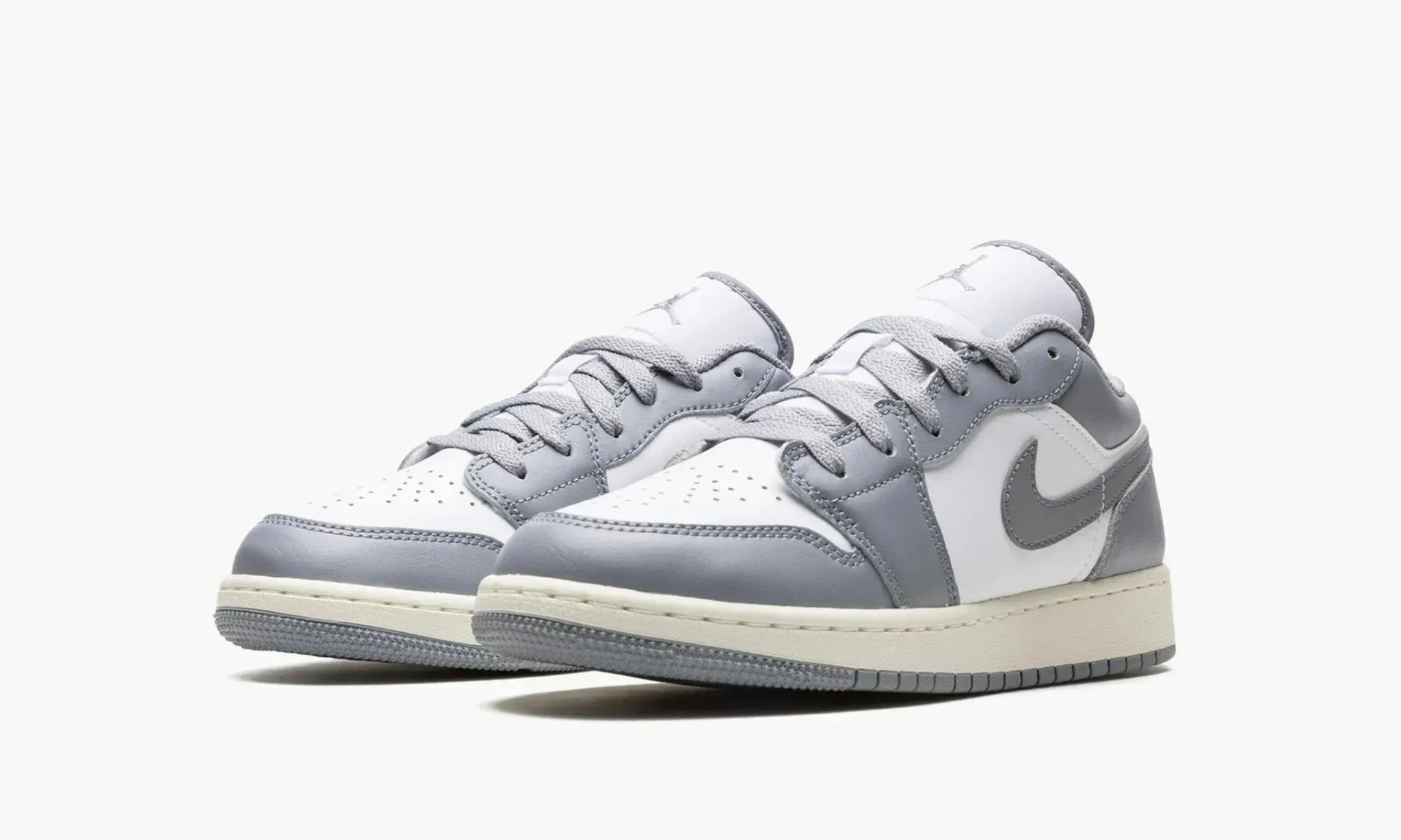 Air Jordan 1 Low GS “Vintage Grey“ — это специальная версия культовой модели Jordan 1, созданная специально для молодежи, подростков (или просто для людей с маленьким размером ноги). После релиза Air Jordan 1 x Dior дизайнеры бренда поняли, что недостаточно в их обойме хороших серых кроссовок. Особенностью данной расцветки является состаренная кремовая подошва, которая придаёт винтажный вайб данным кроссовкам.