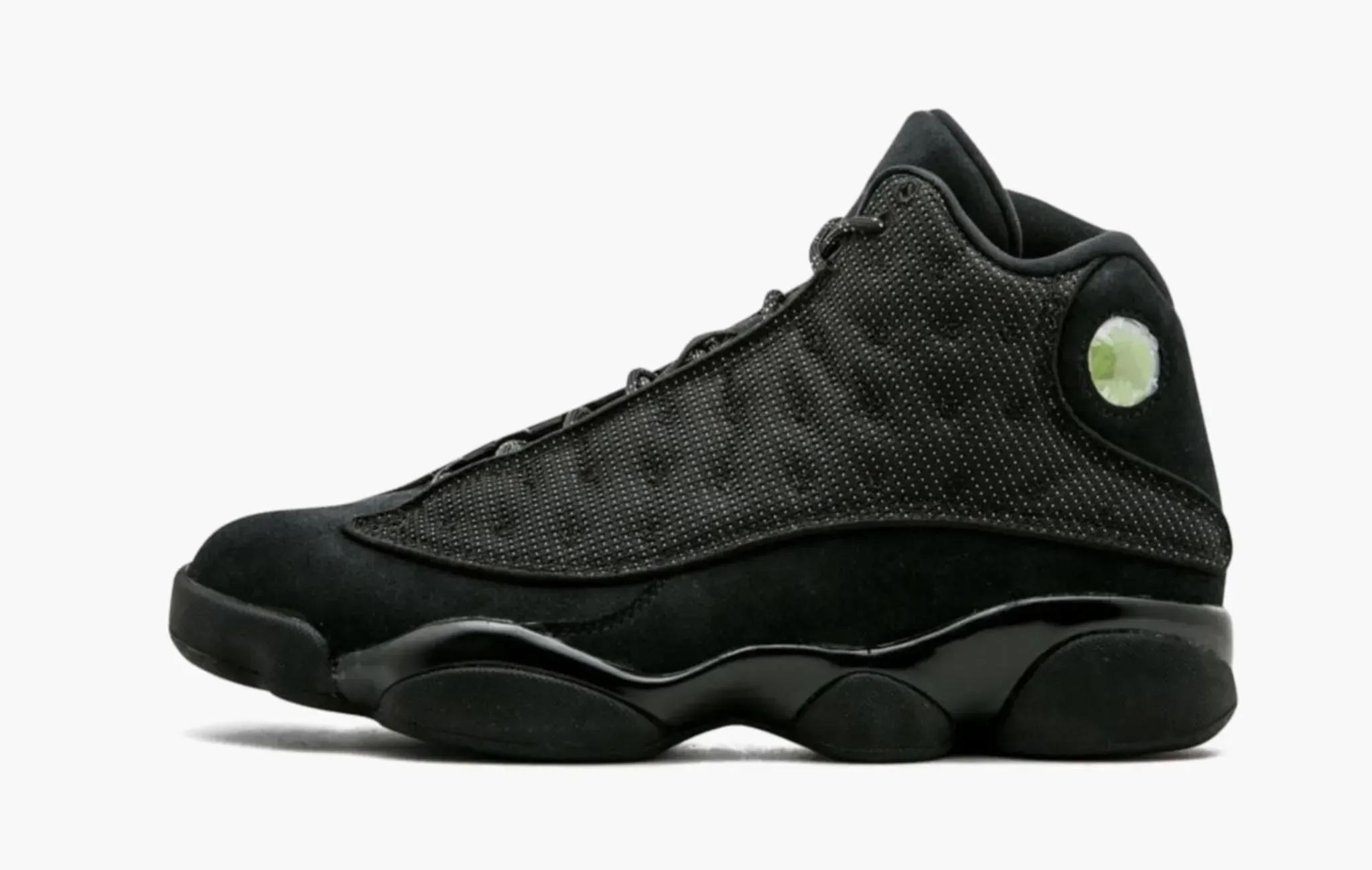 Тинкер Хэтфилд – создатель многих силуэтов кроссовок, о которых вы точно знаете, Air Jordan 13 одни из них. Цветовая гамма «Black Cat» является прямой отсылкой к одному из прозвищ Майкла Джордана. MJ на спортивной площадке действительно опасный и резкий хищник, который отличался своей скоростью и движениями. Полностью чёрные кроссовки с использованием замши и текстиля украшены фирменным зелёным «кошачьим глазом».