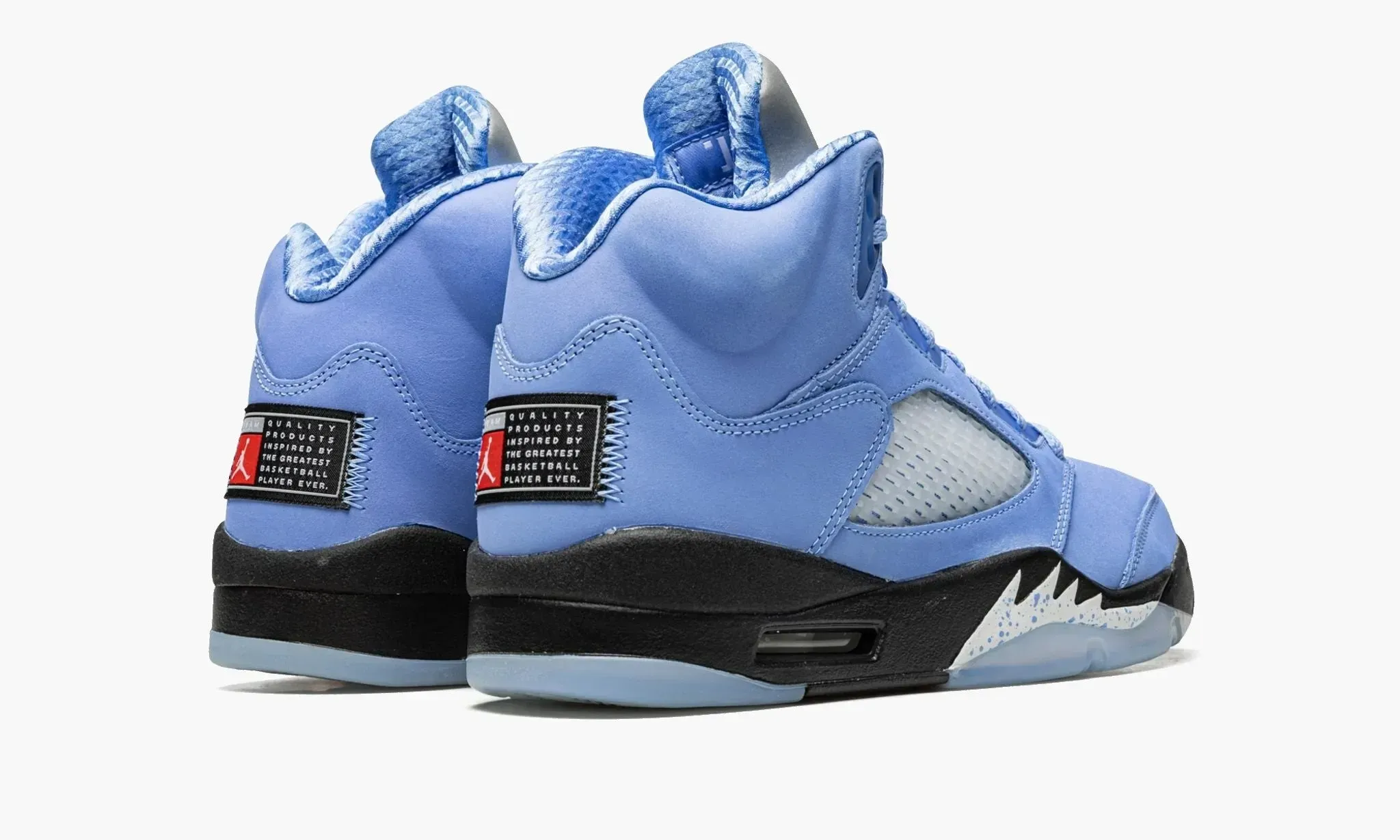 Вся профессиональная карьера Майкла Джордана отражается в его кроссовках. Важным этапом его жизни является учёба в Университете Северной Каролины (UNC). Модель Air Jordan 5 Retro UNC University "Blue" отдает дань уважения альма-матер Джордана, на задней части красуется тканевая этикетка «Team Jordan». В России пятые номерные кроссовки Майкла стали популярны за счёт своего высокого профиля, что подходит для межсезонья.