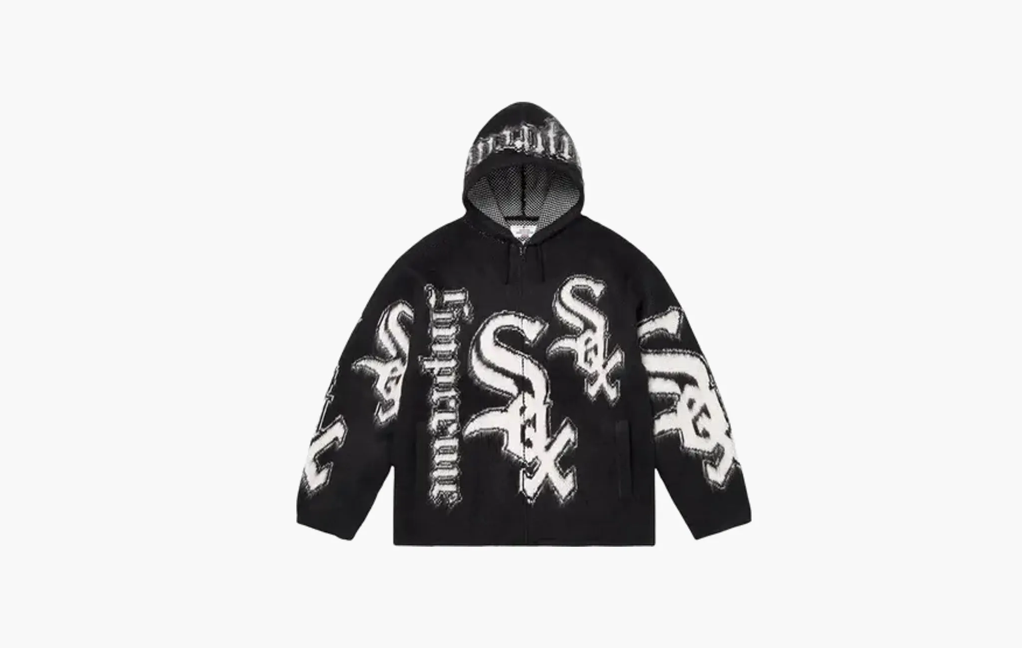 Beaded Zip Up Hooded Sweater "Black"