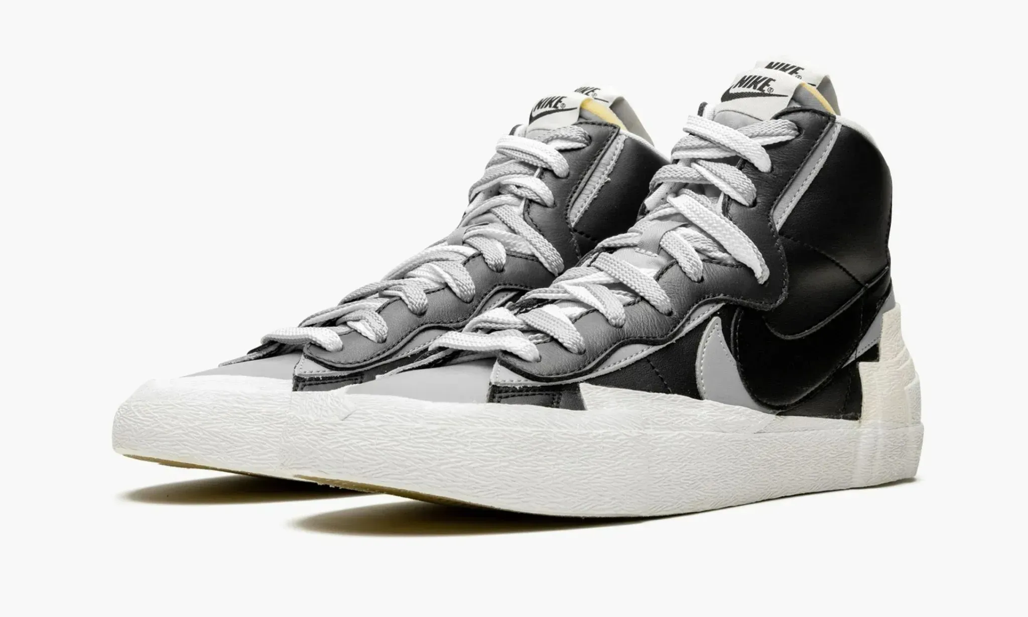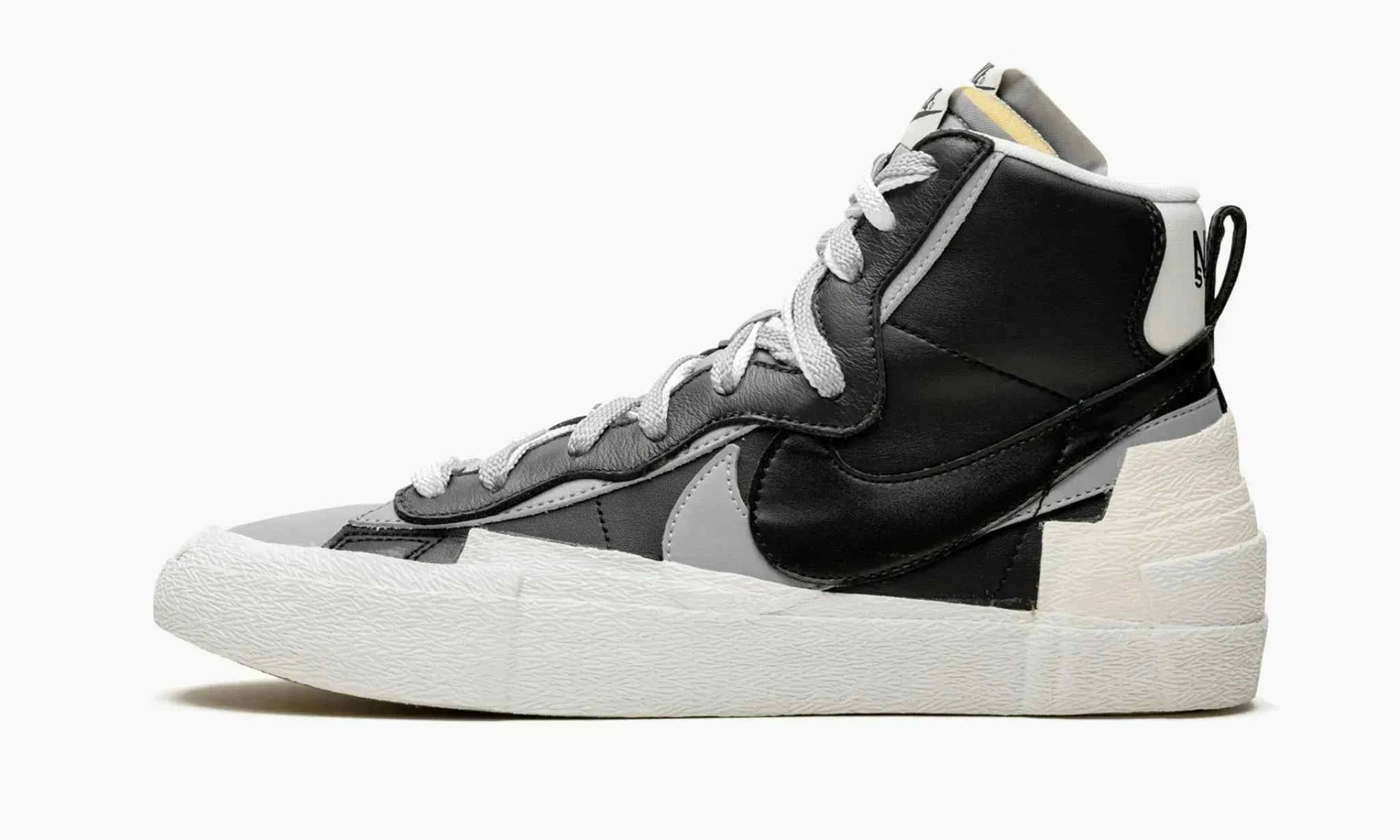 Blazer Mid "Sacai - Black Grey" — это результат креативного сотрудничества Nike и Sacai. Кроссовки сочетают элементы из классических моделей Dunk High и Blazer, выполненные в черно-серой гамме с белыми деталями. Модель имеет двойные элементы, такие как Swoosh и шнурки, что добавляет дизайну глубины. Многослойная структура на пятке подчеркивает оригинальность. Blazer Mid "Sacai - Black Grey" станут отличным дополнением к повседневному гардеробу для тех, кто ценит инновационные подходы.
