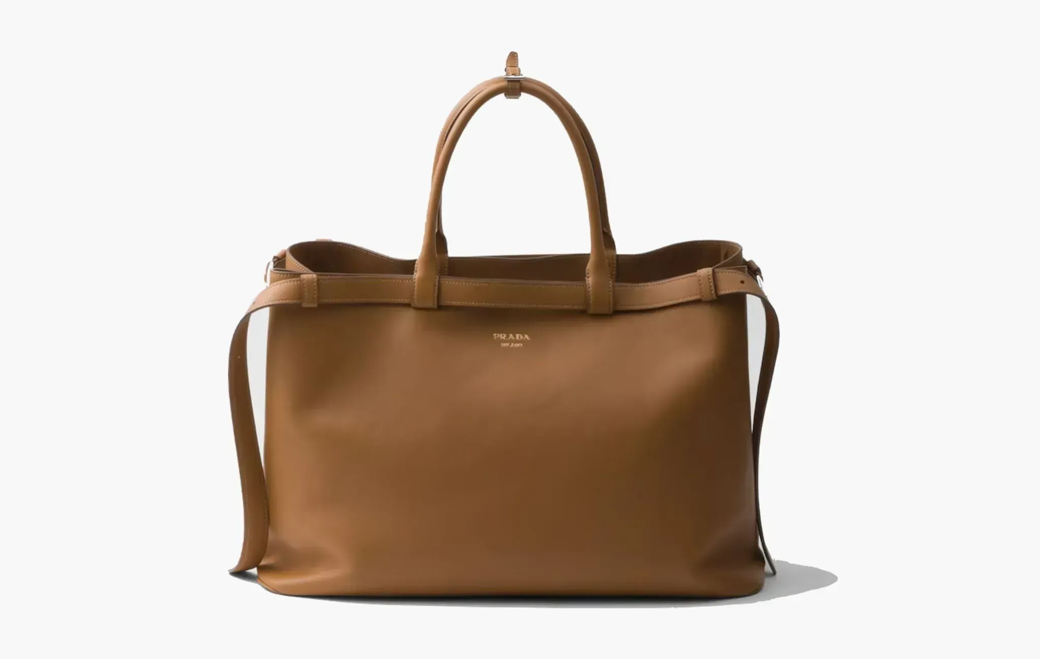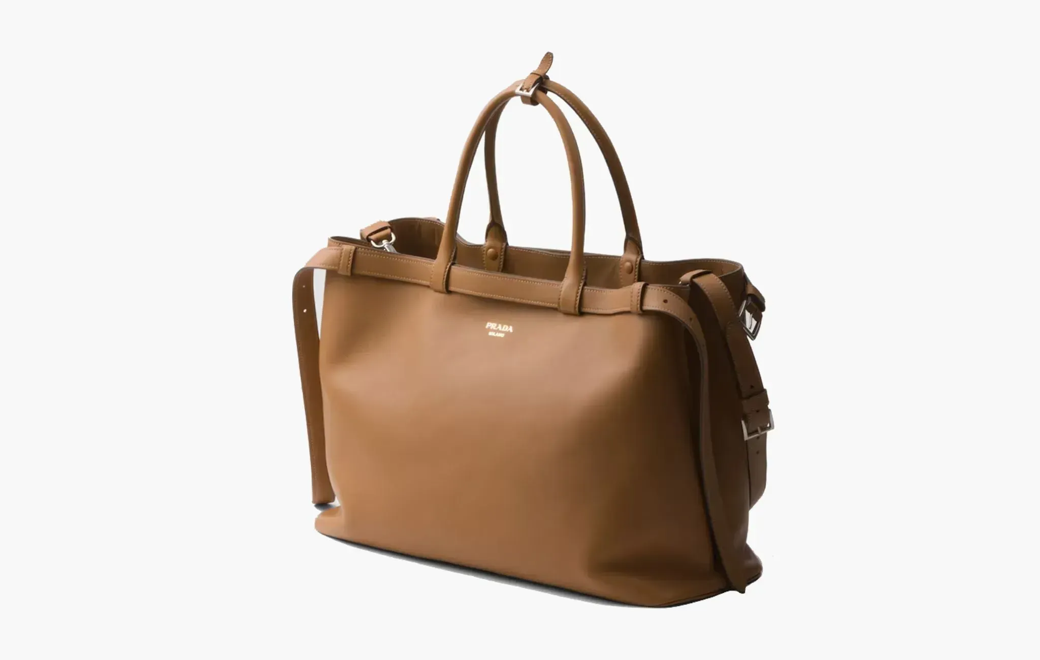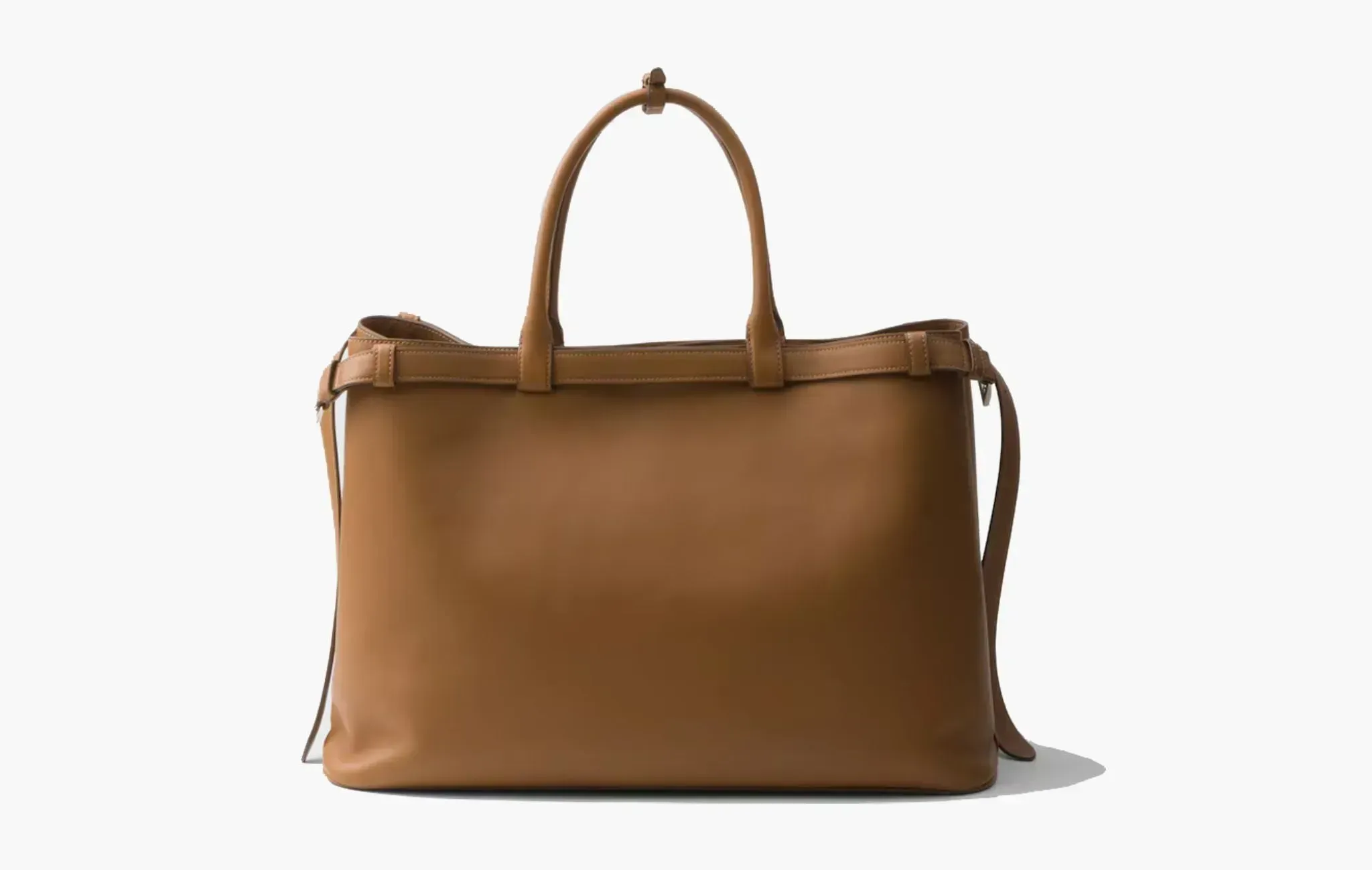 Buckle Leather Handbag With Double Belt "Caramel"