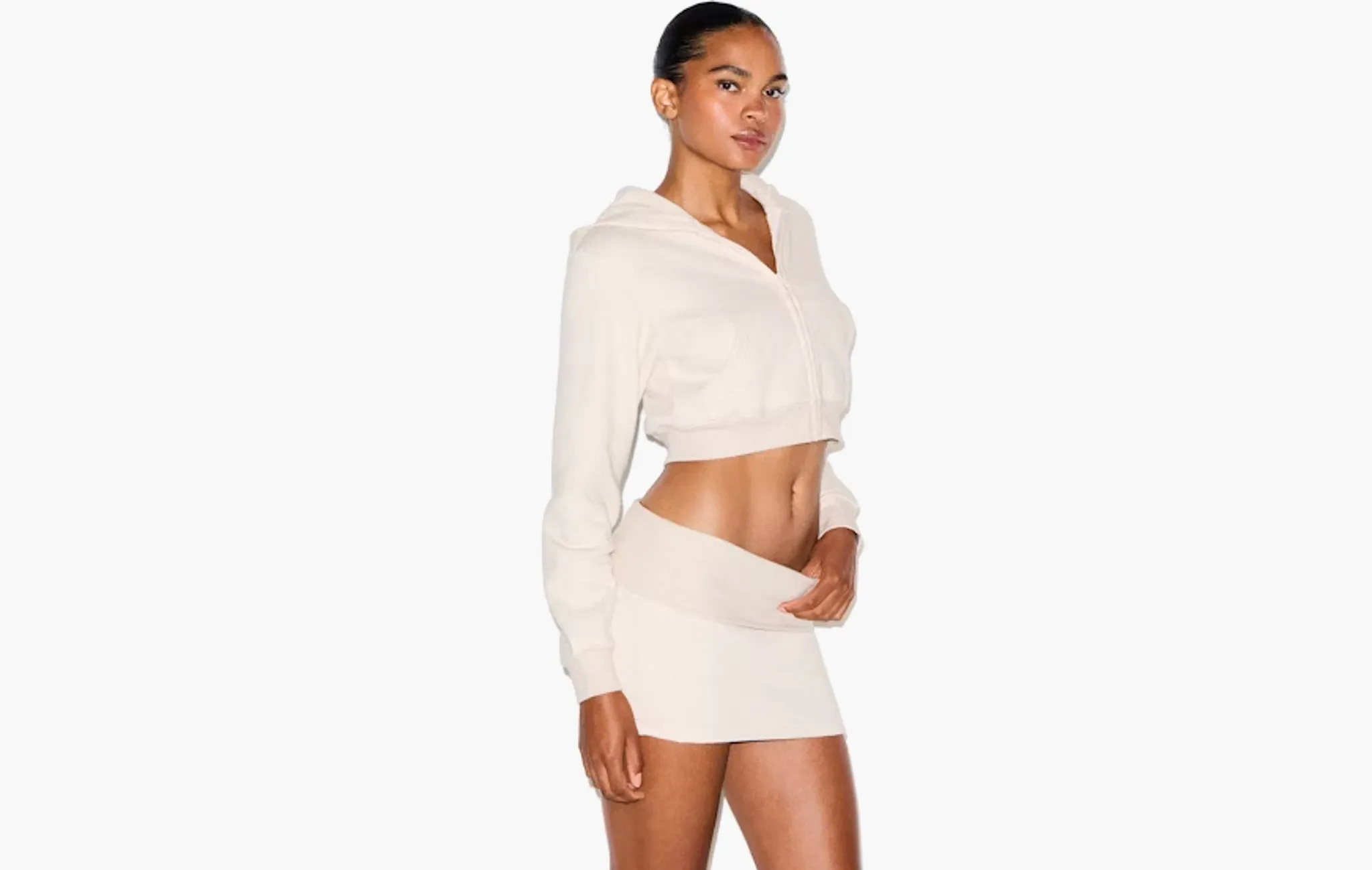 Cotton Fleece Cropped Zip Up Hoodie "Shades"