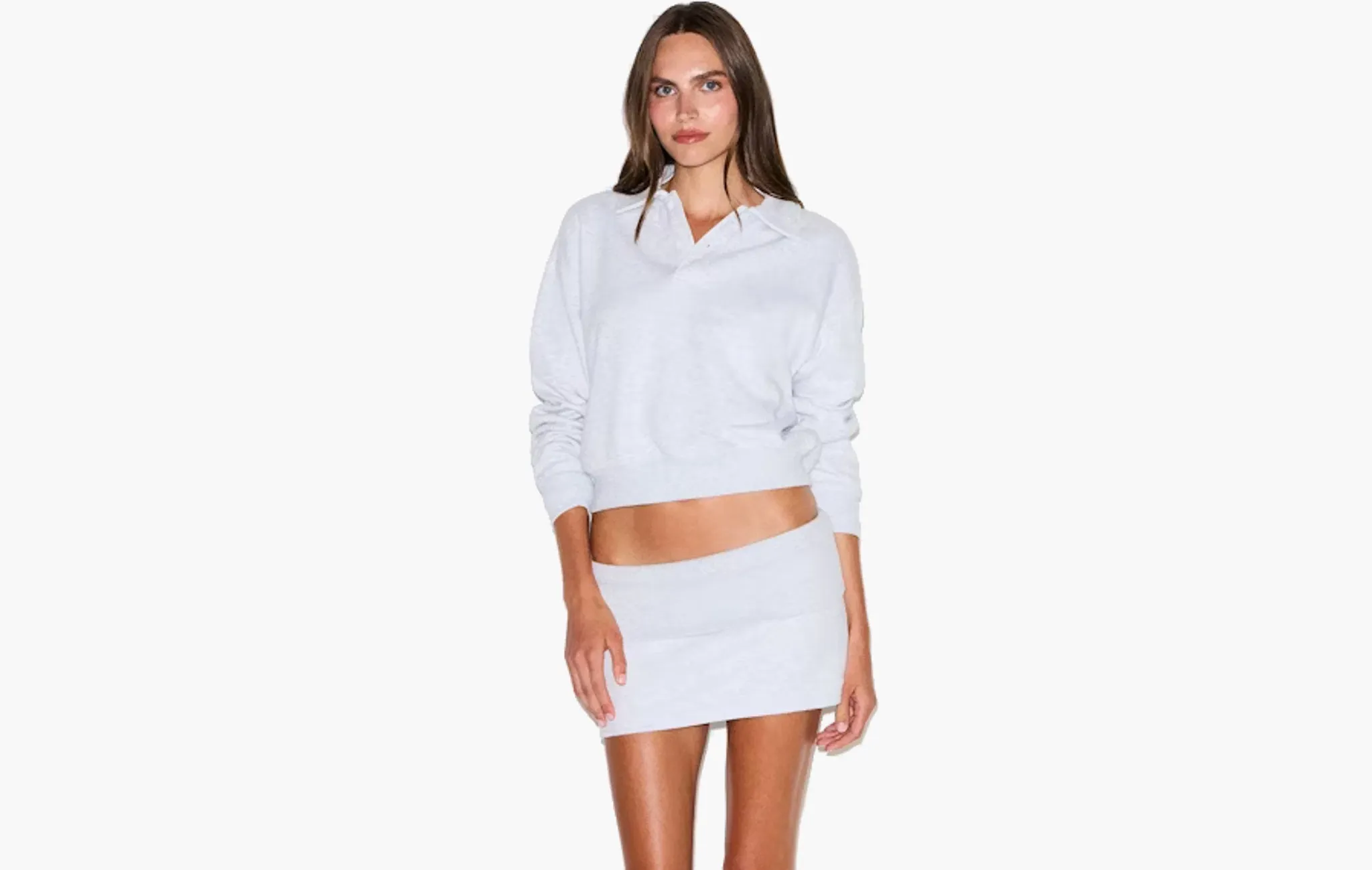 Cotton Fleece Polo Sweatshirt "Light Heather Grey"