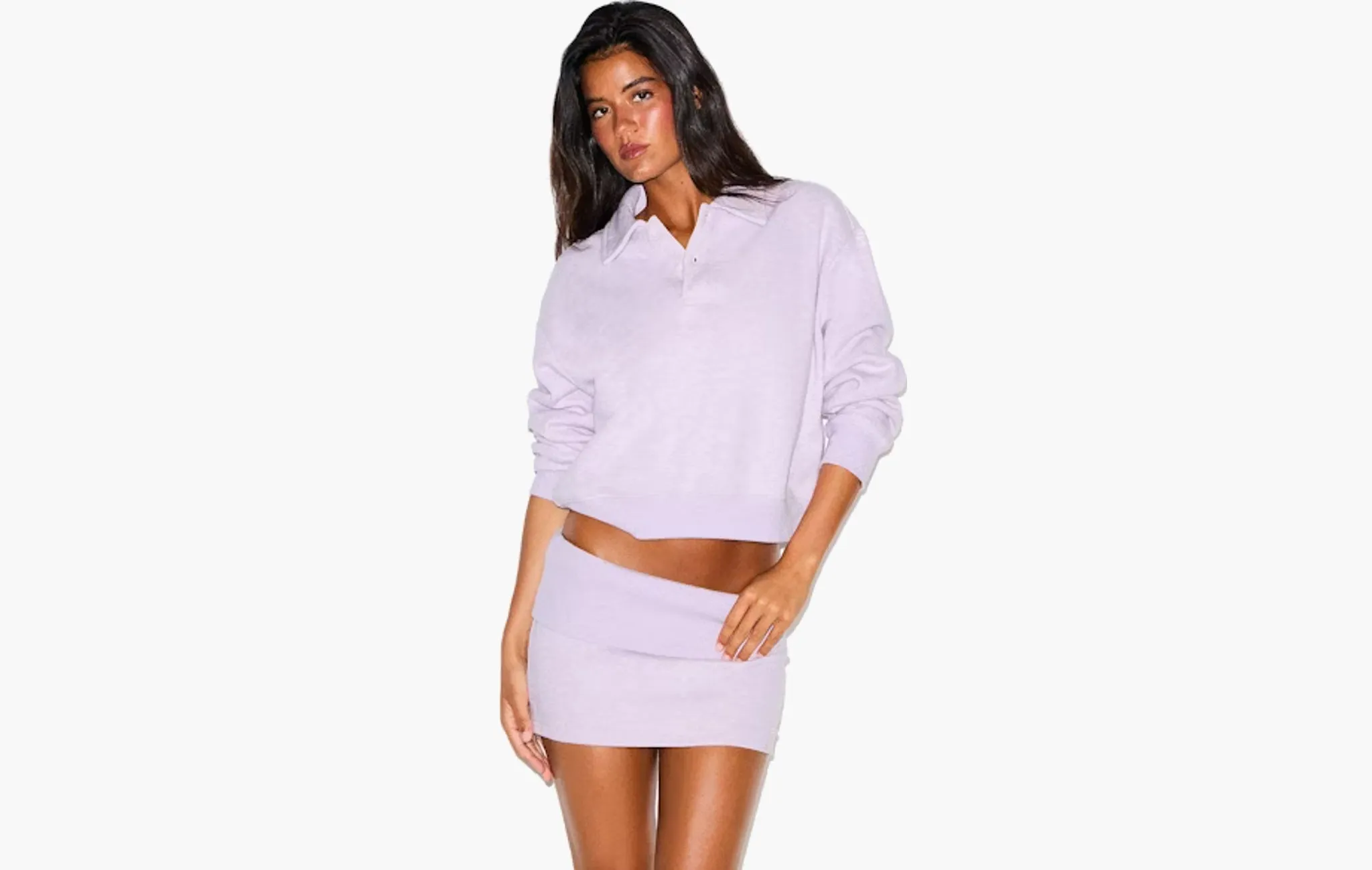 Cotton Fleece Polo Sweatshirt "Purple Heather"