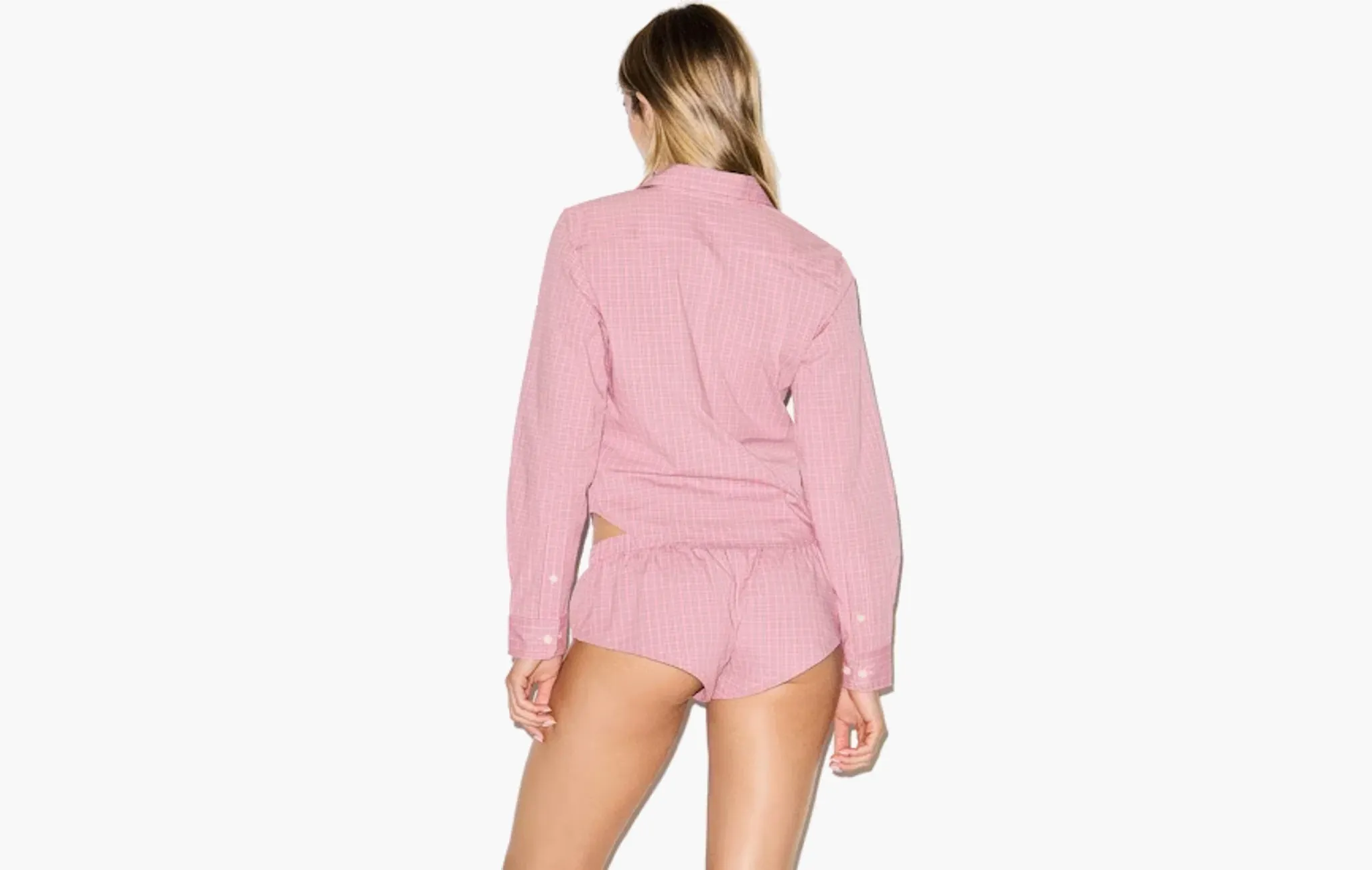 Cotton Poplin Micro Short Sleep Set "Berry Check"