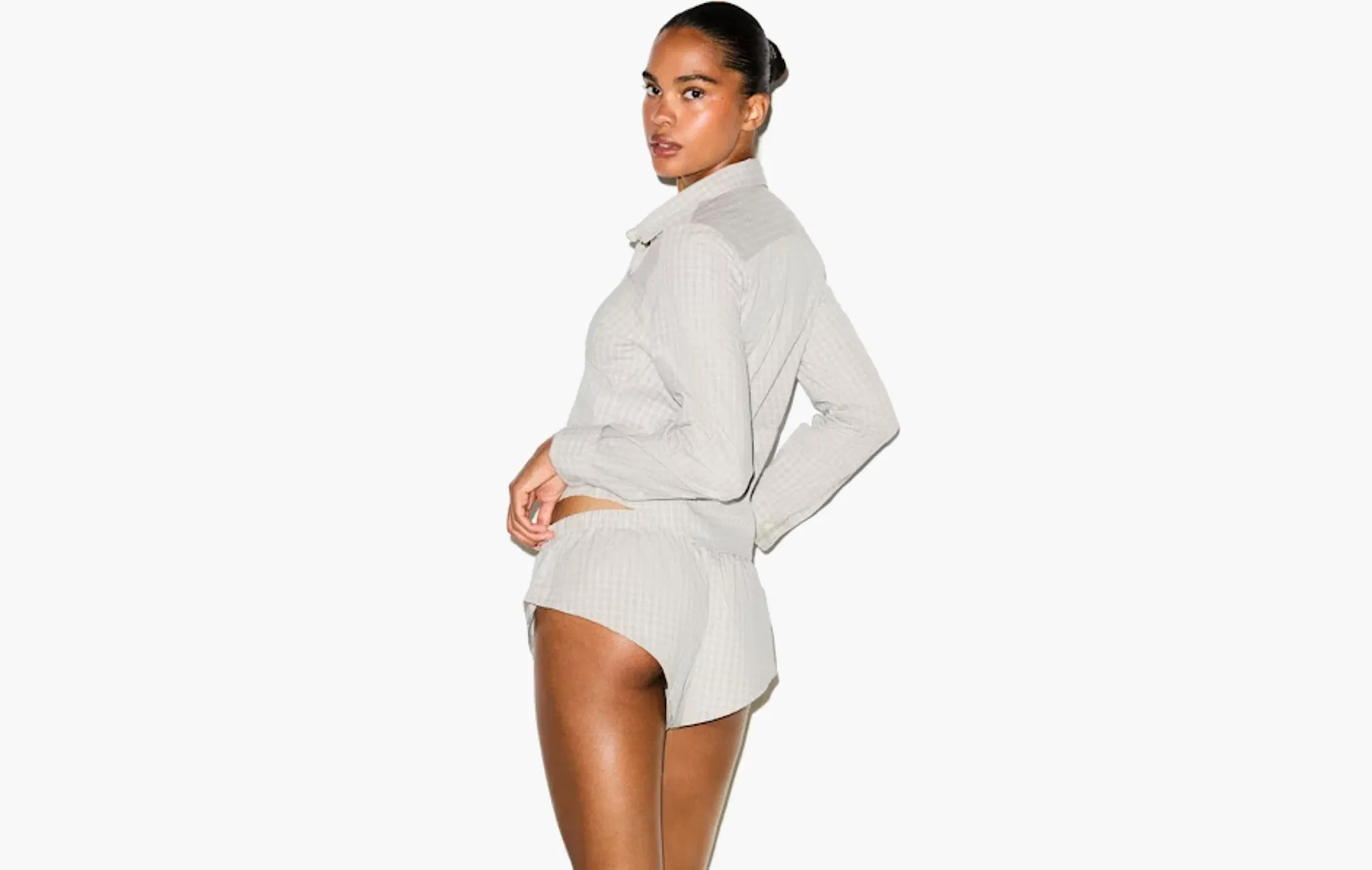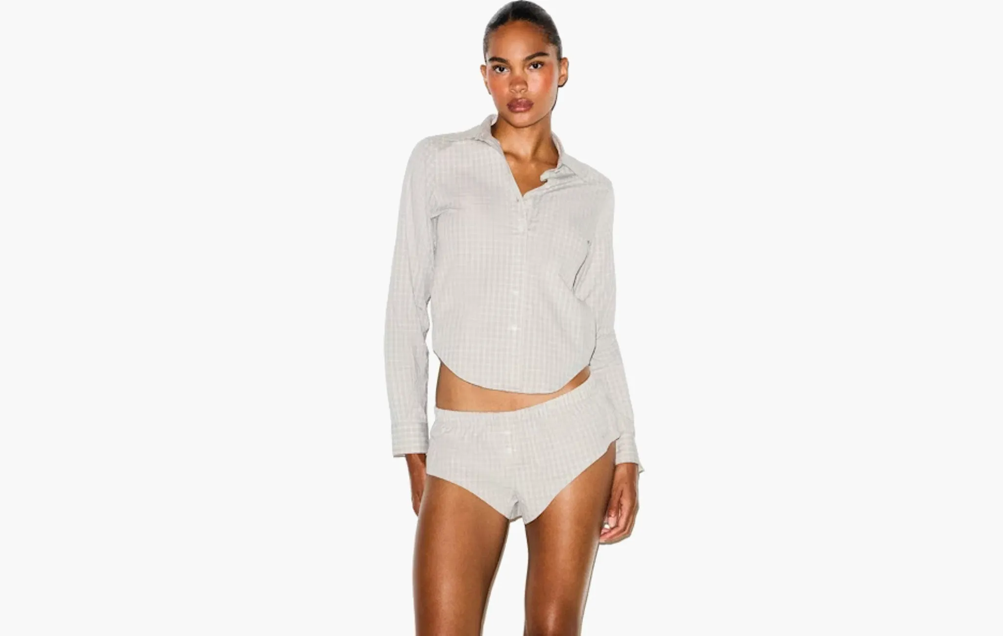 Cotton Poplin Micro Short Sleep Set "Silver Check"