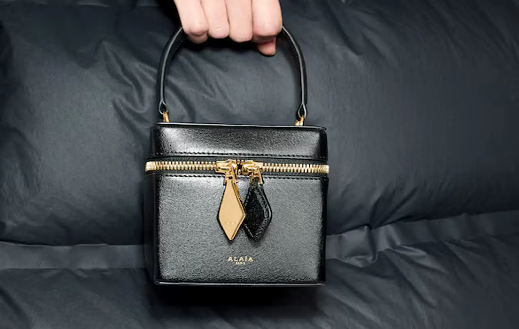 Cube Cosmetics Bag Made From Shiny Goatskin "Black"