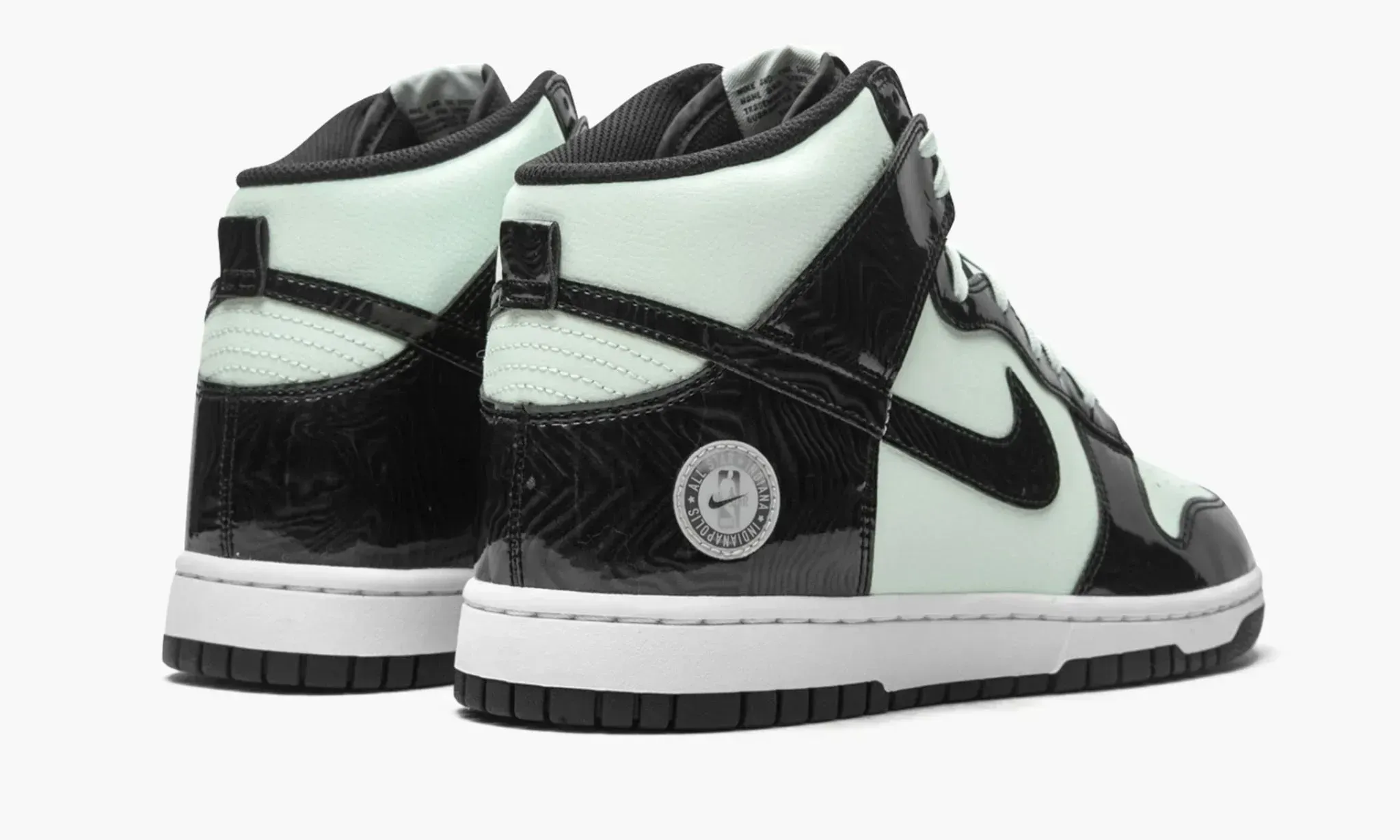 Dunk High SE "All-Star 2021" — это невероятные кроссовки со своей уникальной историей. Зеленоватая кожа, легшая в основу данной баскетбольной модели, дополнена крупными лакированными вставками с роскошными шиммерными разводами, обладающими серебристым отливом. В области пяток расположились фирменные круглые эмблемы "Матча всех звезд НБА" с миниатюрными свушами. Пропитанные спортивным духом эти кроссовки точно настроят вас на победу во всех начинаниях! Завершает дизайн классическая черно-белая подошва с глубоким рисунком протектора, гарантирующим отличное сцепление. Стильные и привлекательные Dunk High SE "All-Star 2021" от компании Nike поступили на полки магазинов в марте 2021 года.