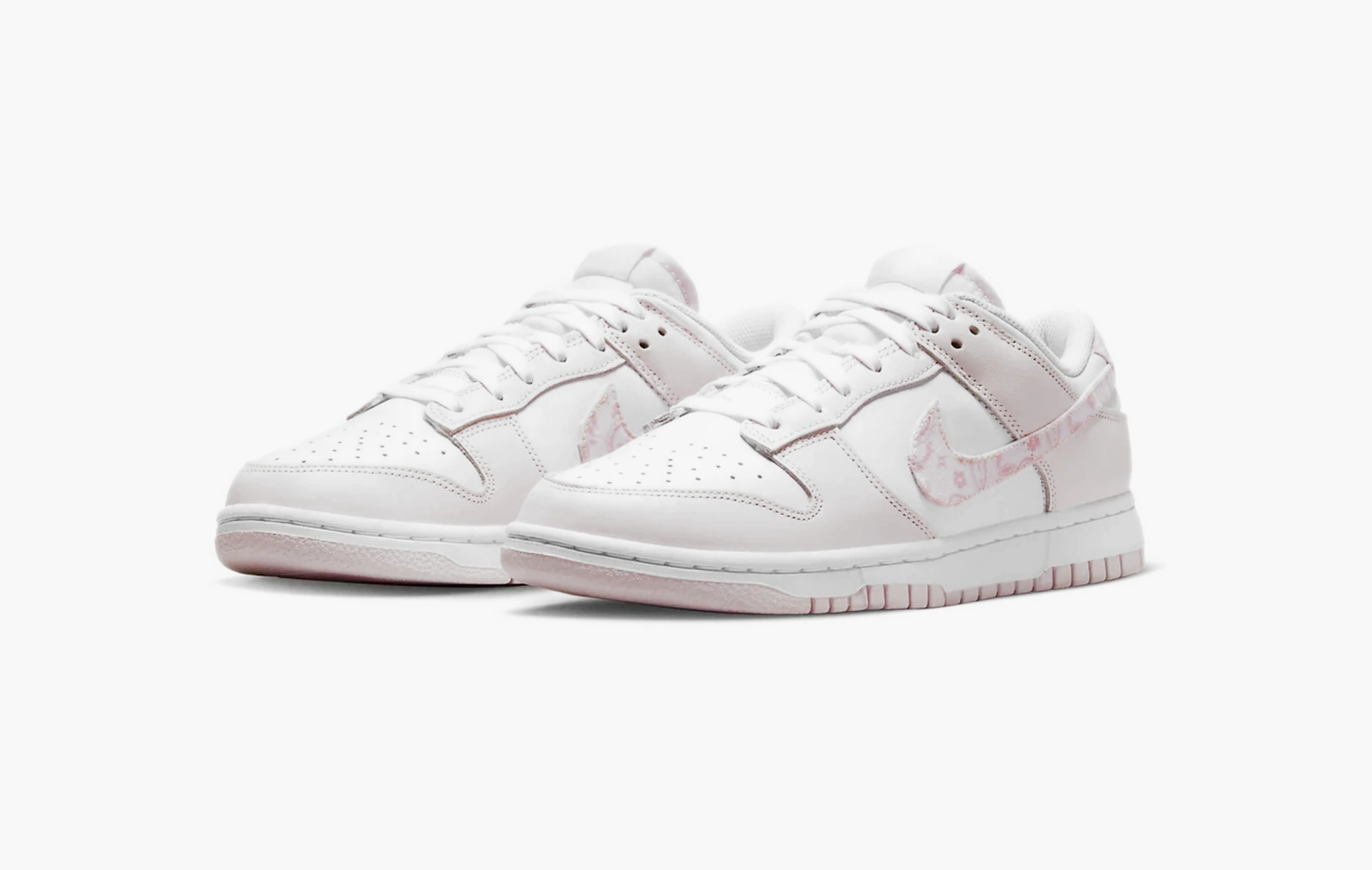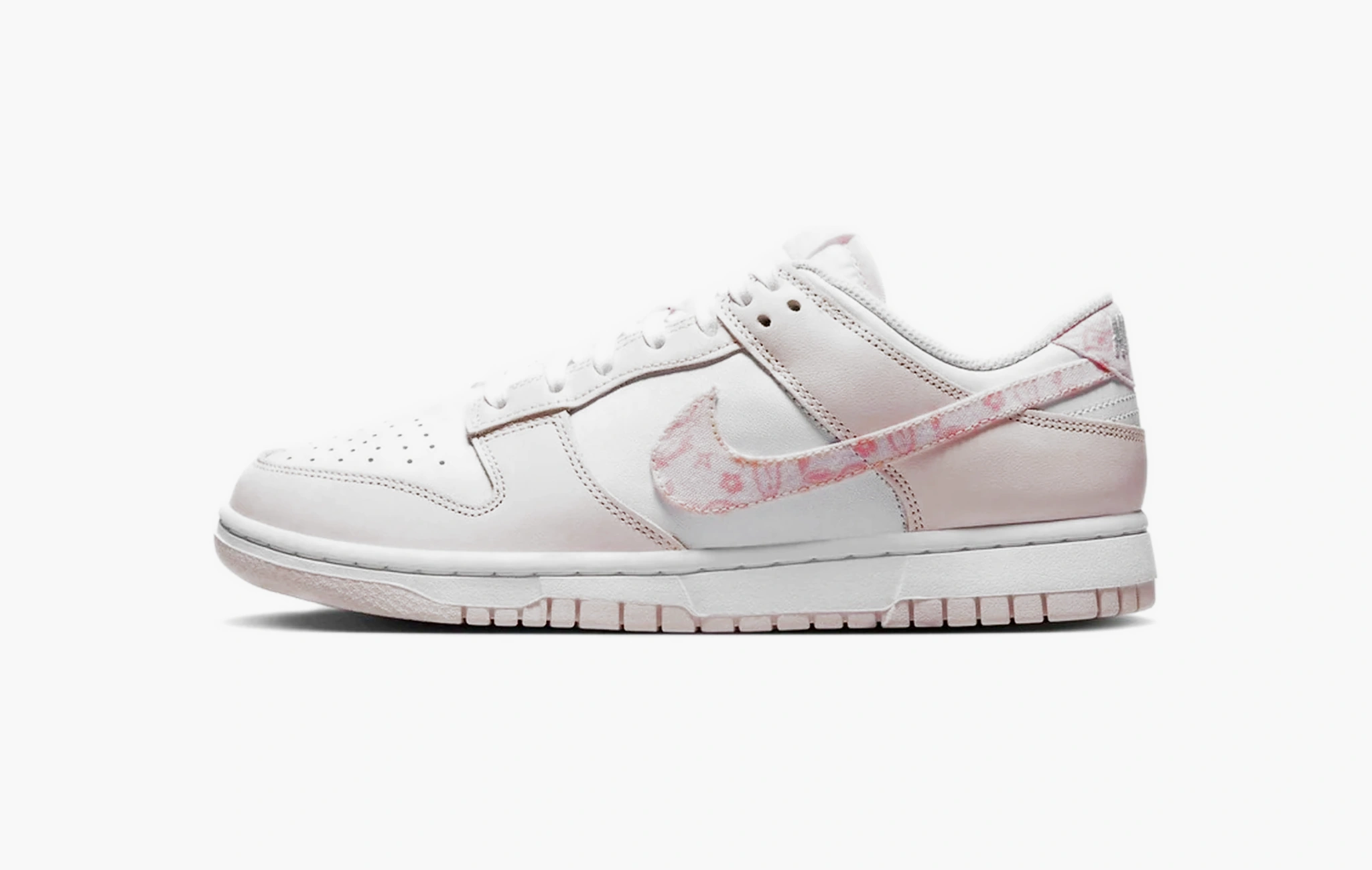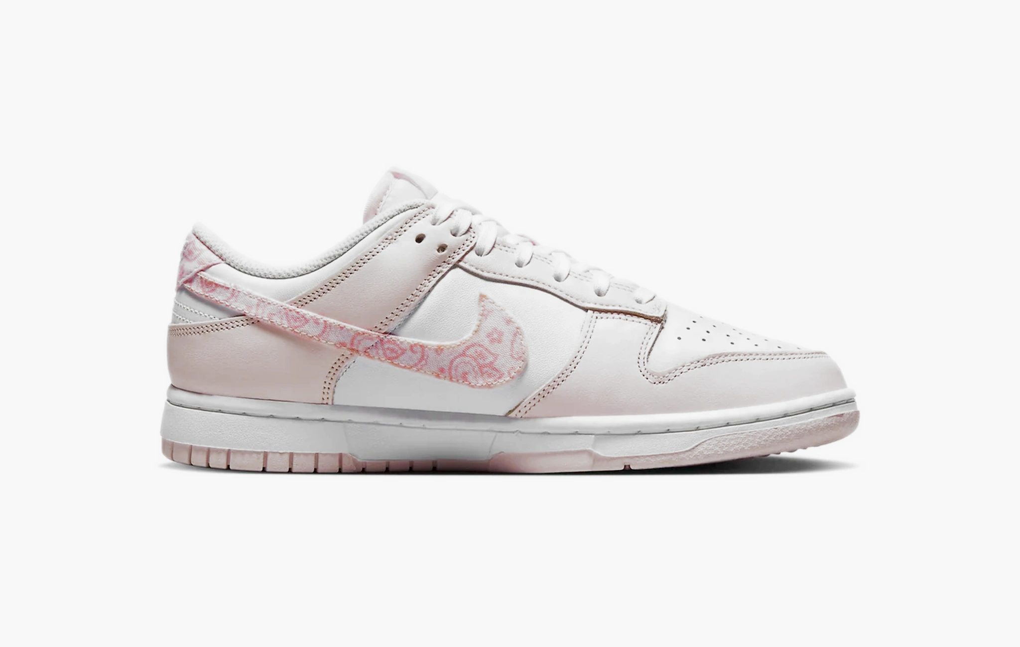 Кроссовки Dunk Low Essential WMNS "Paisley Pack - Pink" своим внешним видом напоминают нежный весенний цветок! Чистая белая кожа, послужившая основой для данной пары, дополнена перфорацией на передней части носка, которая обеспечивает постоянную циркуляцию воздуха. Светло-розовые детали, расположенные по всей поверхности обуви, и текстильные свуши с оригинальным принтом "бута" делают этот дизайн еще более милым и привлекательным. Классическая подошва, изготовленная из износостойкой резины двух цветов, дополняет облик кроссовок и выводит их носку на новый уровень. Dunk Low Essential WMNS "Paisley Pack - Pink", разработанные брендом Nike, появились на прилавках магазинов в первых числах января 2023 года.