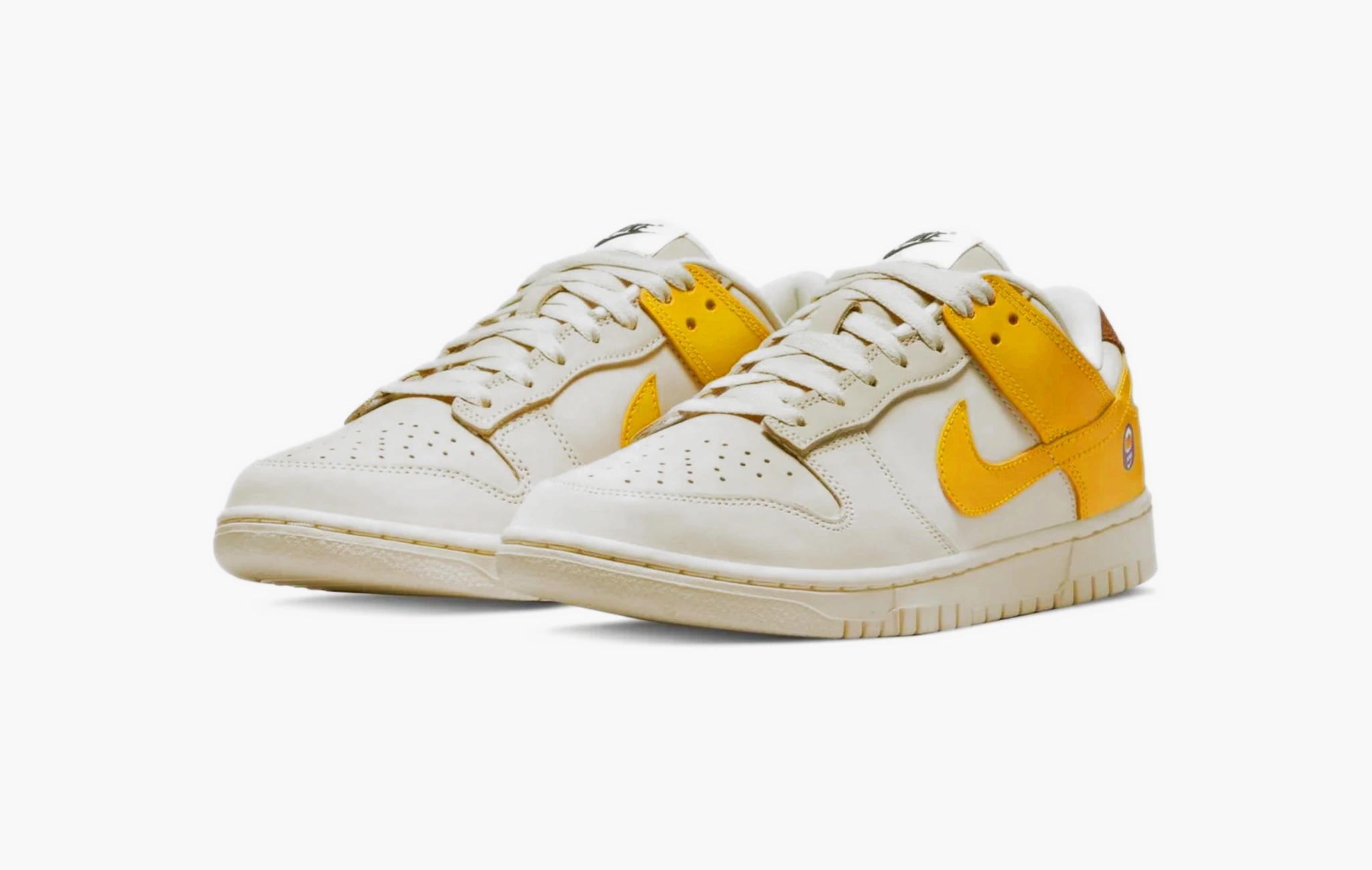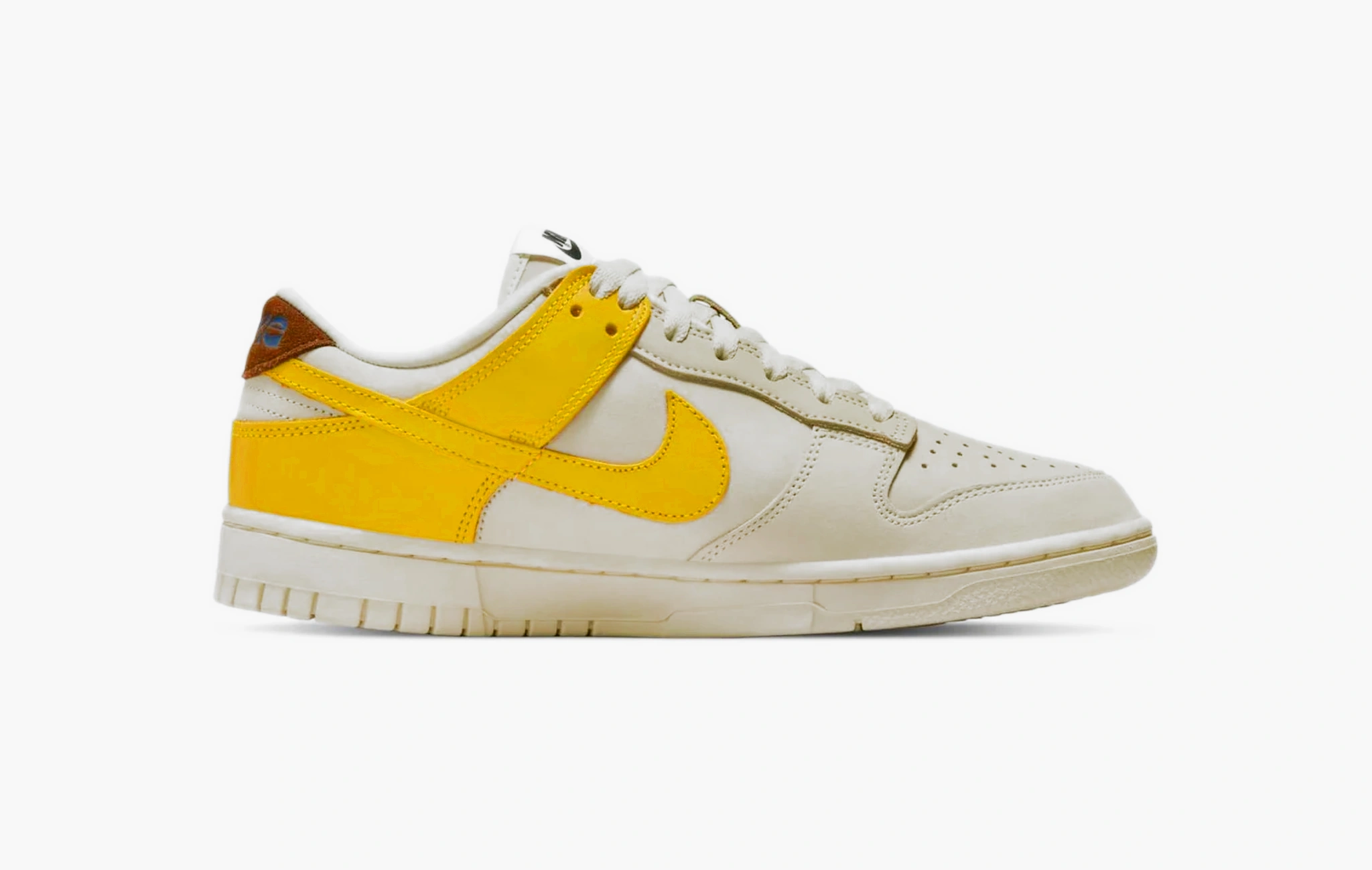 Nike Dunk Low являются отличным холстом для творчества дизайнеров бренда. Культовый силуэт Питера Мура постоянно выпускается в новых экспериментальных расцветках. В этот раз в основе концепта - банан. Вроде всё так просто, но каждая деталь является отсылкой. Верх пары из бежевого нубука напоминает съёдобную часть ягоды (да, банан – это ягода), желтая пятка – кожуру, а коричневая вставка - ветвь. Брендинг на боковых частях и стельках стилизован под винтажные наклейки.