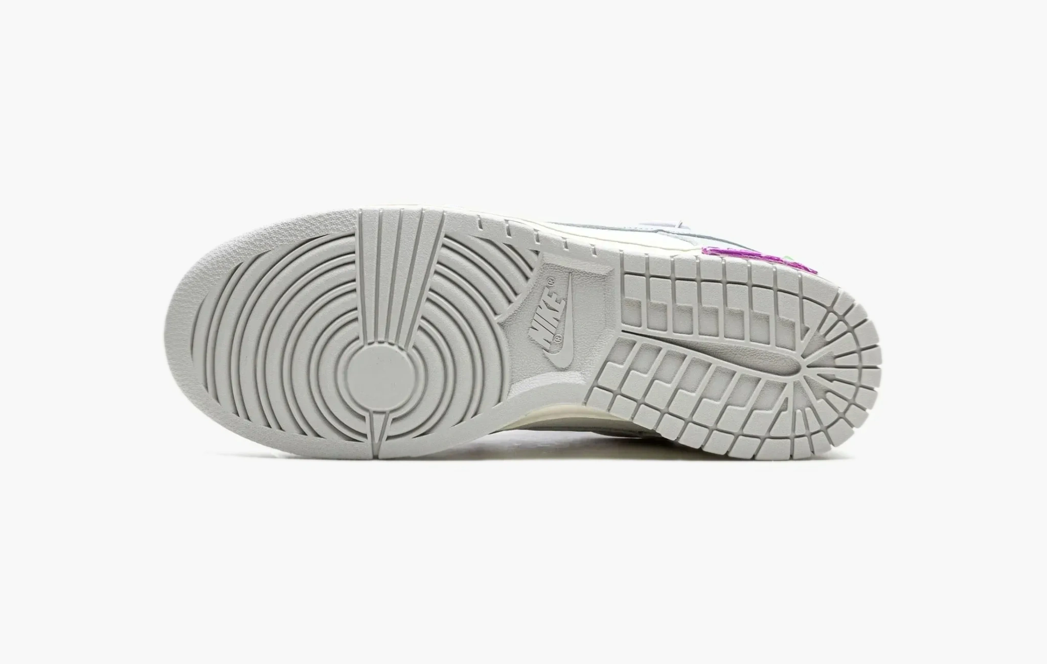 В 2021 году Вирджил Абло показал миру впечатляющую коллекцию под названием "The 50", созданную в сотрудничестве с Nike. Из названия сразу понятно, что было представлено 50 уникальных цветовых решений для модели Dunk Low. Лоты под номерами 1 и 50 кардинально отличались от остальных, в то время как оставшиеся экземпляры имели множество схожих черт. Лот номер 3 выполнен из кожи и синтетики, отличается наличием дополнительной белой шнуровки, фиолетовым язычком и зип-таем, а также несколькими другими яркими деталями.