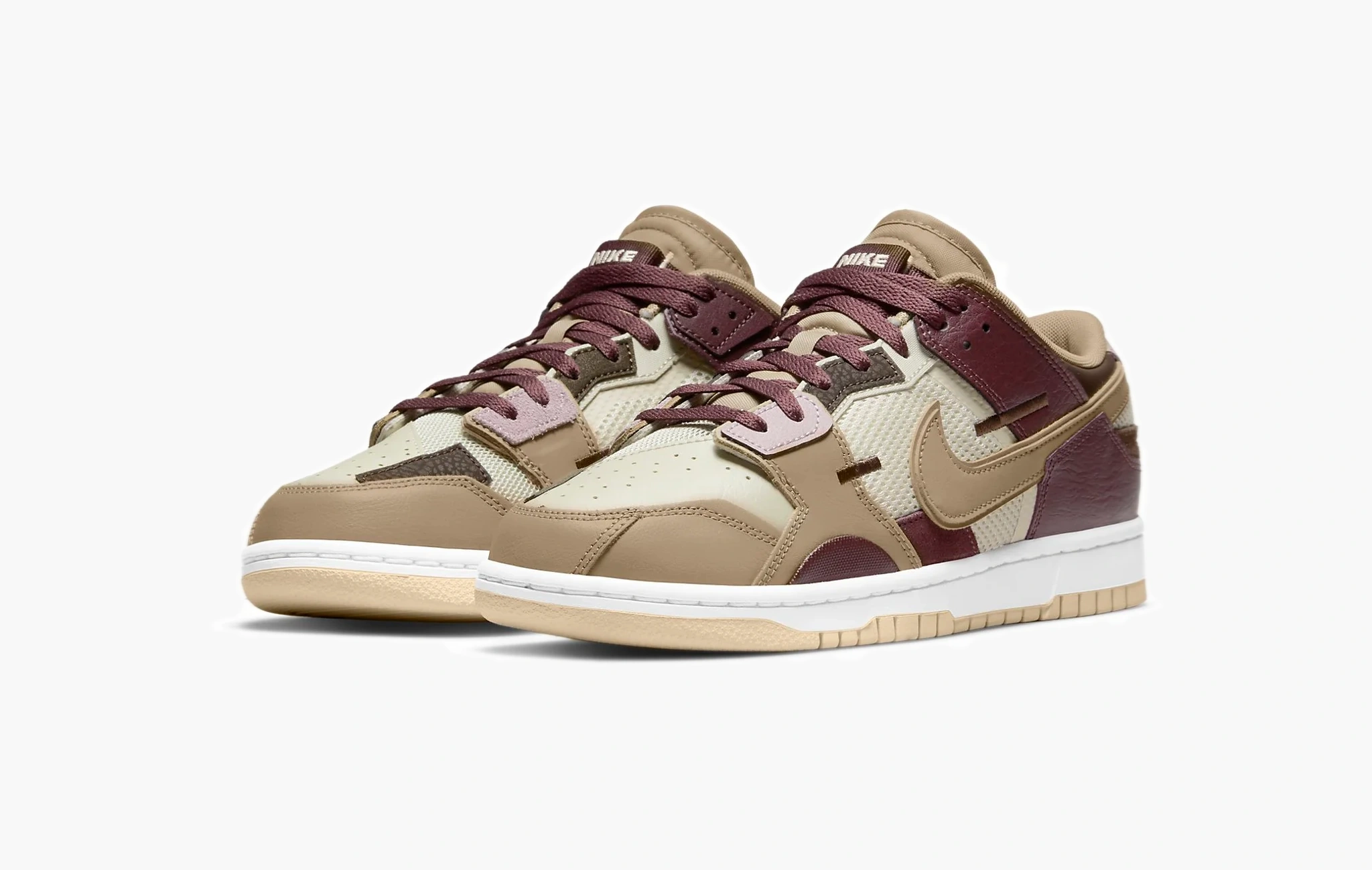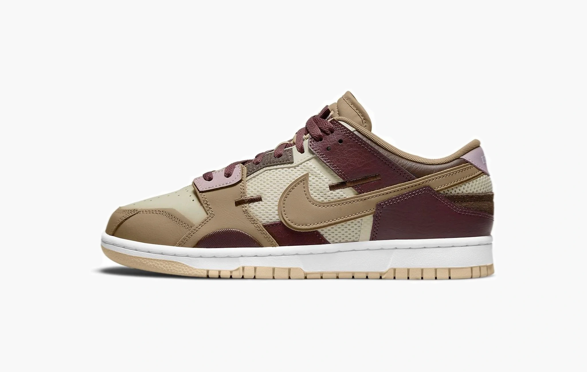 Dunk Low "Scrap Latte" — это уникальная модель, обладающая оригинальным и очень "вкусным" дизайном! Ванильная основа данных кроссовок из сетчатого материала была дополнена различными ассиметричными вставками из шоколадных замши и кожи. Свуши, а также элементы в области носка окрашены в кофейно-молочный оттенок, а небольшие детали клубничного цвета, расположившиеся около шнурков, прекрасно дополняют внешний вид пары. Кроссовки Dunk Low "Scrap Latte" обладают амортизирующей подошвой и невероятно комфортной посадкой, что делает их отличным решением как для повседневной носки, так и для активных прогулок. Стильная расцветка была представлена брендом Nike в первых числах мая 2022 года.