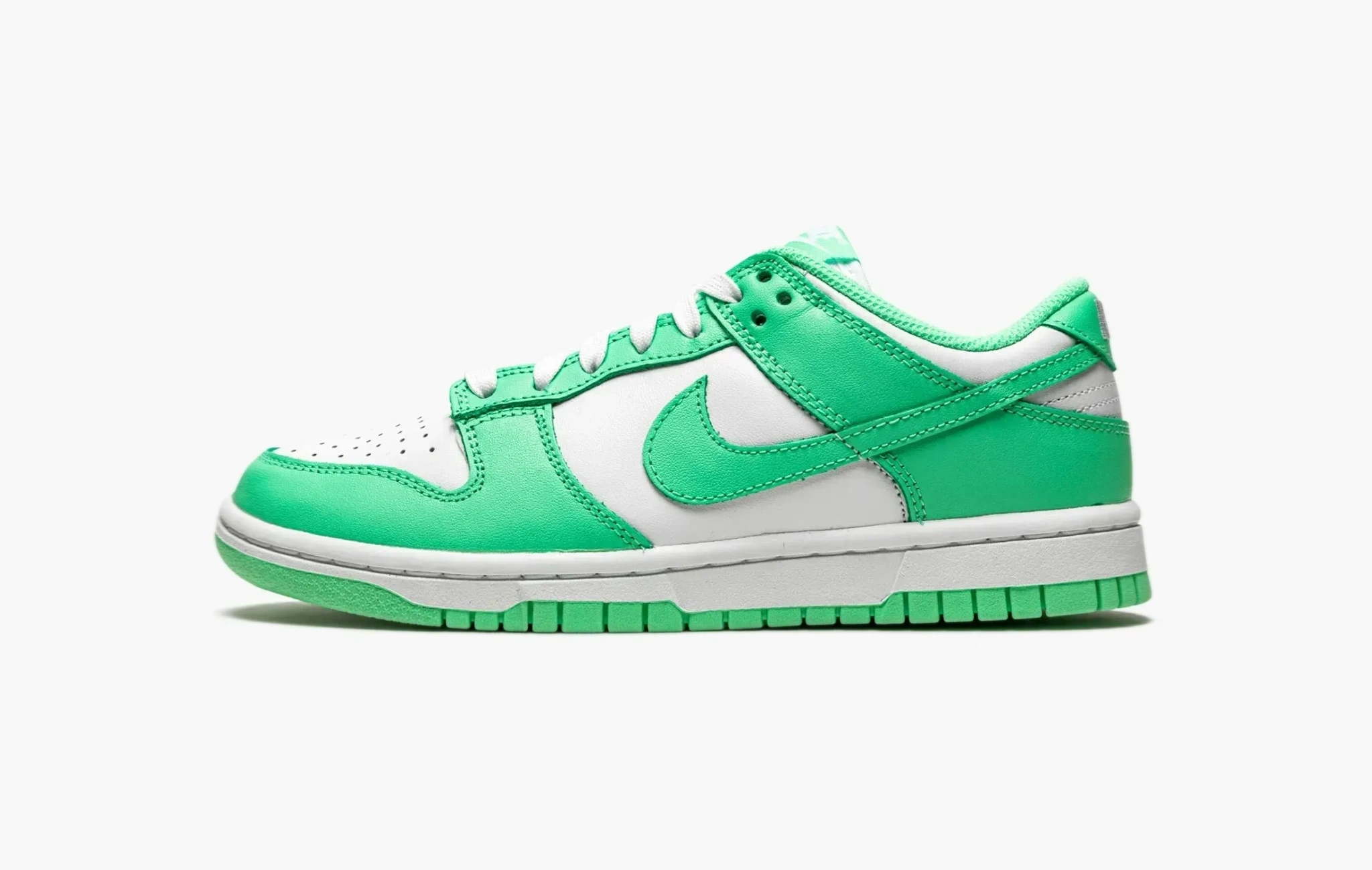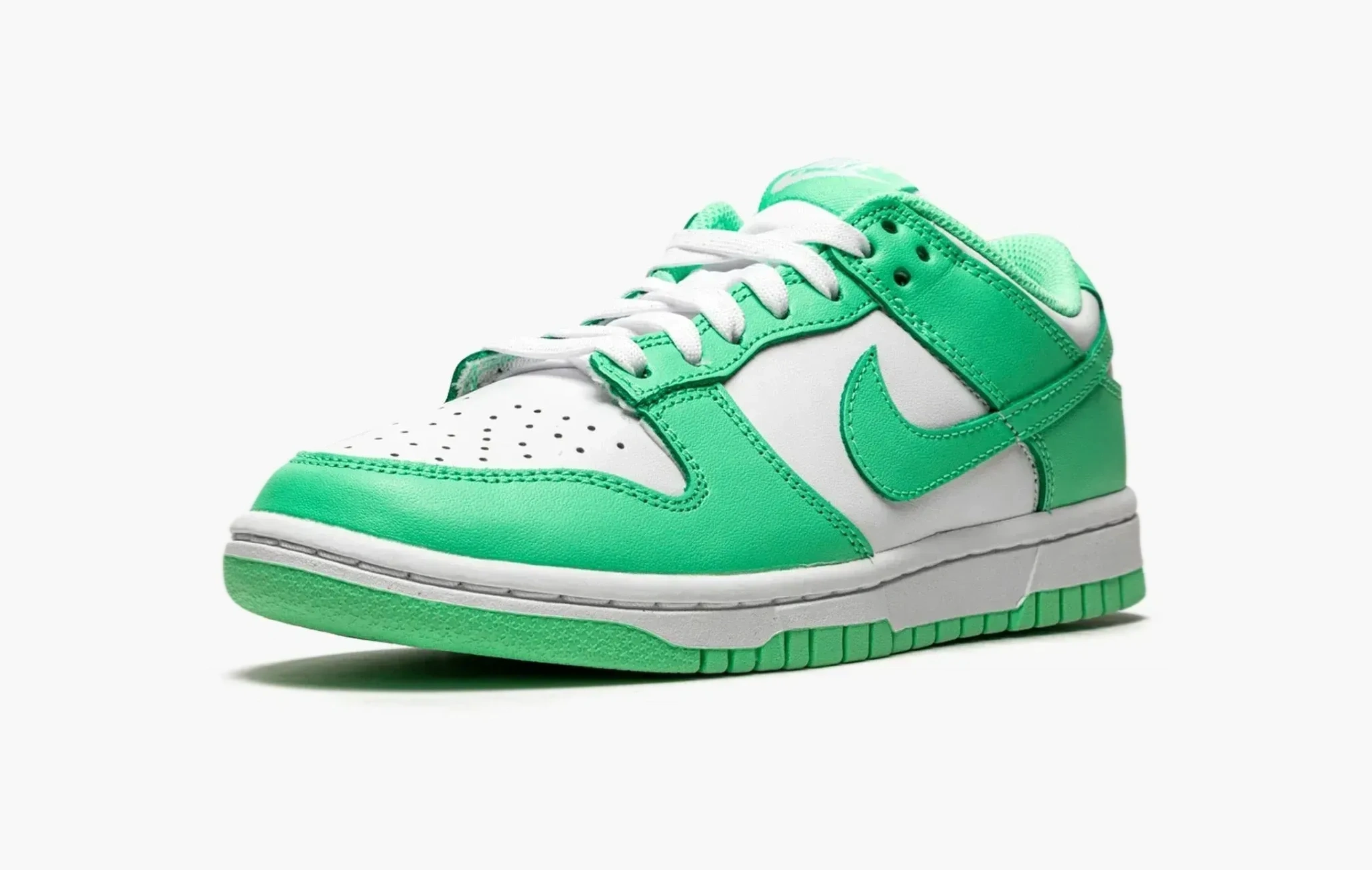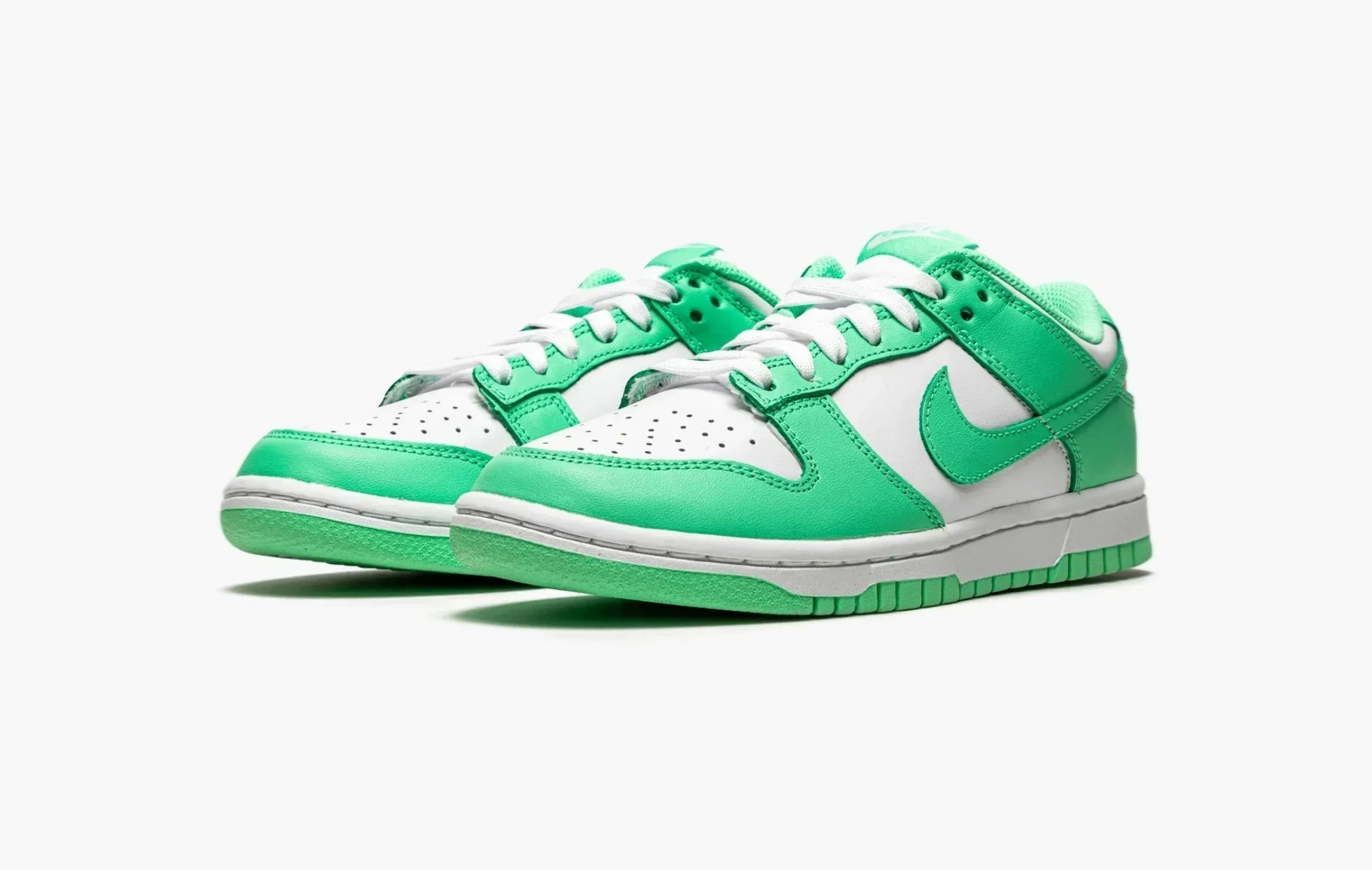 Помимо перевыпуска ретро-расцветок “данков” бренд смело добавляет новые цвета в палитру популярного и актуального силуэта. Цветовая гамма “Green Glow” в классическом двухцветном стиле, в основе – яркий мятный оттенок. Верх выполнен из кожи, язычок - из нейлона, подошва - из резины, ничего лишнего. В такой яркой паре хочется встречать весну, не так ли?