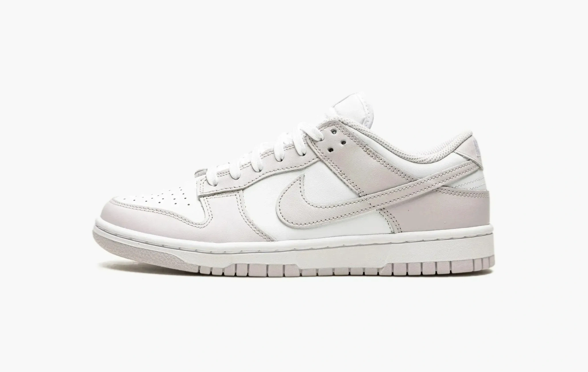 Кроссовки Dunk Low WMNS "Venice" от давно зарекомендовавшей себя компании Nike можно назвать воплощением утонченности и универсальности. Основой для данной модели послужила гладкая белая кожа. Традиционные свуши, детали на передней и задней поверхностях обуви, а также около люверсов выполнены в светлом сером оттенке с лиловым отливом. В этот же цвет окрашена часть подошвы, отличающейся не только повышенным комфортом, но и отличной износостойкостью. Эти кроссовки в лаконичном дизайне станут наиболее предпочтительным выбором как для долгих прогулок на свежем воздухе, так и для занятий активными видами спорта. Nike Dunk Low WMNS "Venice" были выпущены в женской размерной сетке в начале февраля 2022 года.
