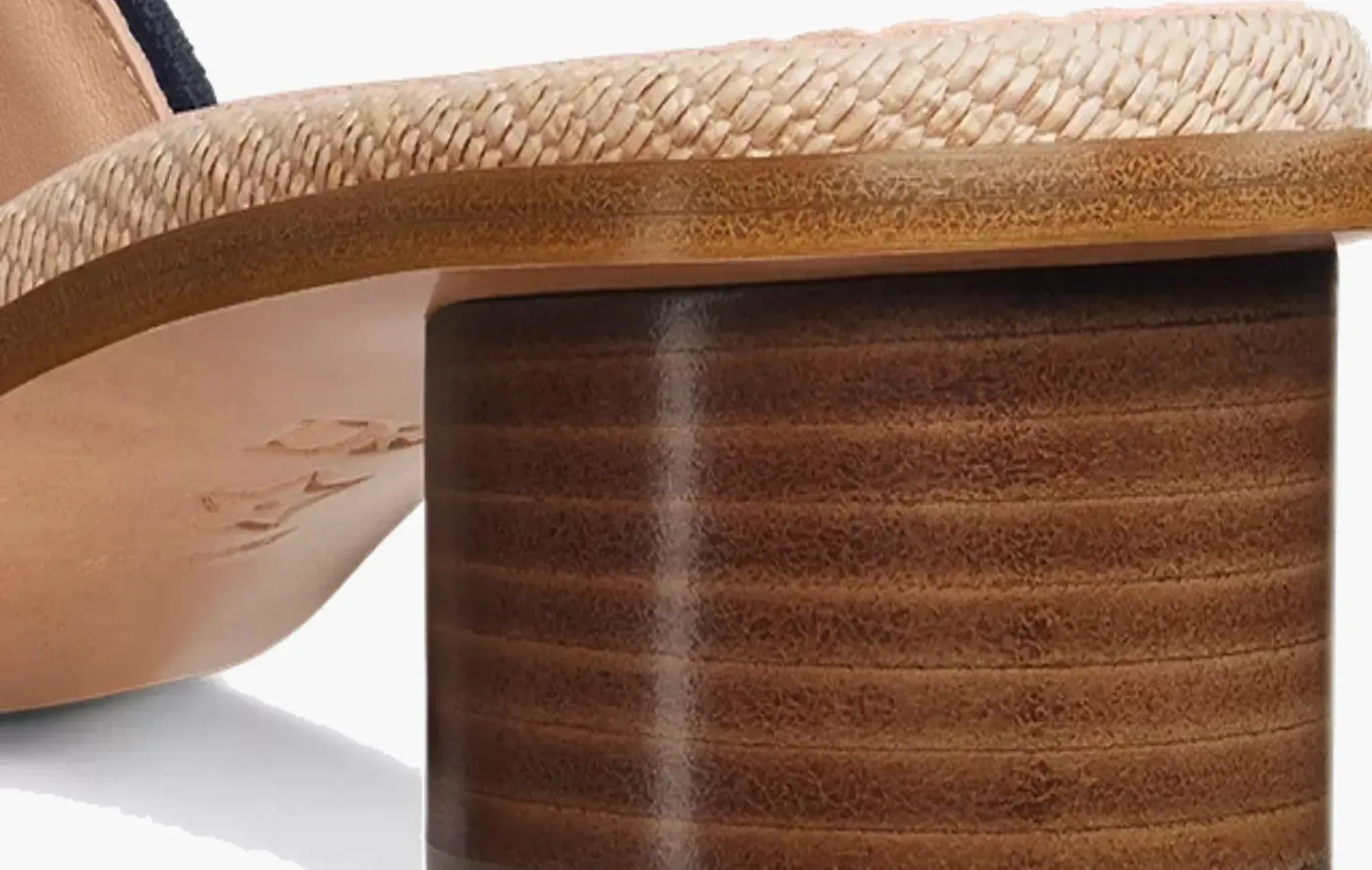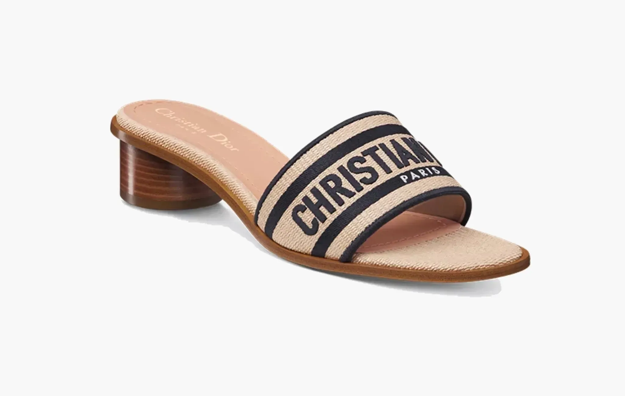 Dway Heeled Slide WMNS "Natural Raffia and Deep Blue Embroidered Cotton"