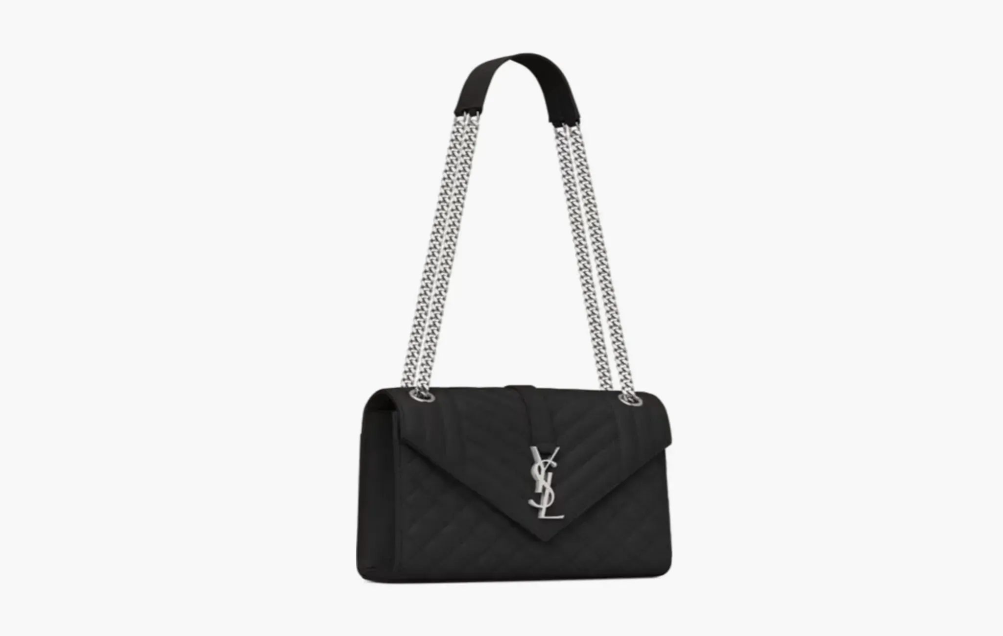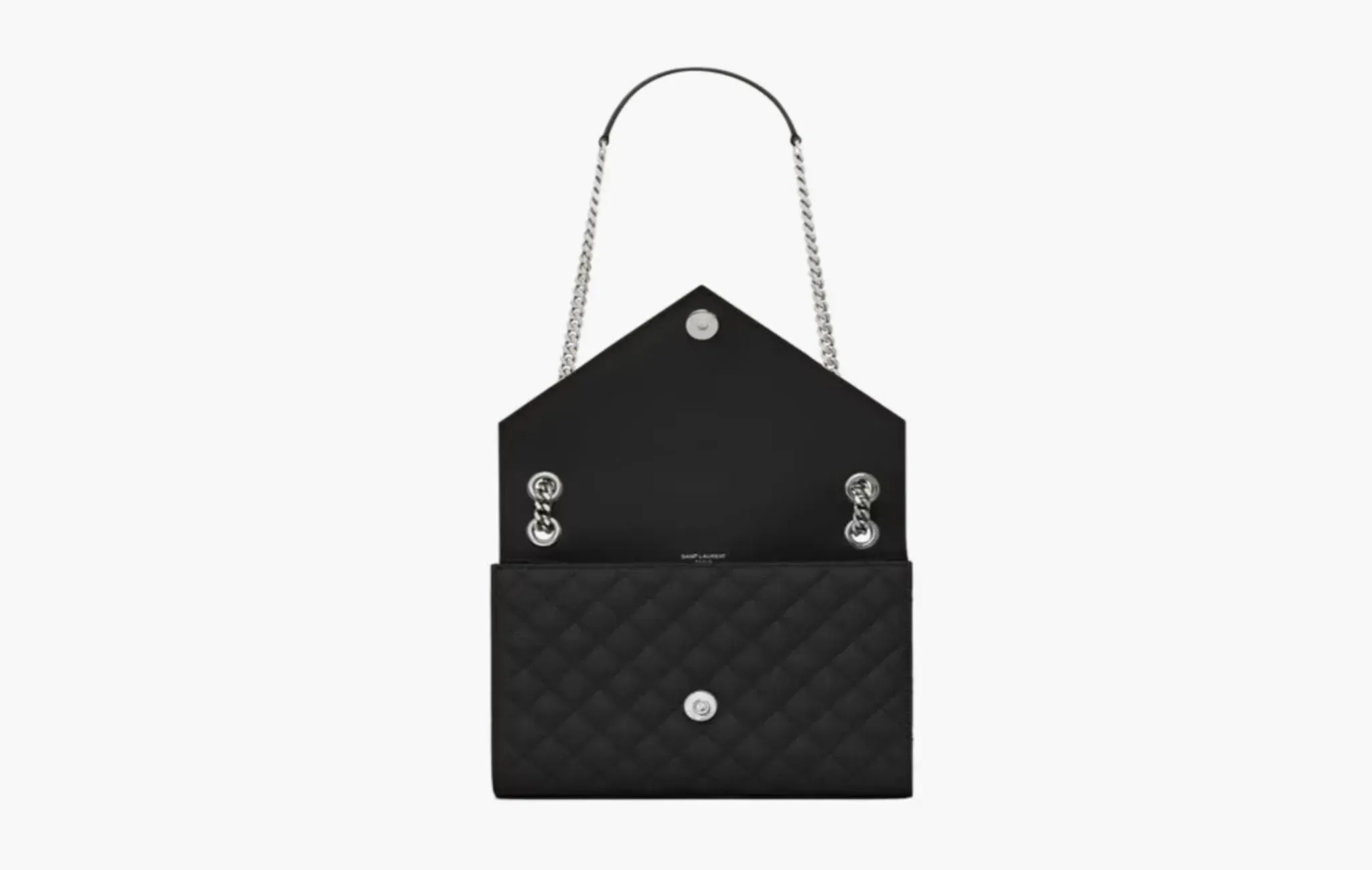 Envelope Medium In Quilted Grain De Poudre Embossed Leather Noir "Silver"
