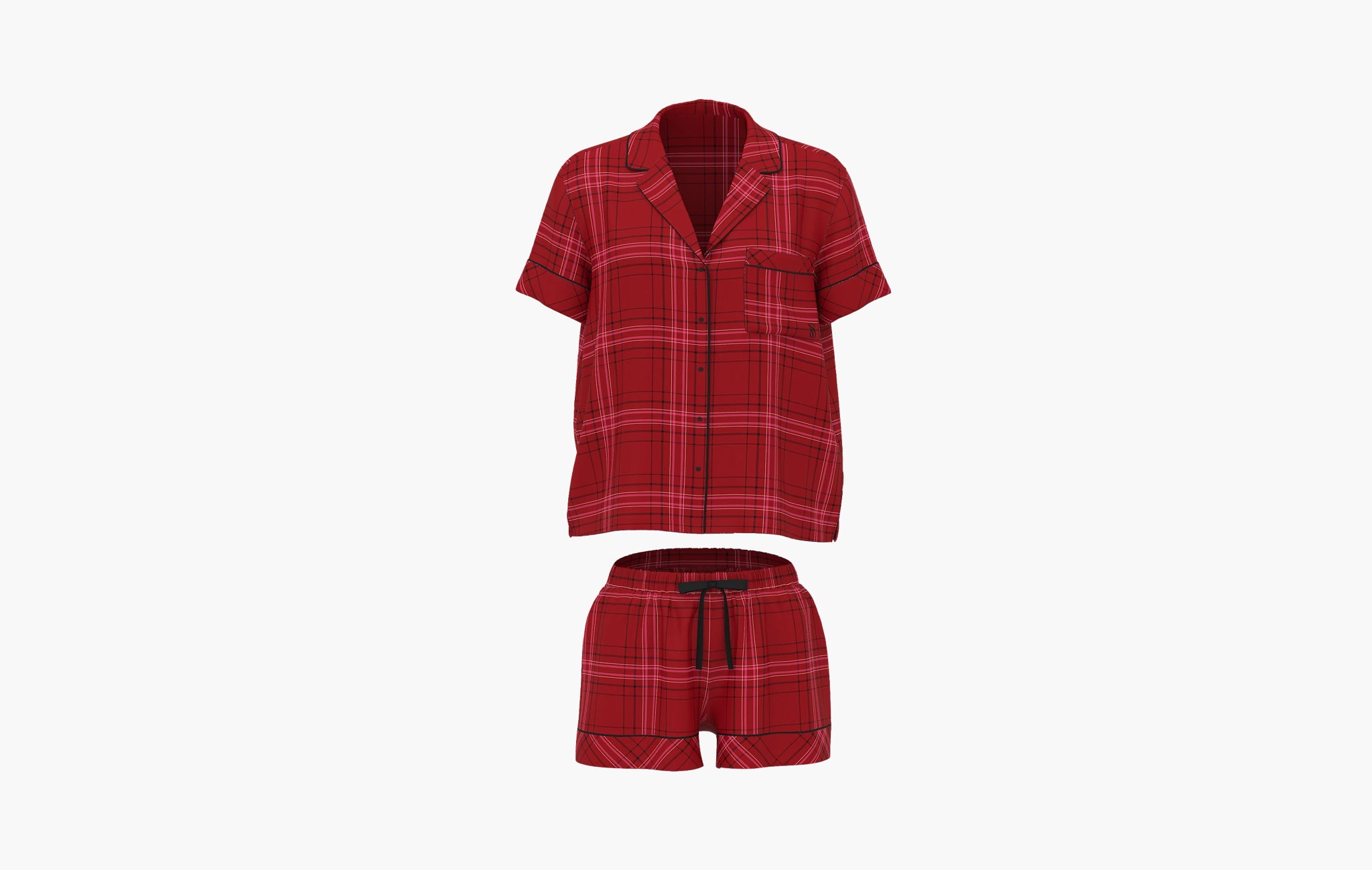 Flannel Short Pajama Set "Red Lacquer/Rose Garden Yd Plaid"