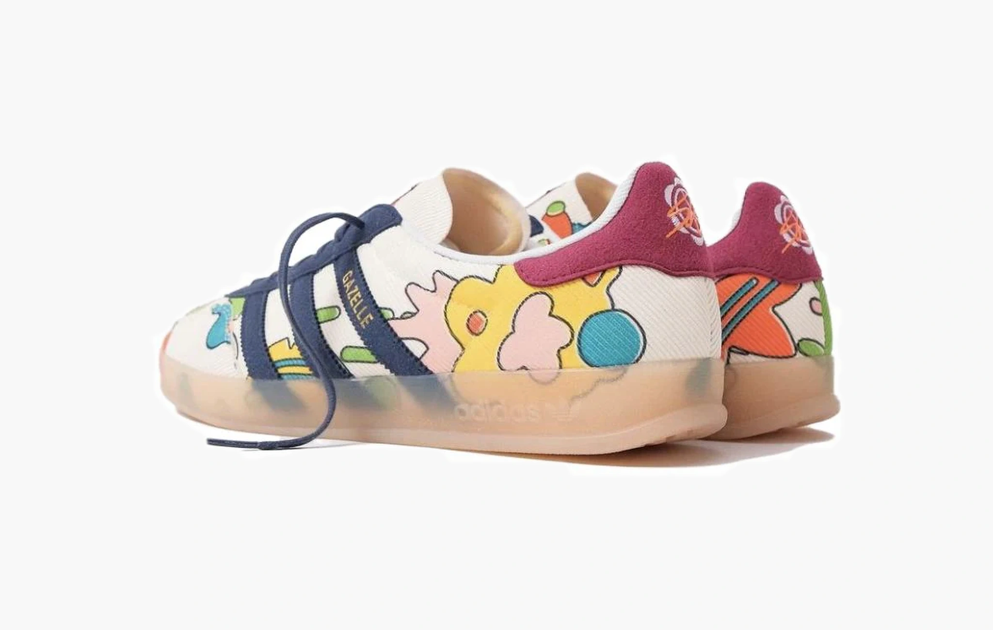 Кроссовки Gazelle Indoor "Sean Wotherspoon" — это уникальная коллаборация компании Adidas и известного дизайнера Шона Уотерспуна, который продвигает идею сохранения экологии. Впечатляющий и яркий образ кроссовок создается при помощи переработанного материала, выбранного в качестве основы модели и выполненного в нейтральном оттенке с пестрой расцветкой. Характерные полосы на боковых поверхностях пары и шнуровка в насыщенном синем цвете создают интересный контраст. Дополняет дизайн полупрозрачная подошва и фирменный логотип "Wotherspoon" на заднике. Gazelle Indoor "Sean Wotherspoon", призванные вдохновить к ответственному потреблению, были представлены публике 27 мая 2023 года.