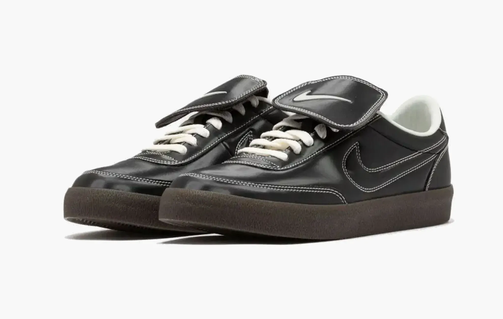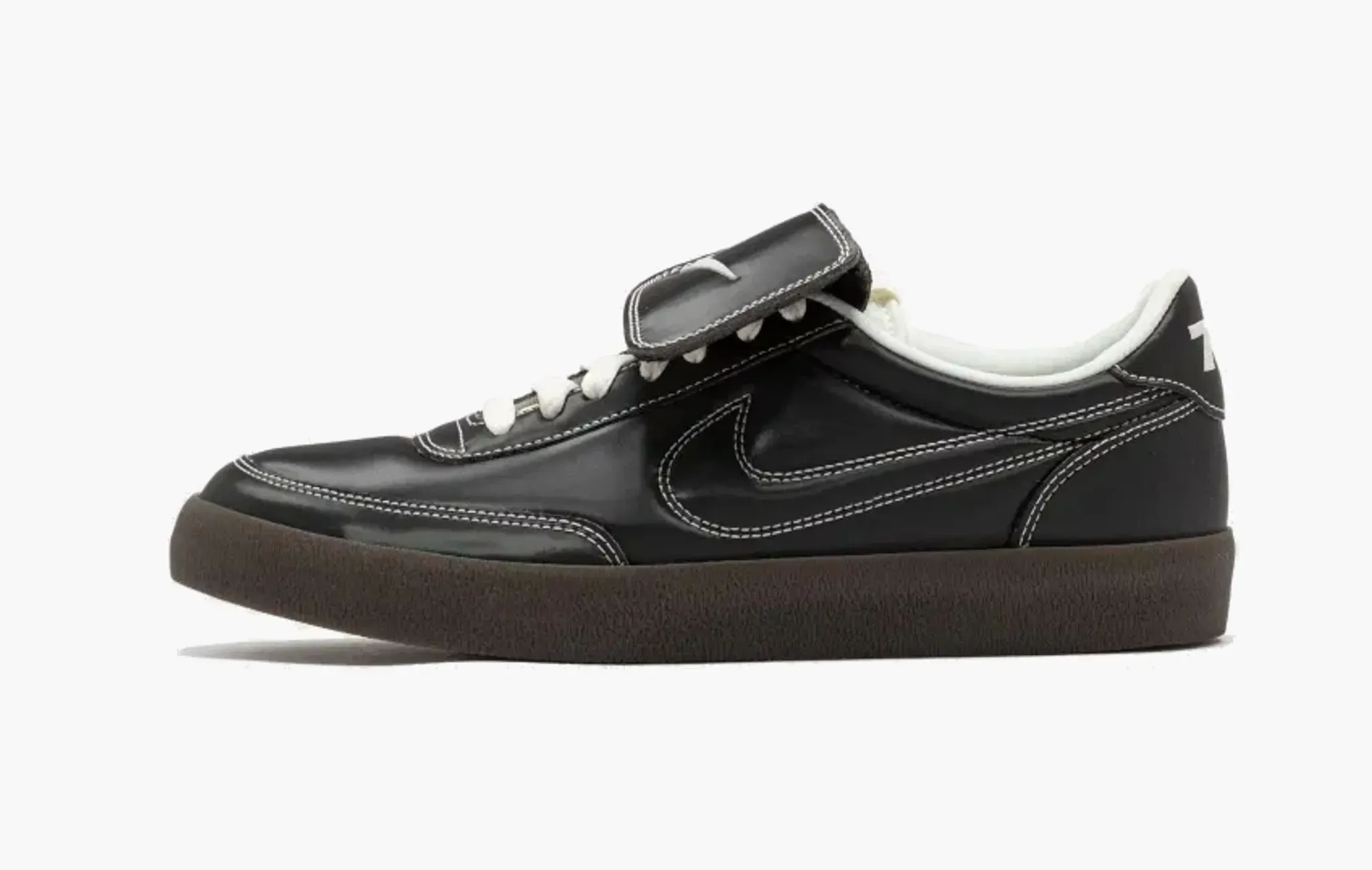 Дизайн Nike Killshot 2 LTR PRM Tiempo Pack Black вдохновлён футбольной эстетикой, о чём громко заявляет откидной язычок в стиле 80-ых. Данная модель выполнена из натуральной чёрной кожи и прошита контрастными белыми нитями, что сразу напоминает релиз Air Jordan 1 Low x Travis Scott "Phantom". С учётом тренда на terrace-casual эти кроссовки могут стать хорошей альтернативой для любителей такого стиля.