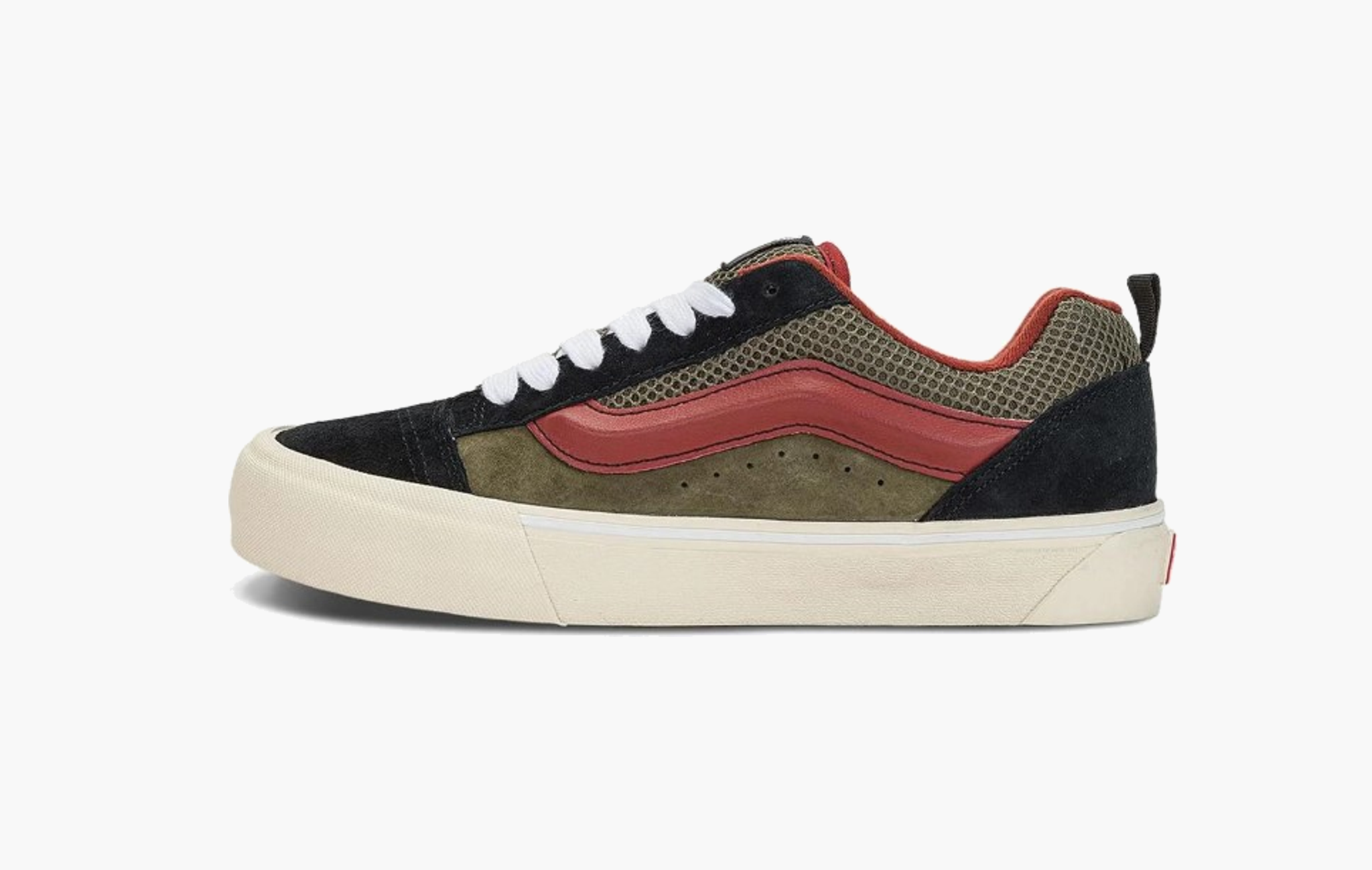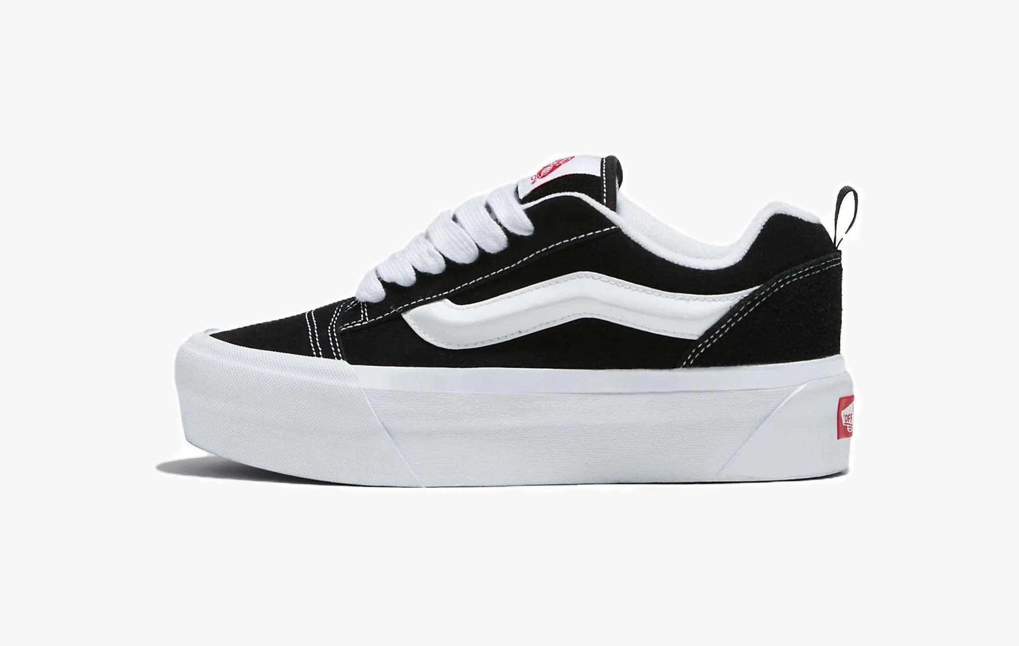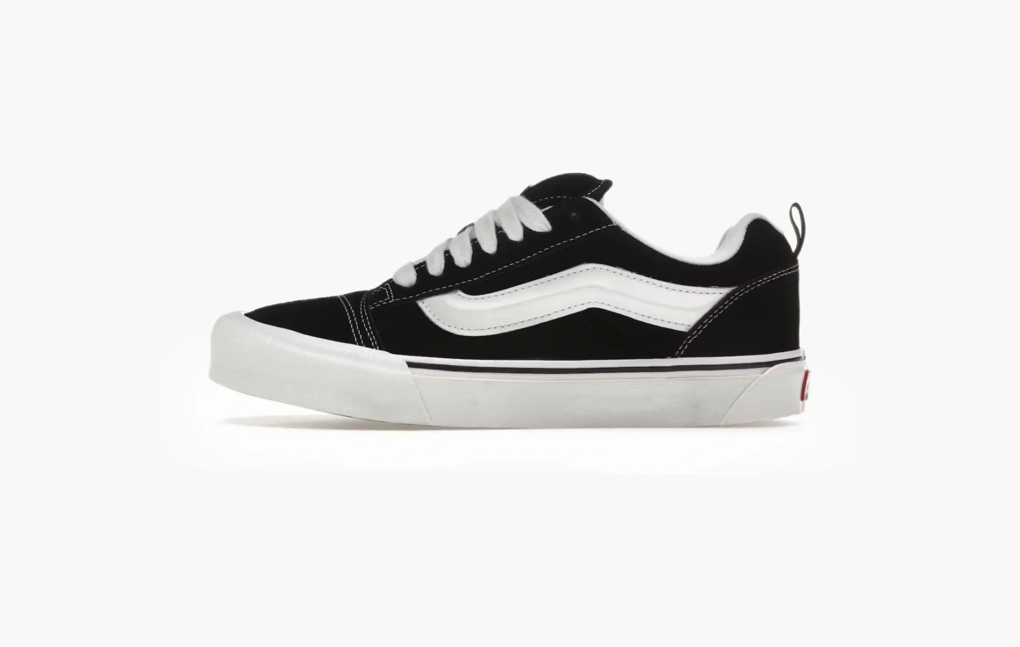 Культовые кеды Knu Skool "Black White", изначально созданные для скейтеров и быстро ставшие популярными в мире уличной моды, вновь привлекают поклонников стильной обуви благодаря своему минималистичному оформлению. Модель изготовлена из высококачественной натуральной замши черного цвета. Обновленная белая полоса, расположенная вдоль боковой поверхности, создает узнаваемый силуэт и притягивает взгляды. Контрастными элементами выступают белоснежные классическая подошва Vans и шнуровка. Завершают дизайн фирменные ярко-красные логотипы на язычках и задниках, где для удобства надевания кед присутствуют еще небольшие петли. Vans Knu Skool "Black White" впервые появились на полках магазинов 18 февраля 2023 года.
