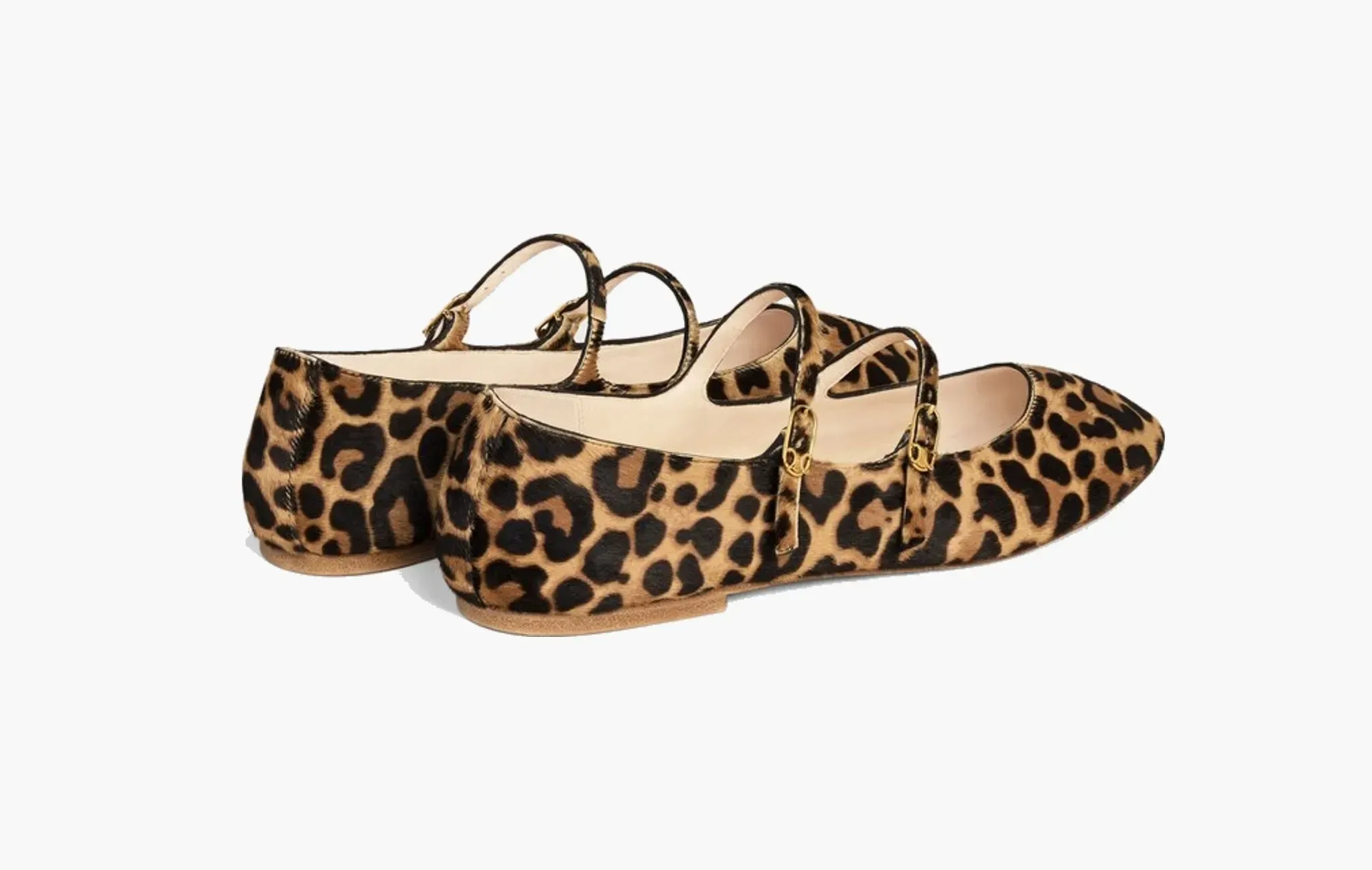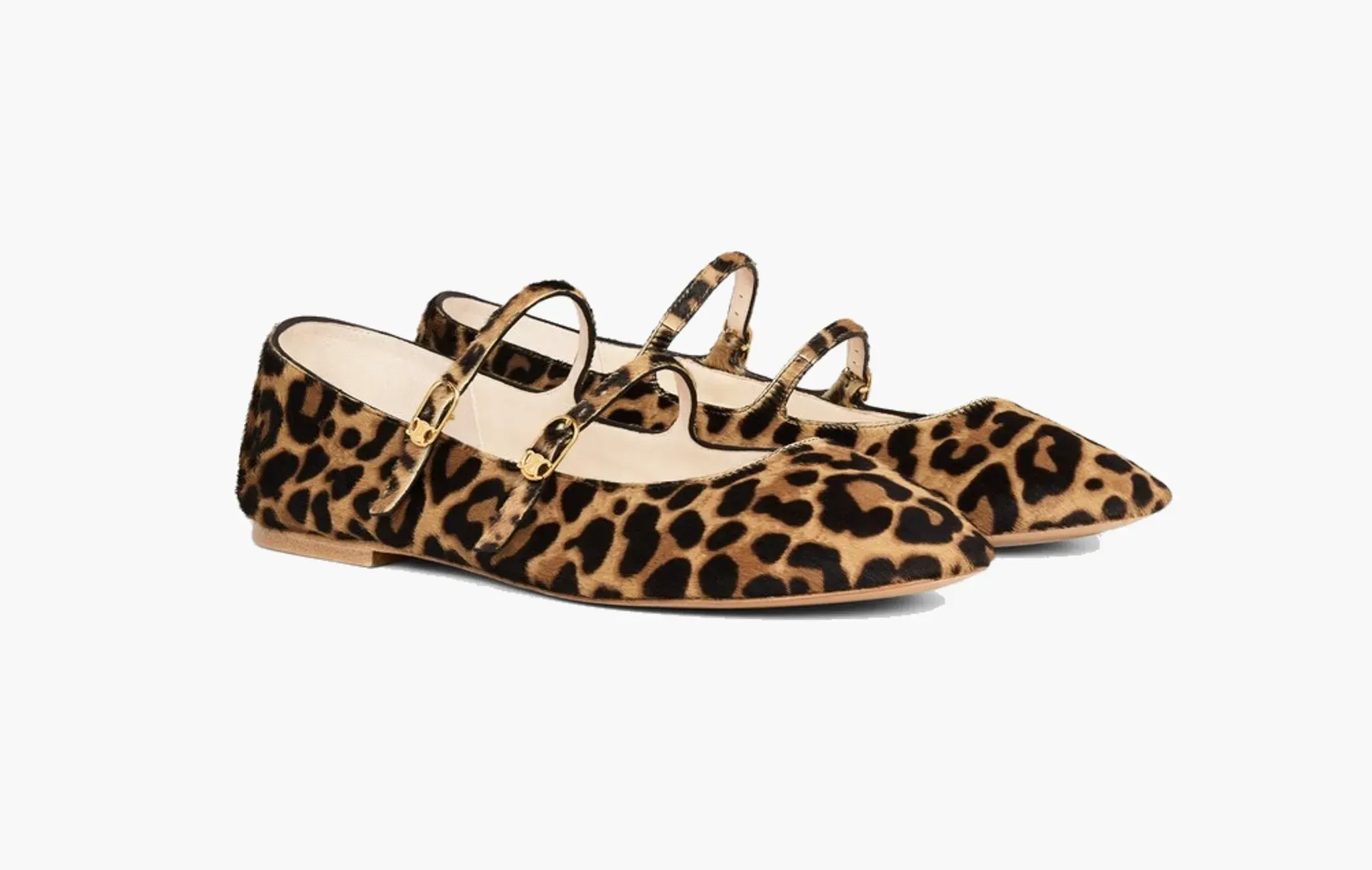 Les Ballerines Double Strap Ballerina In Leopard Printed Hairy Calfskin "Brown/Beige"