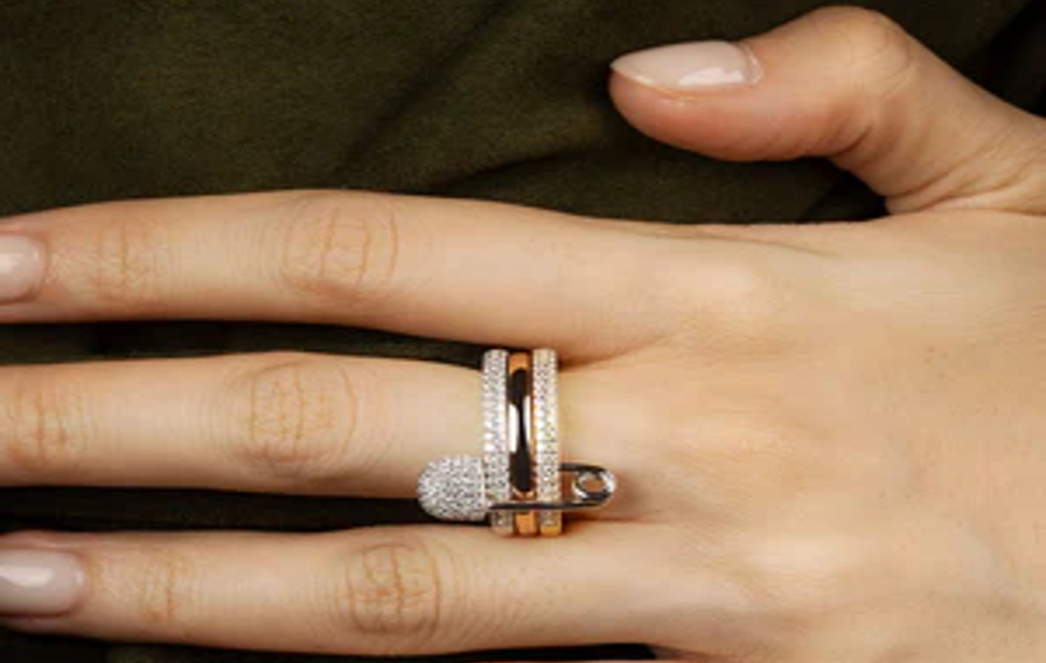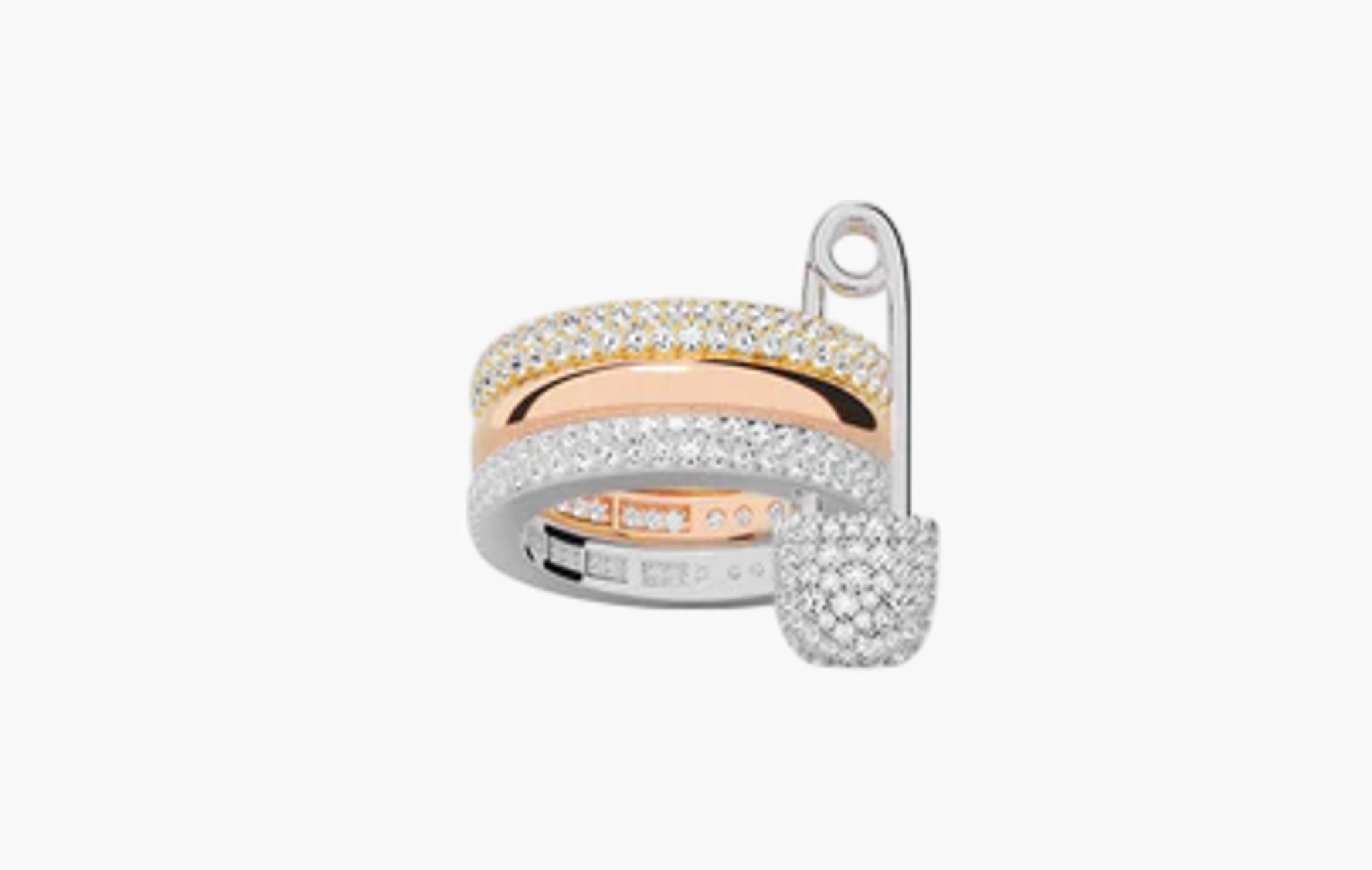 Morse Code Love, Smile, Bonheur Triple Hoop Safety Pin Ring 18k Rose Gold Plated