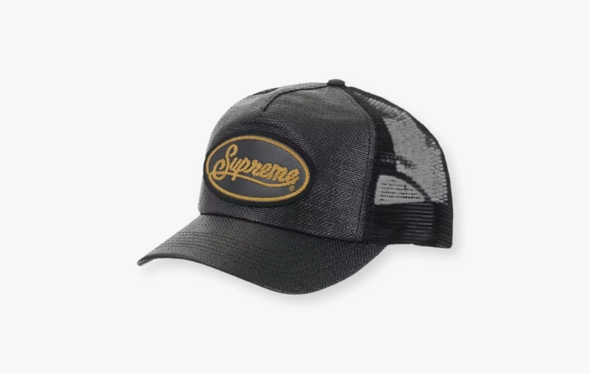 Raffia Mesh Back 5-Panel Hat "Black"