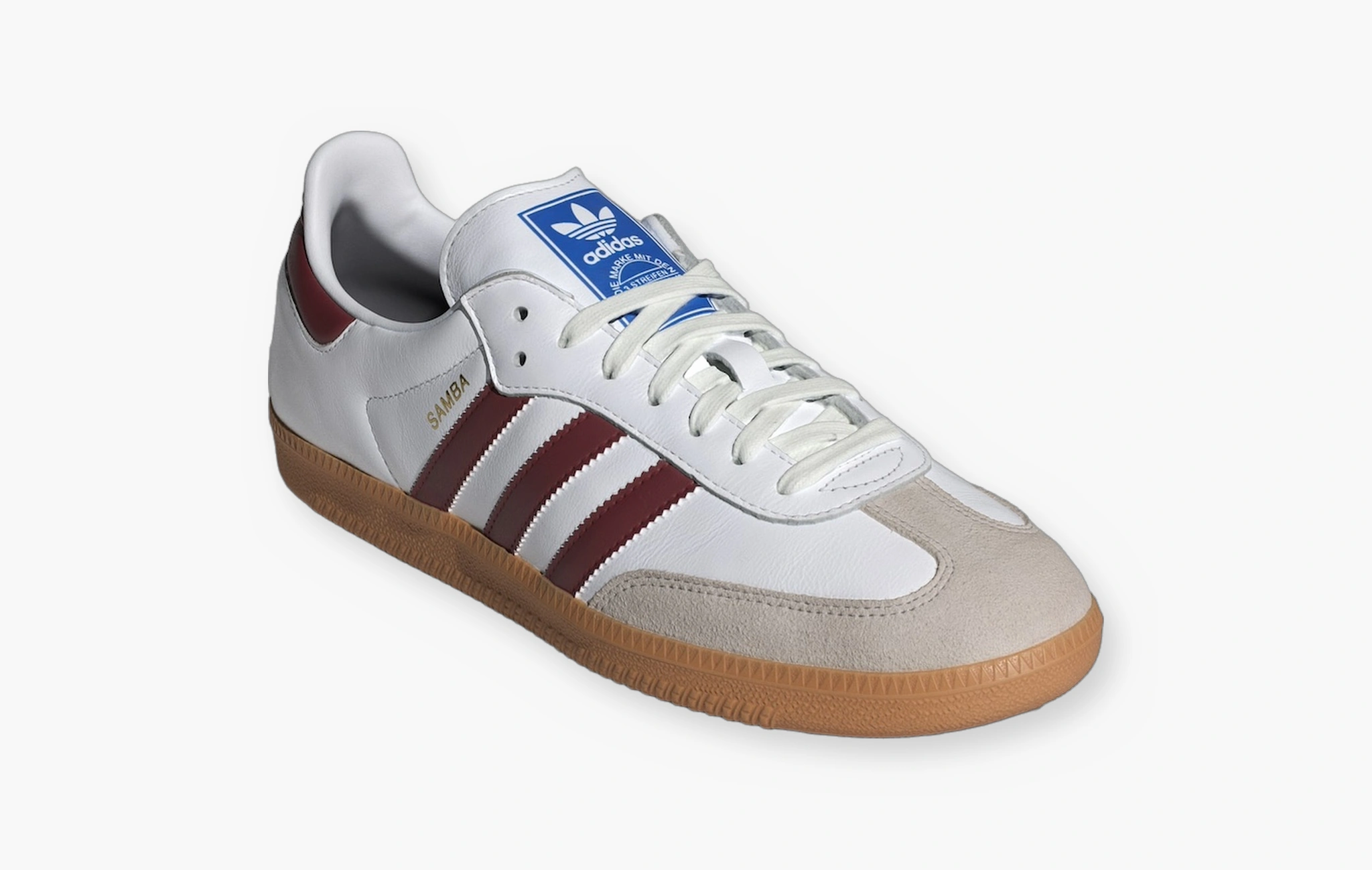 Свежая расцветка adidas Samba “Collegiate Burgundy”. Данный силуэт стал трендсеттером спроса на terrace-casual обувь. Основная задача немецкого спортивного бренда добавлять к классике что-то актуальное. Верх кед выполнен из премиальной серой ворсистой замши, основа - из белой кожи, подошва - из натурального каучука, бордовые вставки. Классическая синяя бирка с логотипом бренда на кожаном язычке.