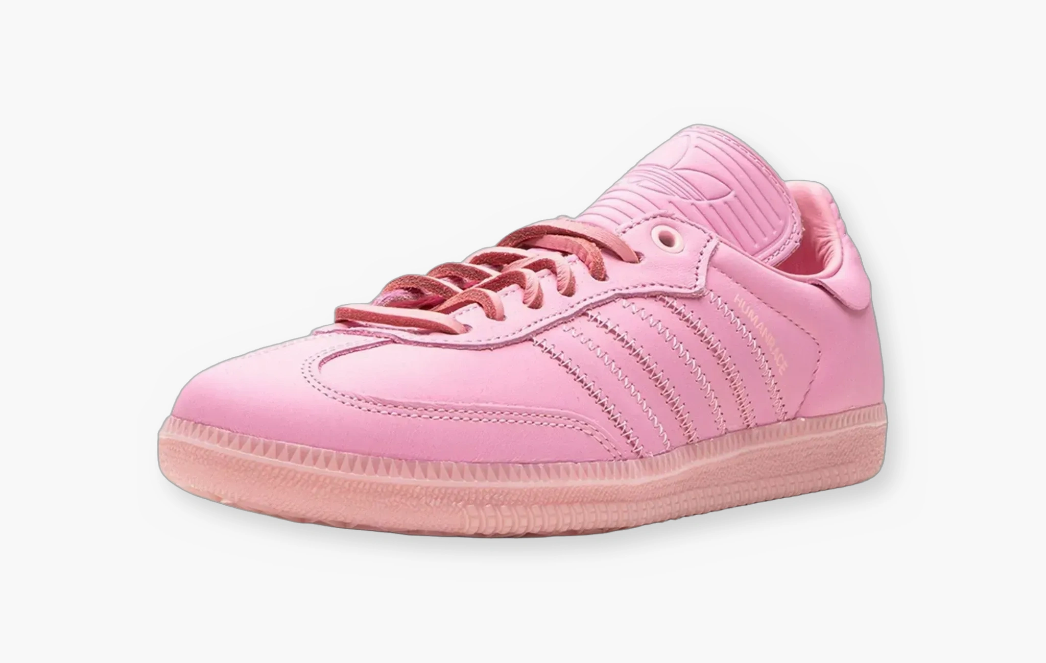 В 2015 году Pharrell совместно с adidas выпустил просто огромную коллекцию adidas Superstar “SUPERCOLOR”, в которую вошли 50 оттенков культового баскетбольного силуэта. История повторяется, модель изменилась, пришло время adidas Humanrace Samba “Colors By Pharrell”. Данная расцветка выполнена целиком в розовом цвете, верх и даже шнурки - из кожи, получилась яркая пара для таких же ярких личностей.