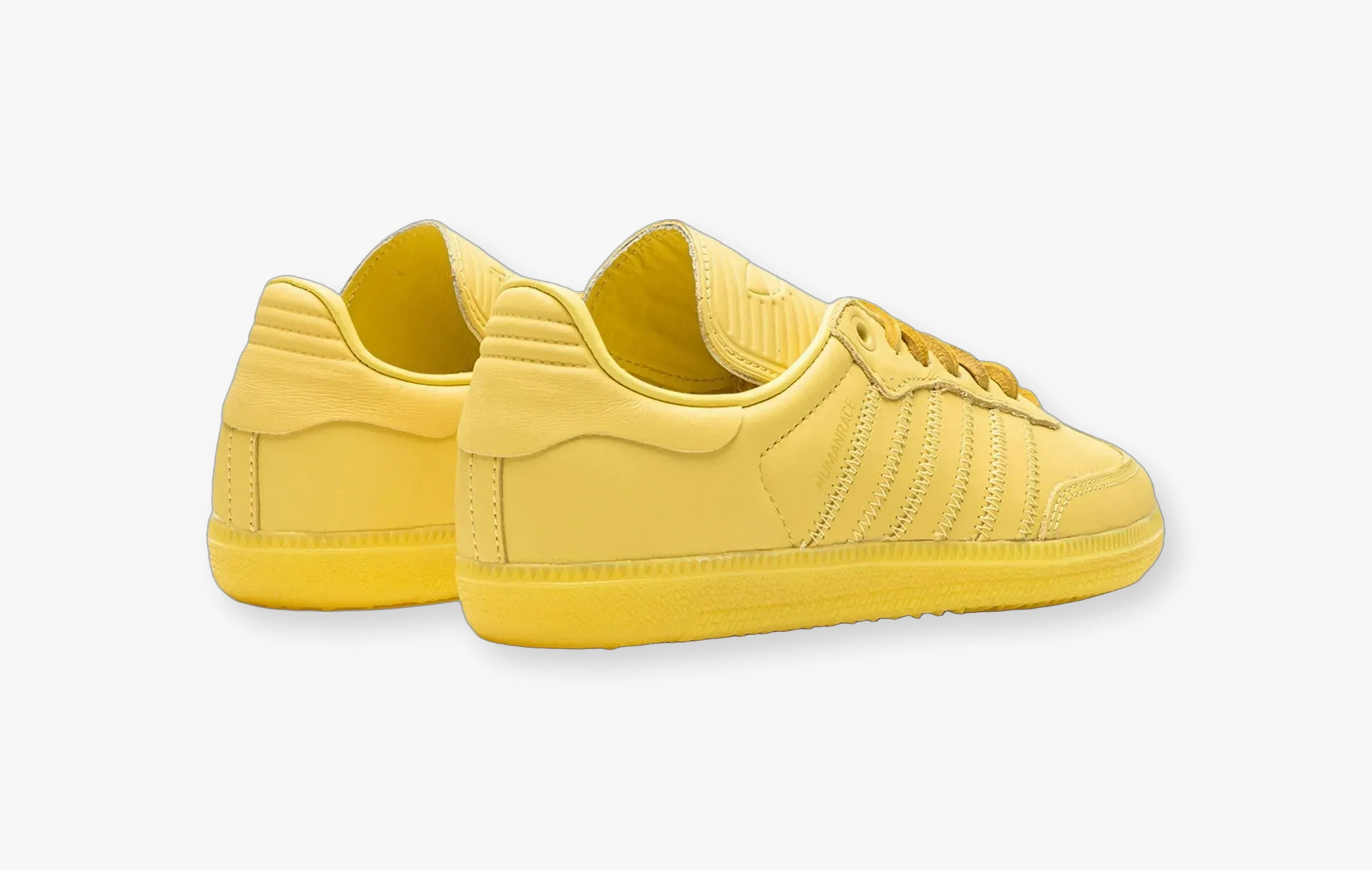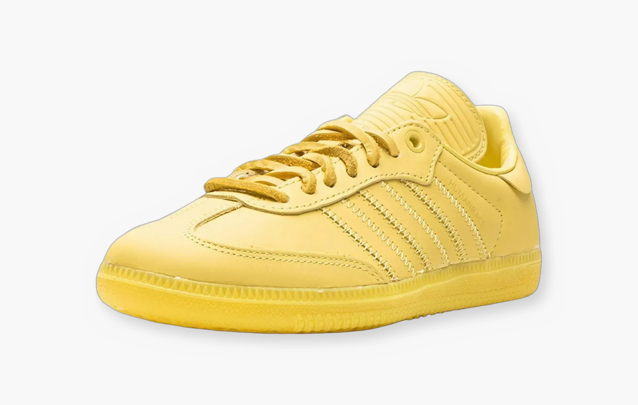 В 2015 году Pharrell совместно с adidas выпустил просто огромную коллекцию adidas Superstar “SUPERCOLOR”, в которую вошли 50 оттенков культового баскетбольного силуэта. История повторяется, модель изменилась, пришло время adidas Humanrace Samba “Colors By Pharrell”. Данная расцветка выполнена целиком в жёлтом цвете, верх и даже шнурки из кожи, получилась яркая пара для таких же ярких личностей.