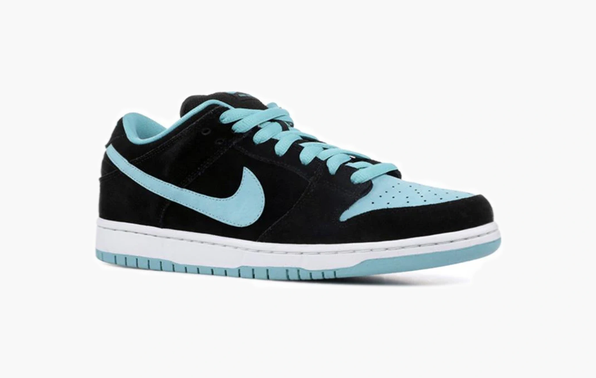 Старые релизы подразделения Nike SB заслуживают отдельно внимания. Альтернативное название данной расцветки Nike SB Dunk Low «Tiffany J-Pack», по выбранным оттенкам это отчётливо читается. Ко всему этому они могут напомнить вам о коллаборации с Diamond Supply Company. Верх выполнен из чёрной замши и голубой кожи, что является классическим сочетанием для данного скейтерского силуэта.