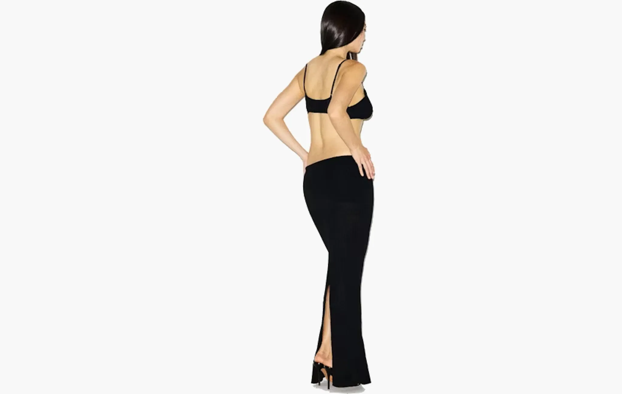 Sheer Knit Foldover Long Skirt "Onyx"