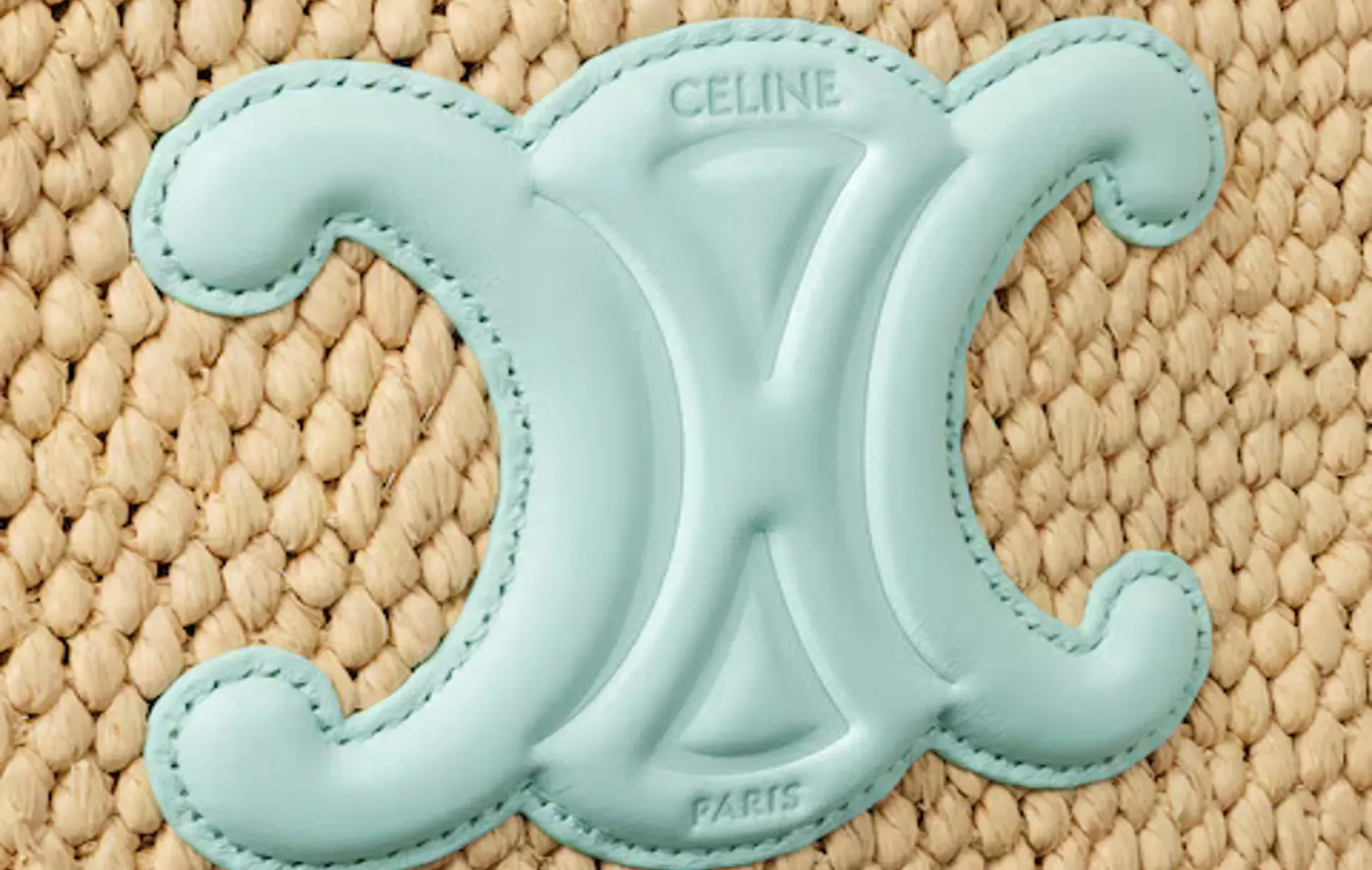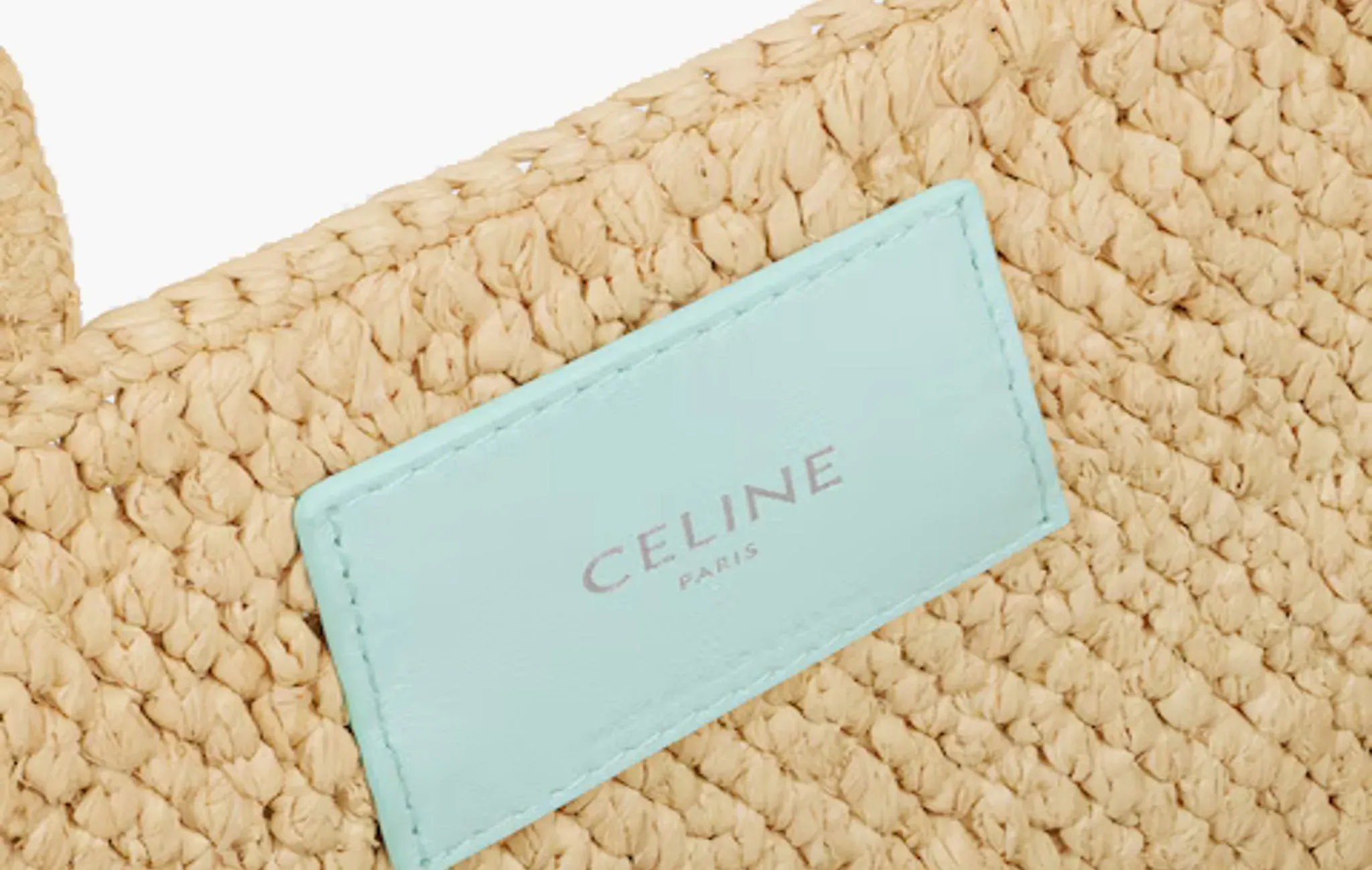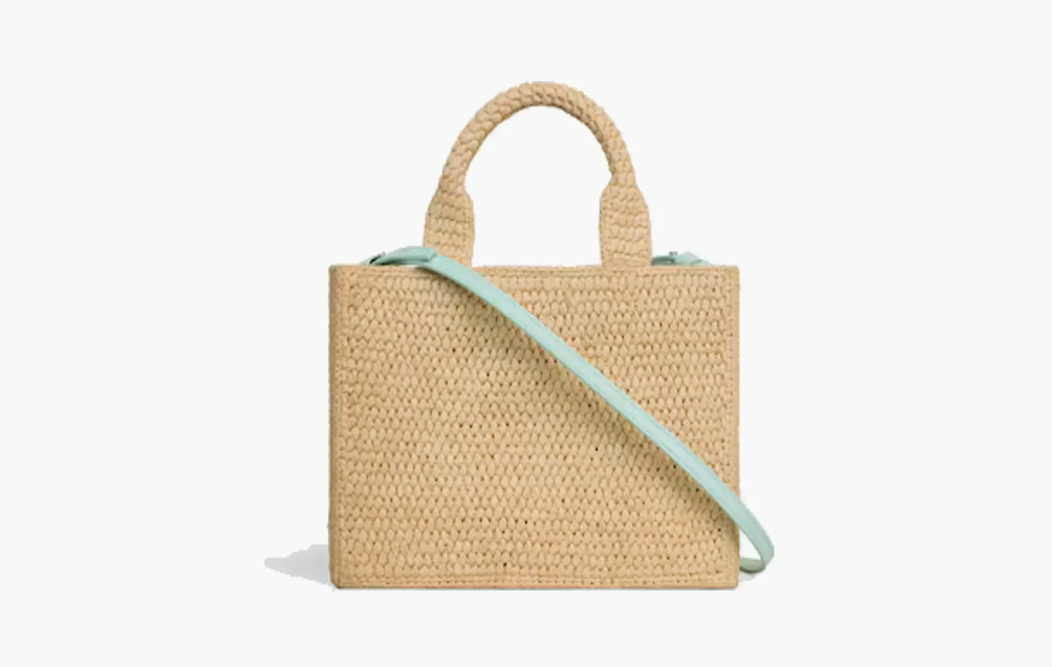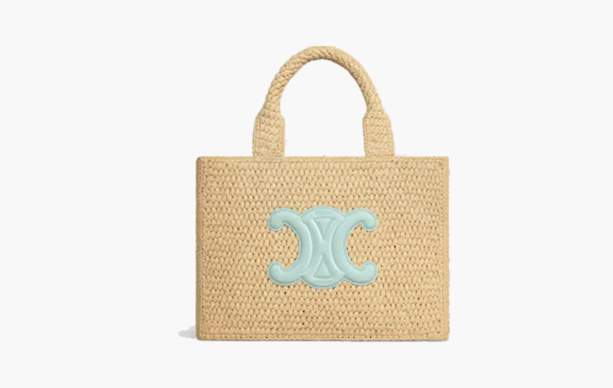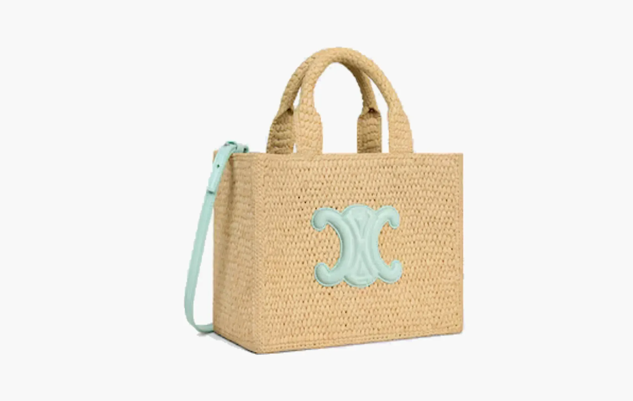 Small Cabas Thais In Raffia and Calfskin "Light Acqua"
