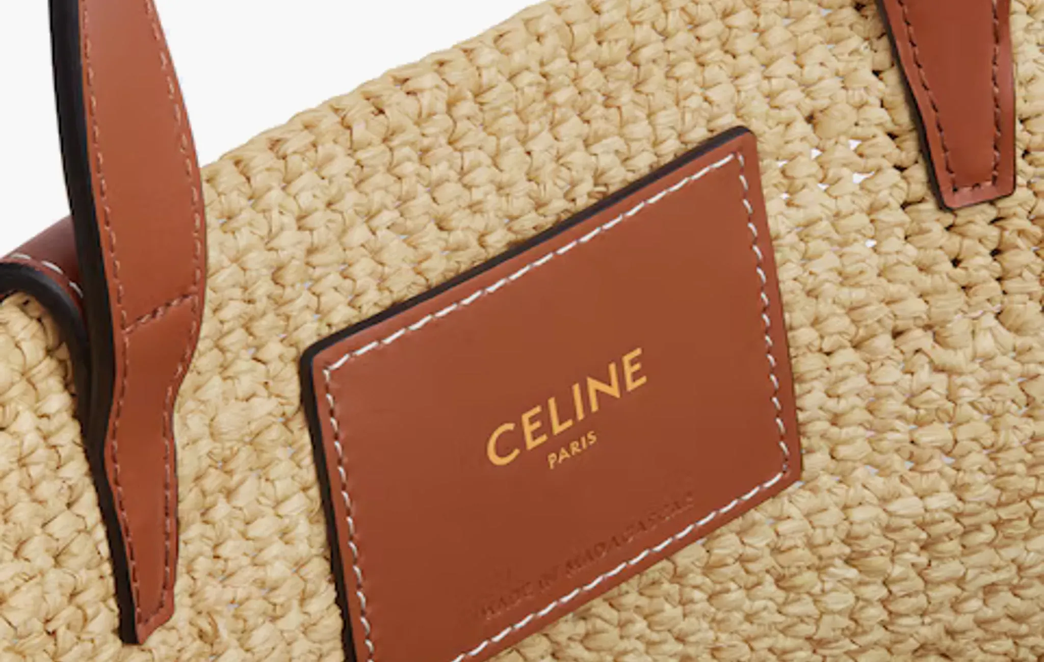 Teen Supple Celine Classic Panier In Raffia and Calfskin "Tan"