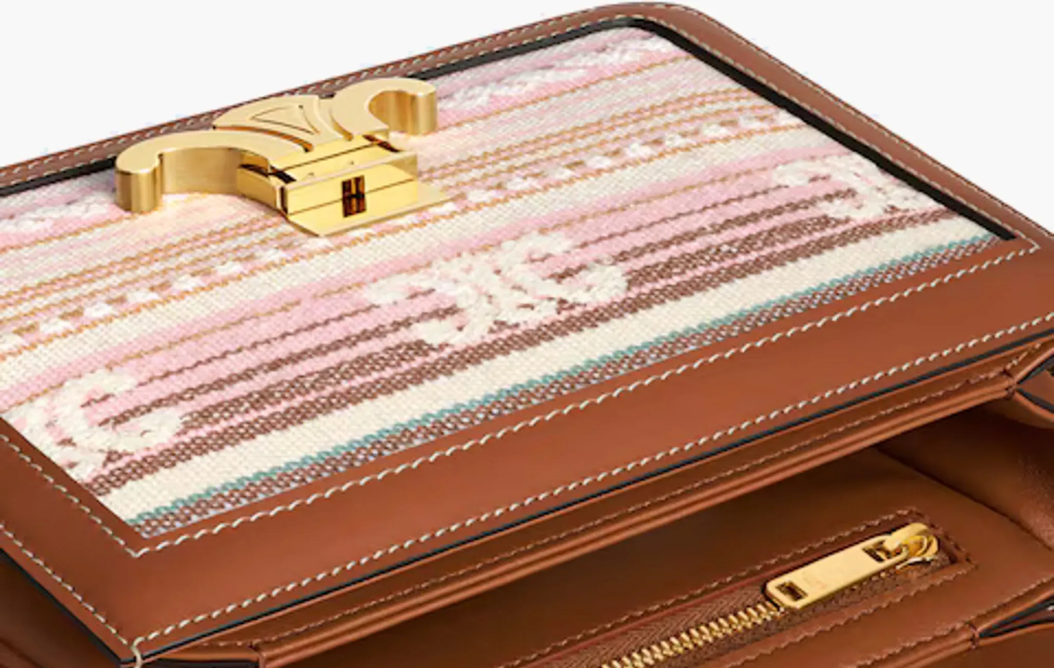 Teen Triomphe Bag In Striped Textile and Calfskin "Multicolor"