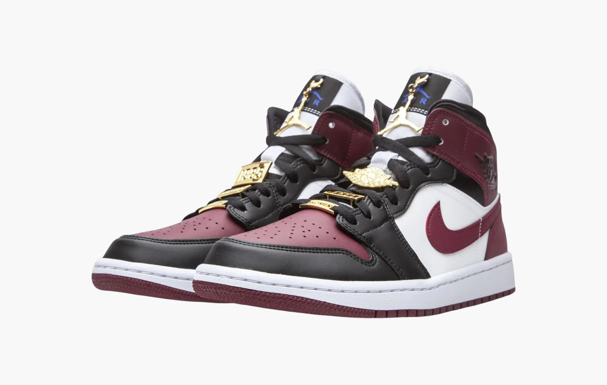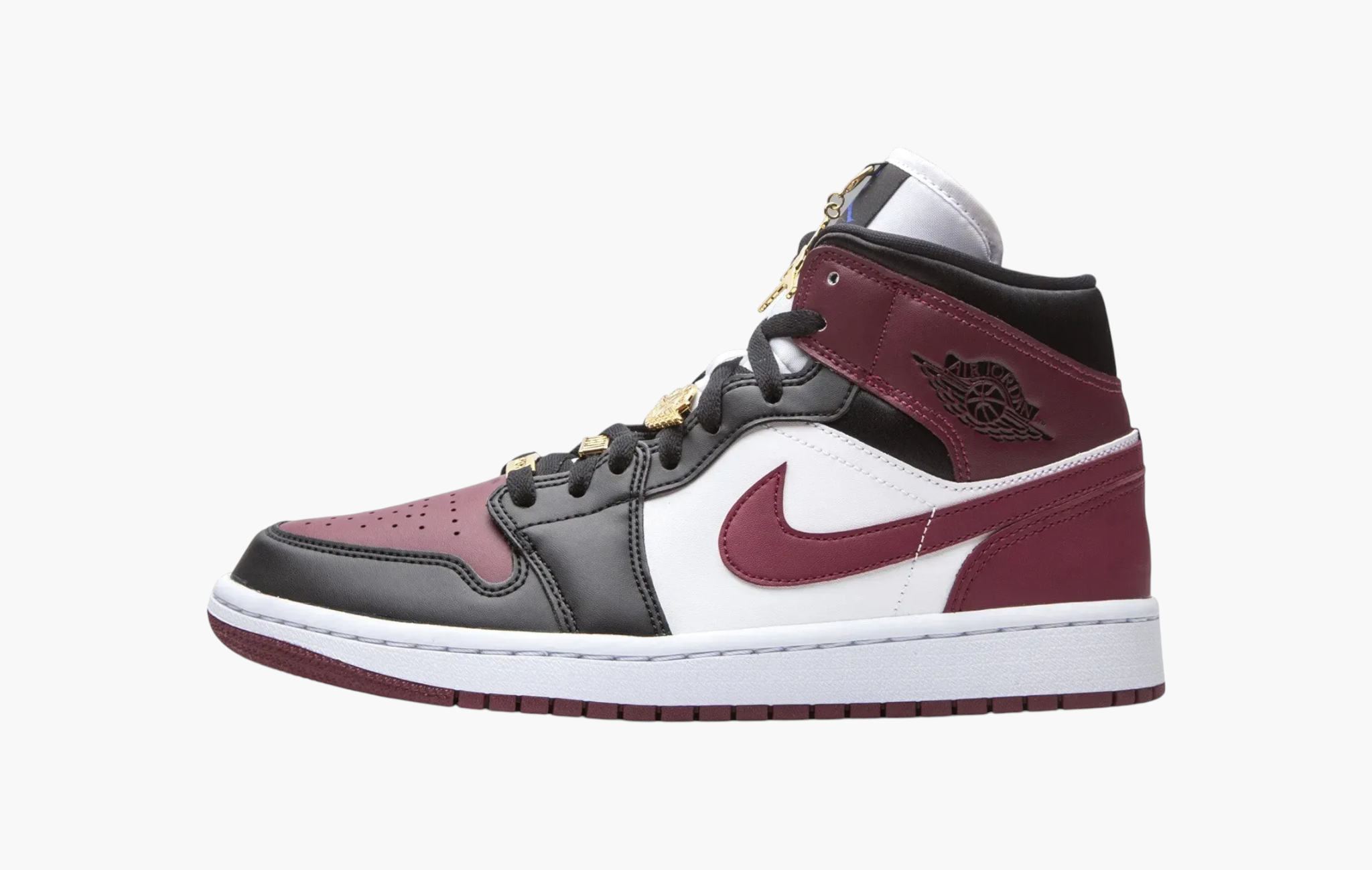 Air Jordan 1 WMNS Mid SE "Dark Beetroot", выпущенные в женской размерной сетке, — это настоящий шик, воплощенный в форме кроссовок. Белоснежная кожа, ставшая основой данной пары, была равномерно дополнена угольно-черными деталями. В оттенок бургунди окрашены свуши, а также массивные вставки на передней и задней частях обуви. Многочисленные золотистые подвески на шнурках и язычках можно назвать наиболее броской и отличительной особенностью модели. Подошва, изготовленная из износостойкой резины двух цветов, является не только гармоничным завершением дизайна этих кроссовок, но и гарантом комфортной носки. Air Jordan 1 WMNS Mid SE "Dark Beetroot" от корпорации Nike поступили в продажу в 2020 году.