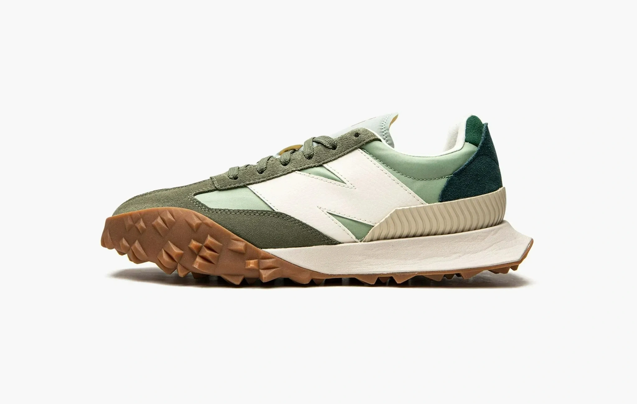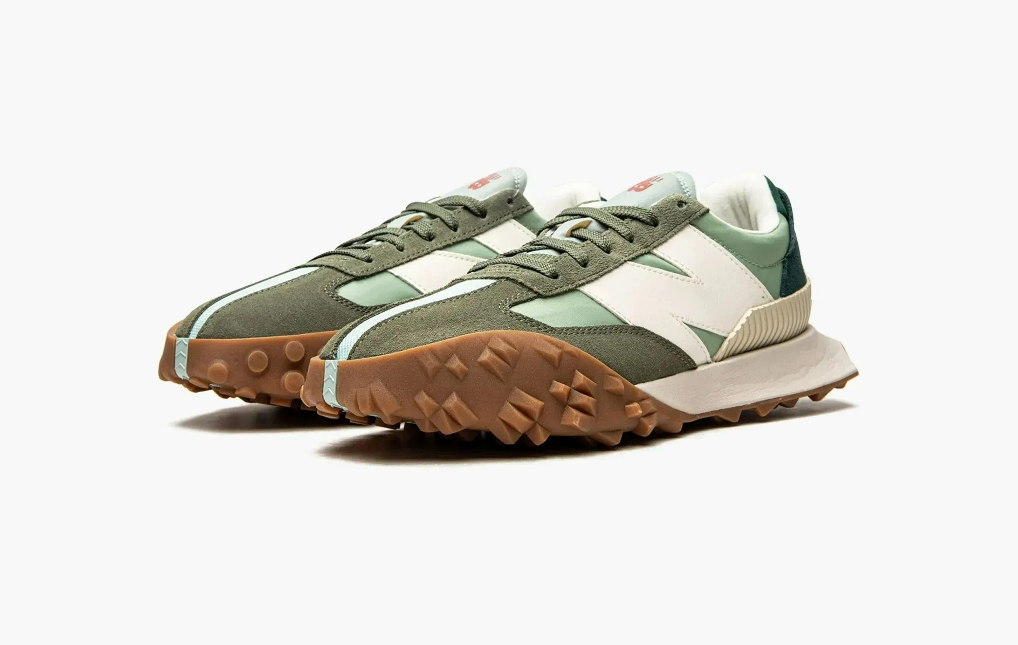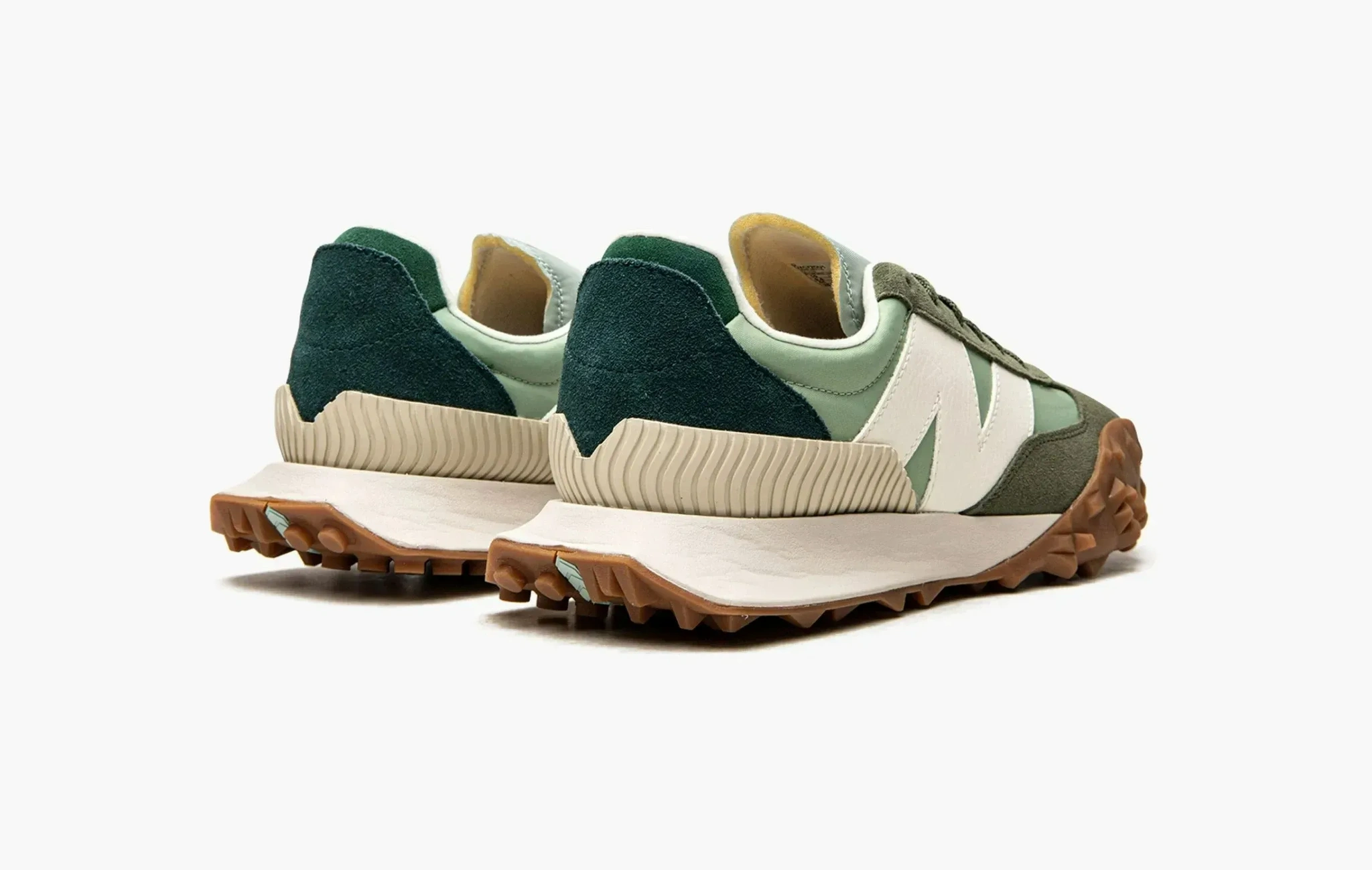 Вдохновленные экспериментальным дизайном автомобилей 70-х годов, кроссовки New Balance XC-72 сильно выделяются из классической линейки бренда. Сочетание оттенков зелёного разметили на замше и нейлоне, а подошва вертикально разделена на две разные части от других моделей — XC15 и 375. Массивный логотип бренда действительно напоминает винтажные кроссовки из прошлого века.