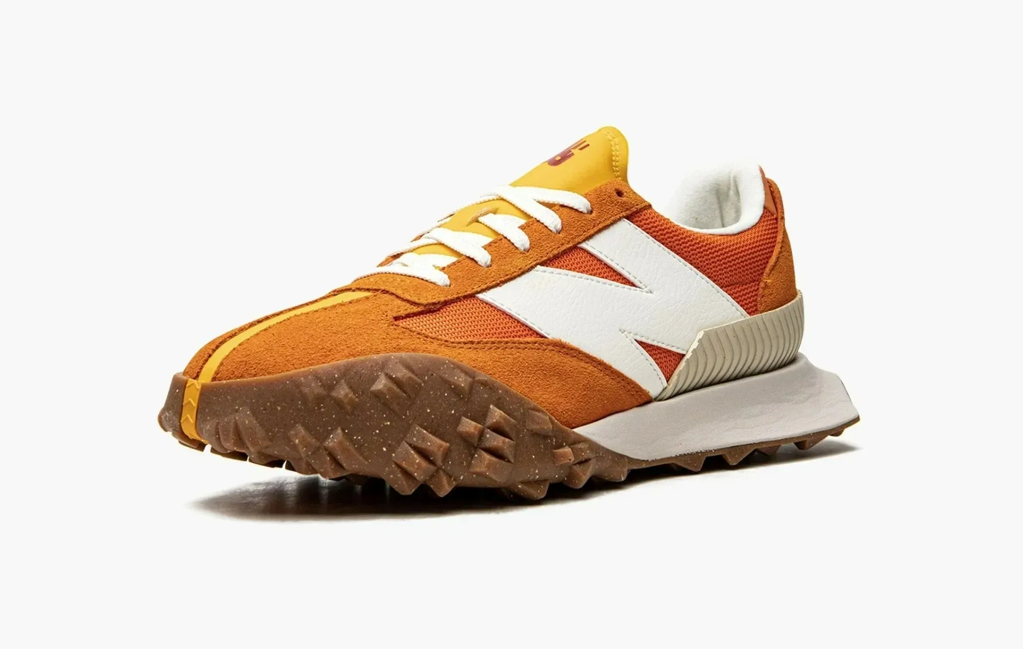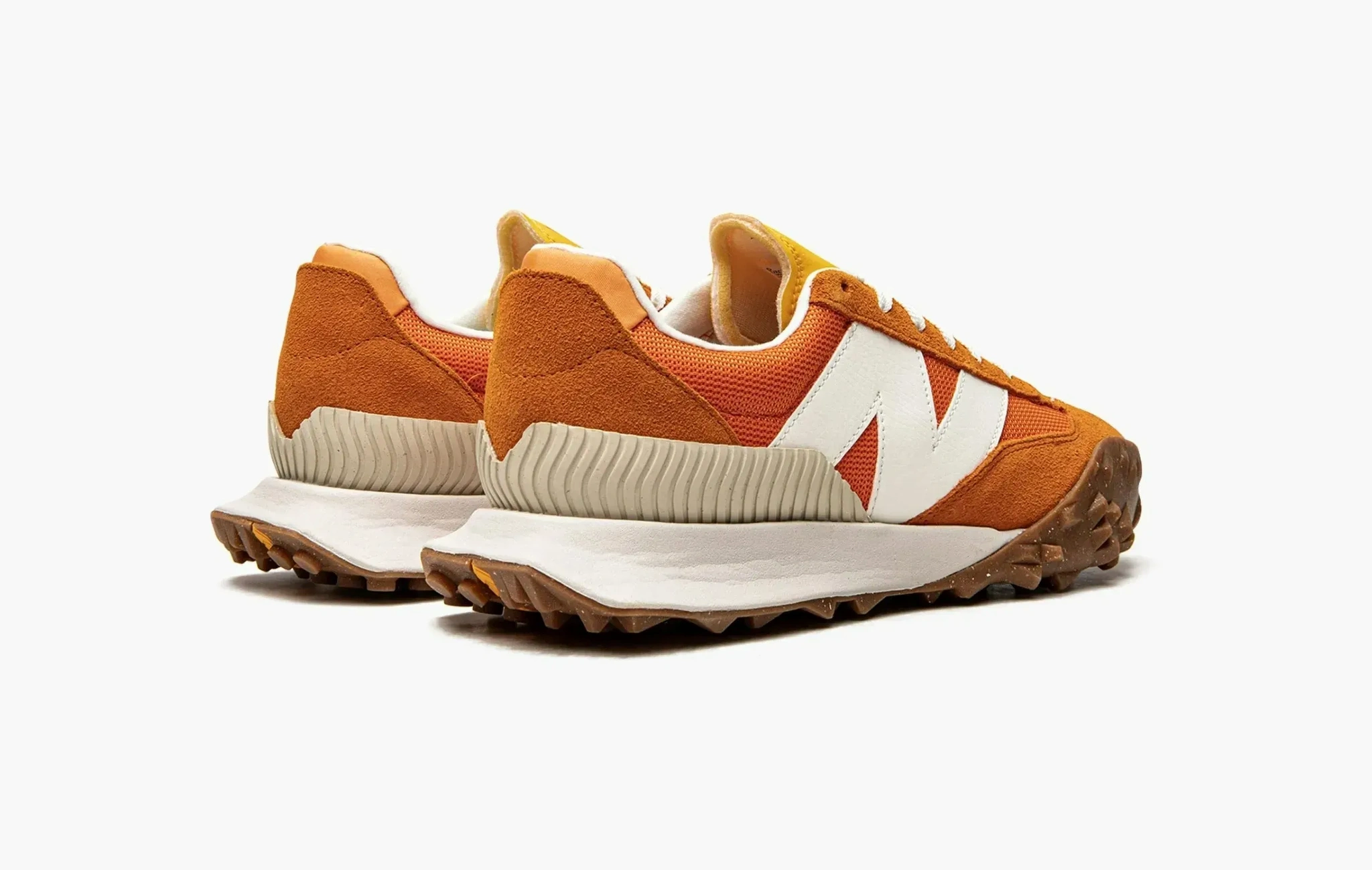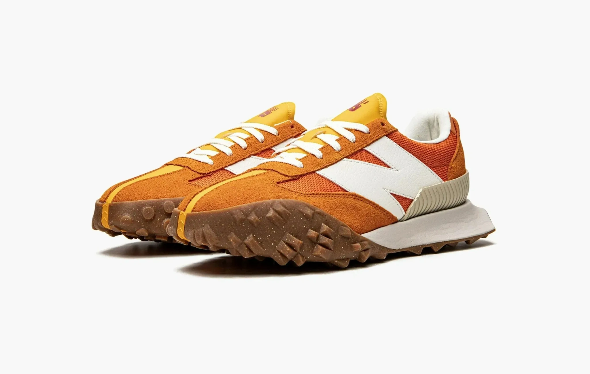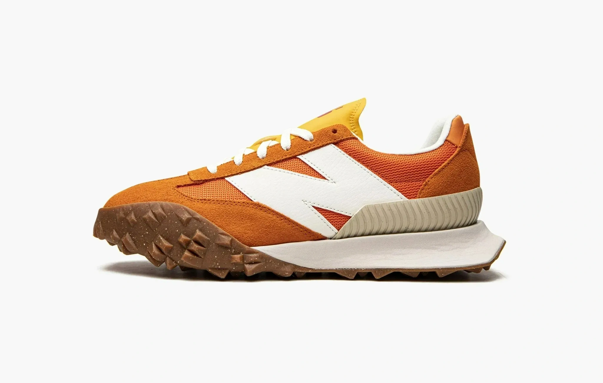 Вдохновленные экспериментальным дизайном автомобилей 70-х годов, кроссовки New Balance XC-72 сильно выделяются из классической линейки бренда. Яркая оранжевая верхняя часть выполнена из текстиля и замши, а подошва вертикально разделена на две разные части от других моделей — XC15 и 375. Массивный логотип бренда действительно напоминает винтажные кроссовки из прошлого века.