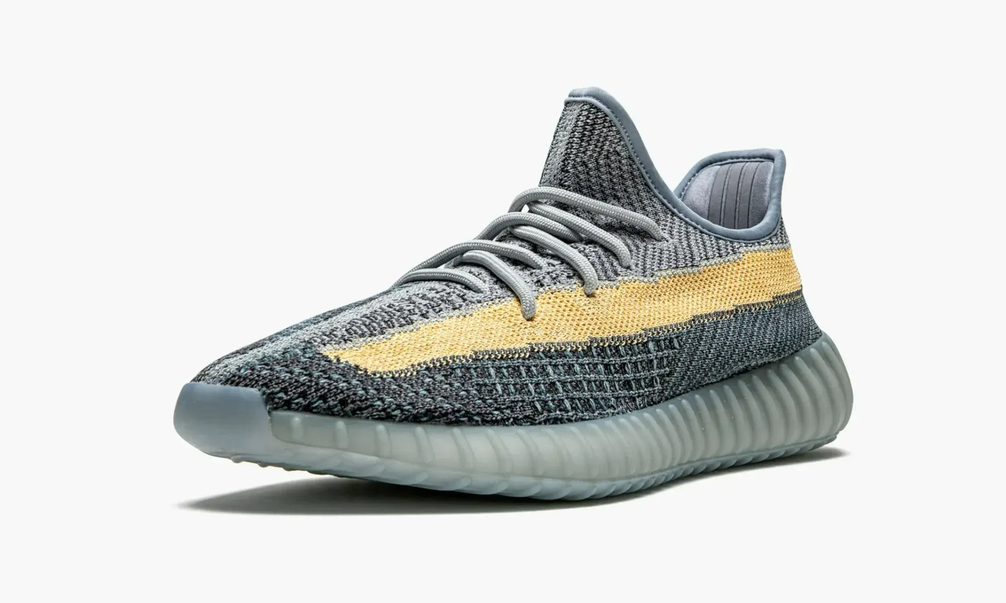 Кроссовки Yeezy Boost 350 V2 "Ash Blue" от Kanye West и крупнейшей компании Adidas непременно привлекут к вам внимание прохожих! Доминирующим цветом для данной модели был выбран серо-синий оттенок или цвет морской волны, в который окрашена основа обуви из инновационного дышащего материала Primeknit. Акцентной деталью стала ярко-желтая массивная полоса, протянувшаяся от носка к пятке. Полупрозрачная голубая подошва позволит ощущать непревзойденный комфорт в процессе носки кроссовок благодаря непревзойденной технологии, получившей название Boost. Всемирно известный рэпер Канье Уэст презентовал восхитительные Adidas Yeezy Boost 350 V2 "Ash Blue" в первых месяцах 2021 года.