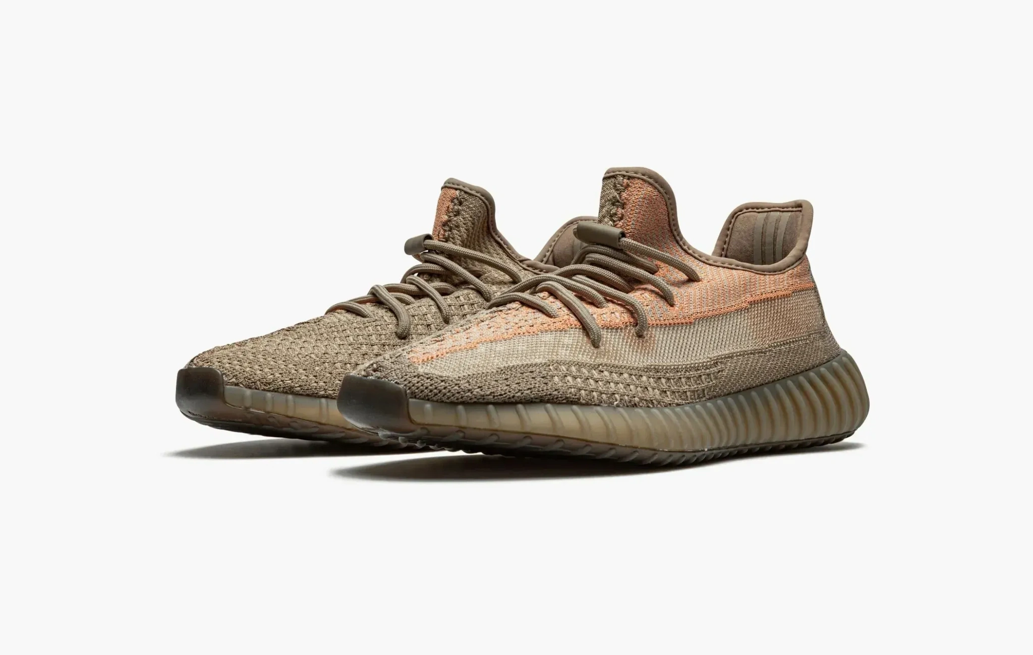 Кроссовки Adidas Yeezy Boost 350 V2 "Sand Taupe" от Канье Уэста обладают беспроигрышной цветовой гаммой, которая подойдет практически под каждый ваш образ. Основная часть данной модели произведена из бесшовного материала Primeknit, окрашенного в универсальные серо-коричневые и персиковые тона. Массивная полупрозрачная полоса, проходящая по всей поверхности обуви, также исполнена в нескольких цветах. Завершает дизайн кроссовок фирменная двухцветная ребристая подошва и самозатягивающиеся шнурки. Yeezy Boost 350 V2 "Sand Taupe", анонсированные Adidas и Kanye West в декабре 2020 года, сразу же полюбились поклонникам Yeezy Boost.