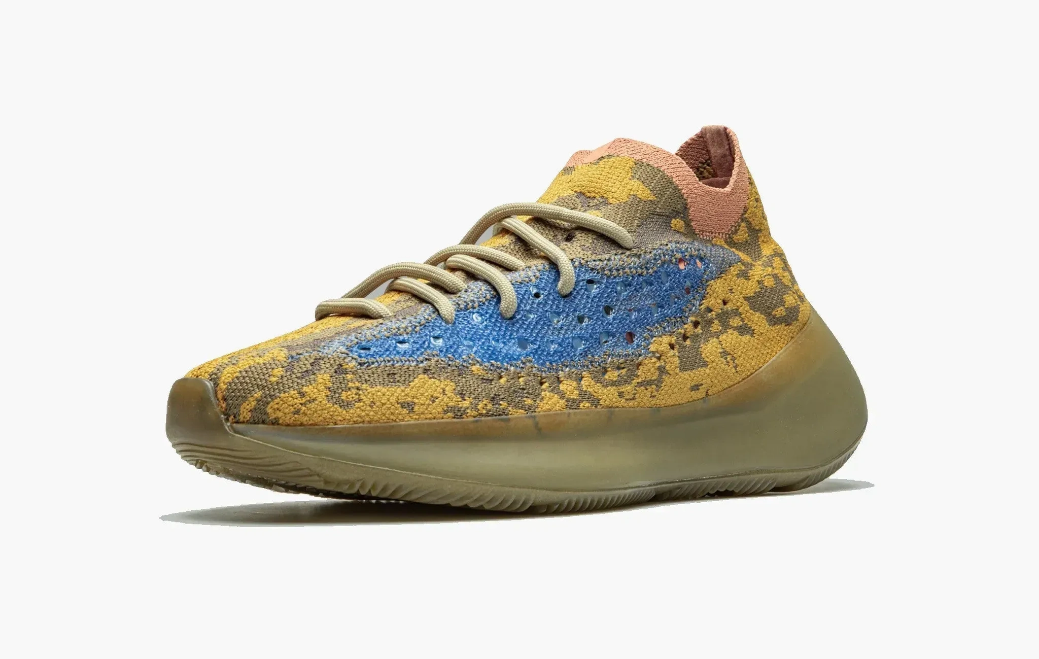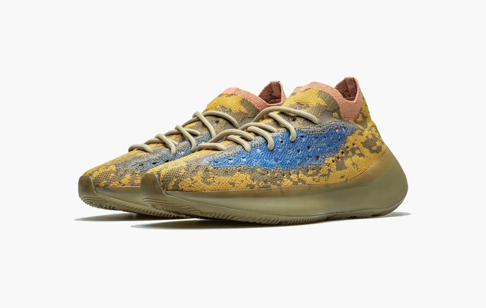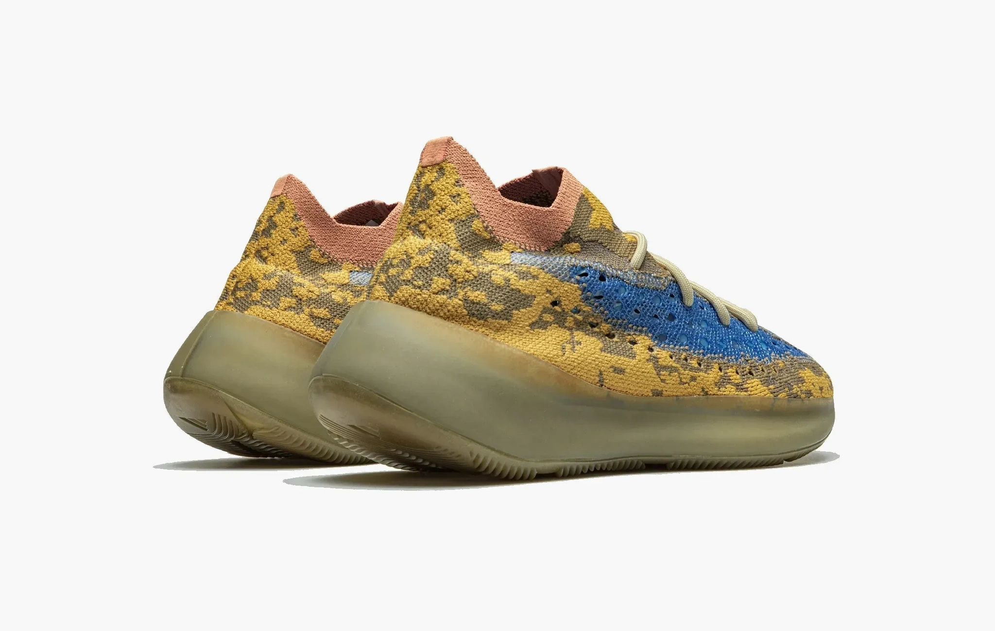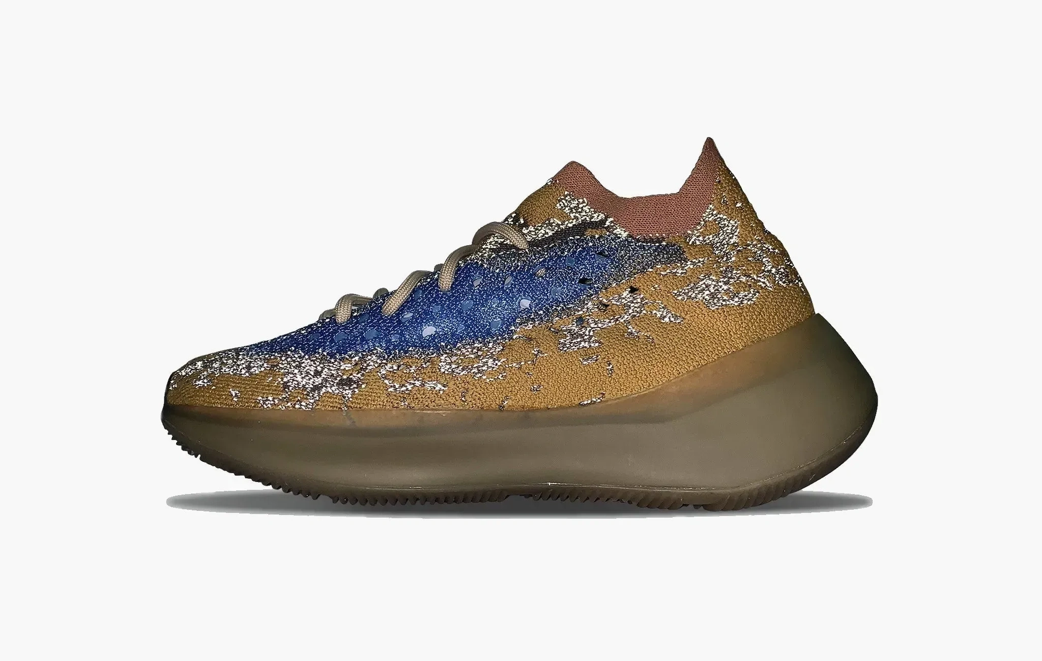 Одна из необычных расцветок adidas Yeezy Boost 380, которая с трудном вписывается во всё подразделение Yeezy от Канье Уэста. Верх сочетает в себе оттенки оранжевого и синего. Удивляет то, как такие контрастные цвета смогли вписаться в столь харизматичный силуэт. В плетение верхней части кроссовок интегрированы светоотражающие нити, которые делают такой экземпляр ещё ярче.