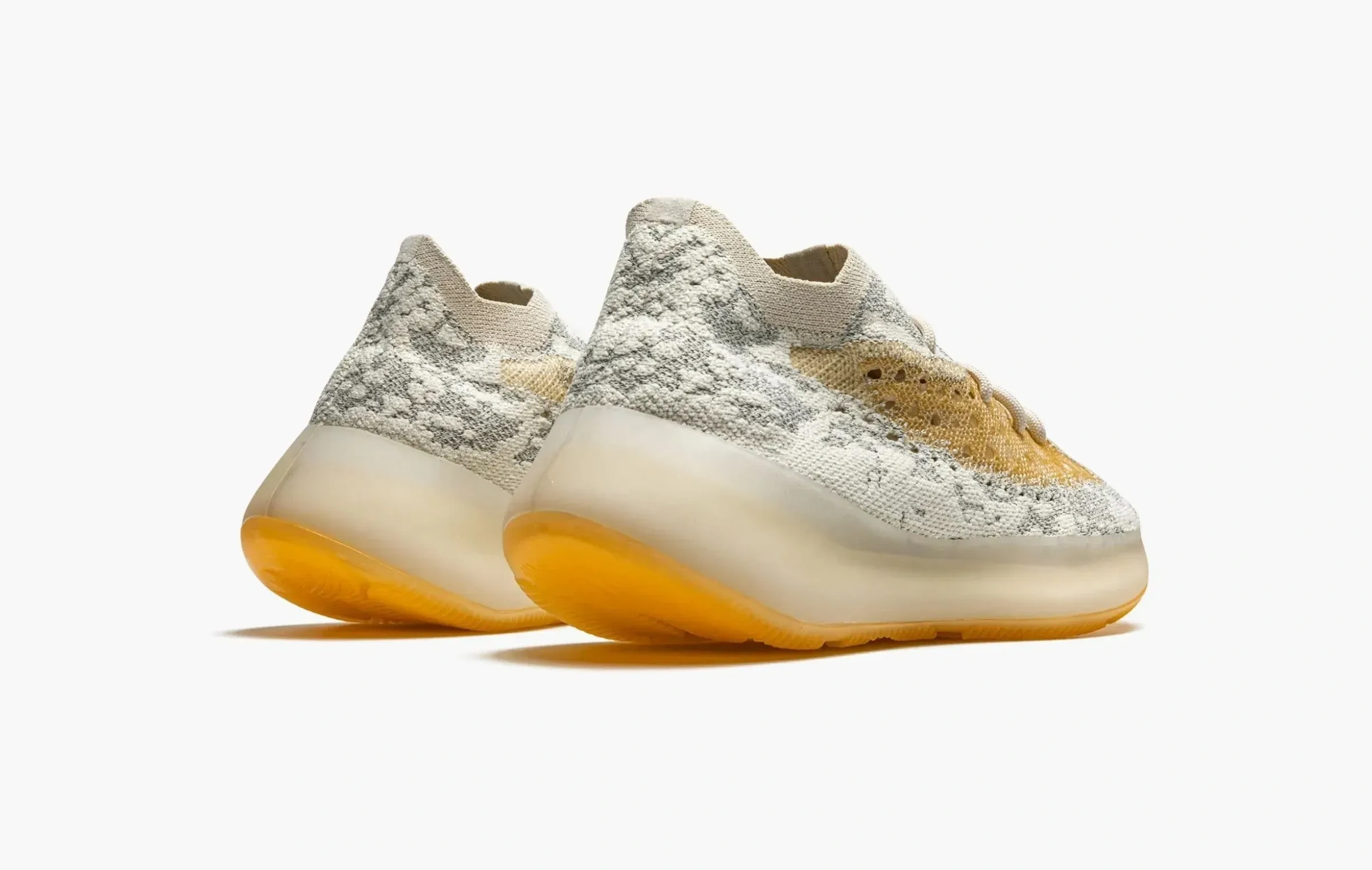 Ультра-мягкие кроссовки adidas Yeezy Boost 380 - элемент линейки обуви Канье Уэста. Верх пары состоит из материала Primeknit, который украшен камуфляжным узором из нейтральных серых и кремовых оттенков. Минималистичная расцветка имеет в себе акценты в виде рефлективных вставок. Сочетание спокойных оттенков подчеркивается яркой оранжевой поверхностью подошвы.